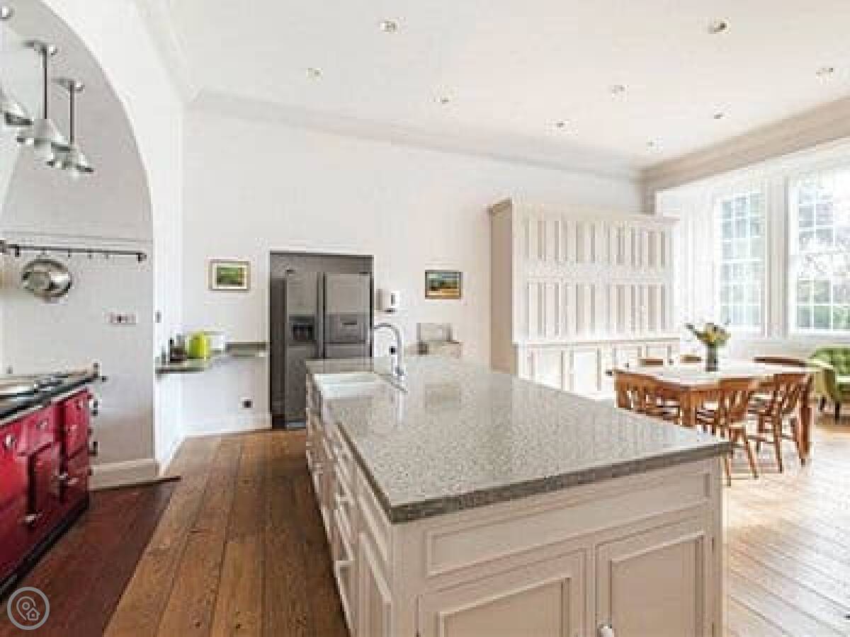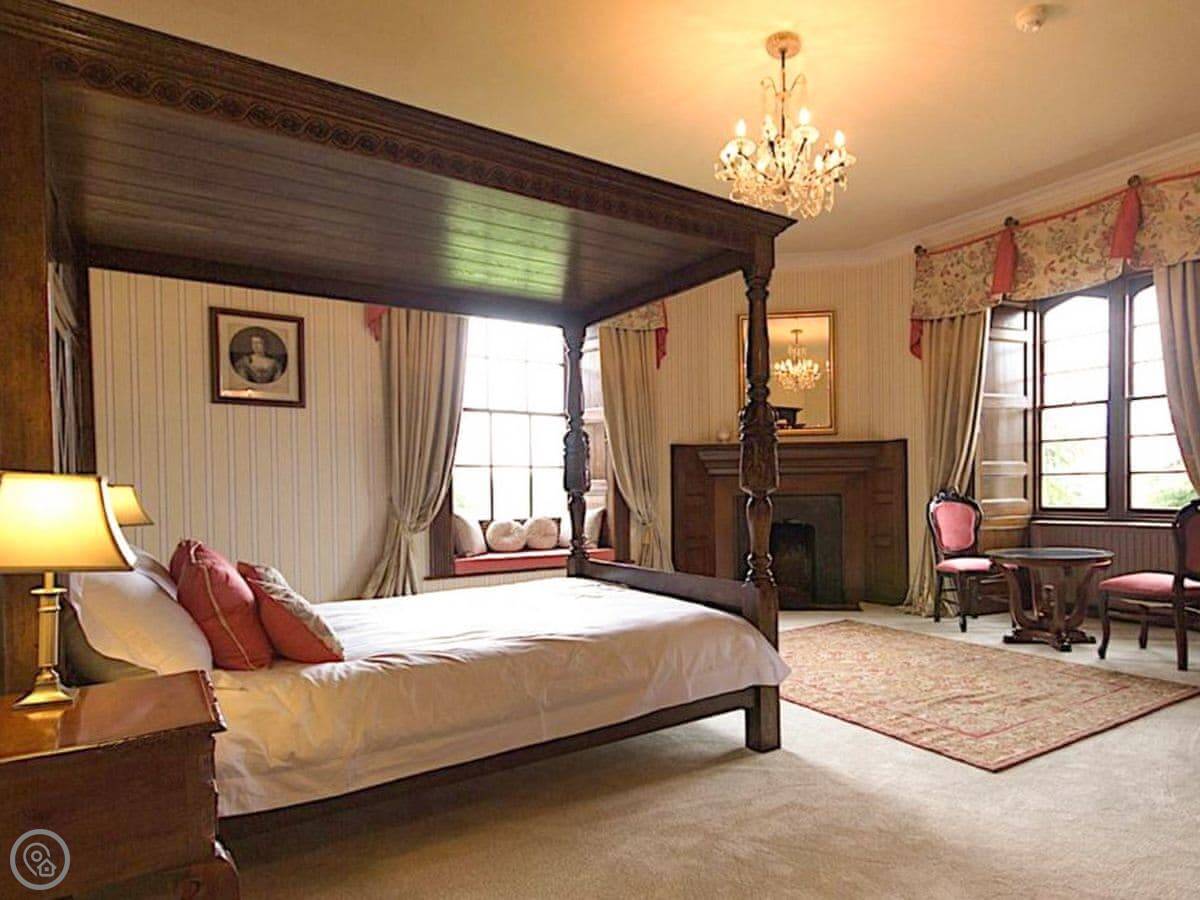 It's set in 50 acres of its own land. You'll see it from the driveway. Outside, there's a hot tub, a sauna, a flood-lit tennis court, a croquet lawn, and a summer house. There's a big BBQ and a fire pit.