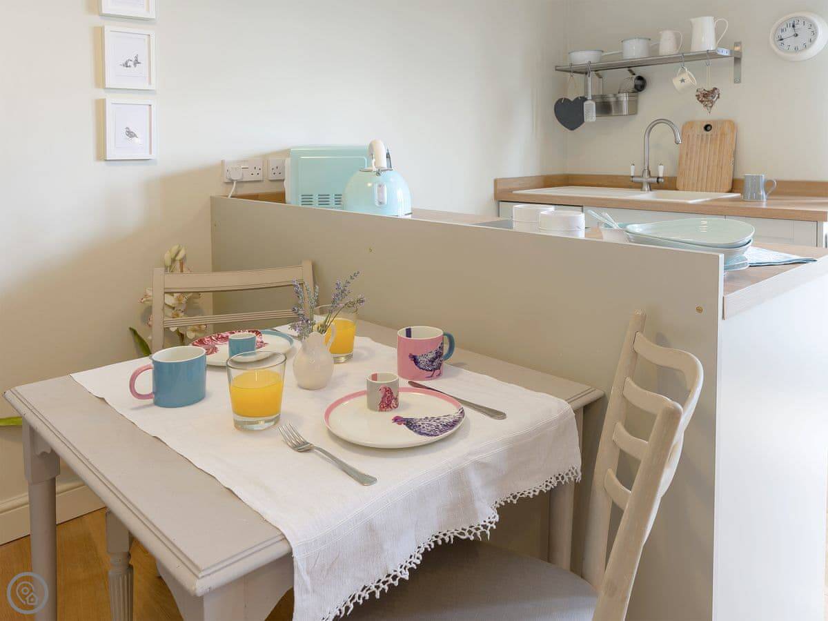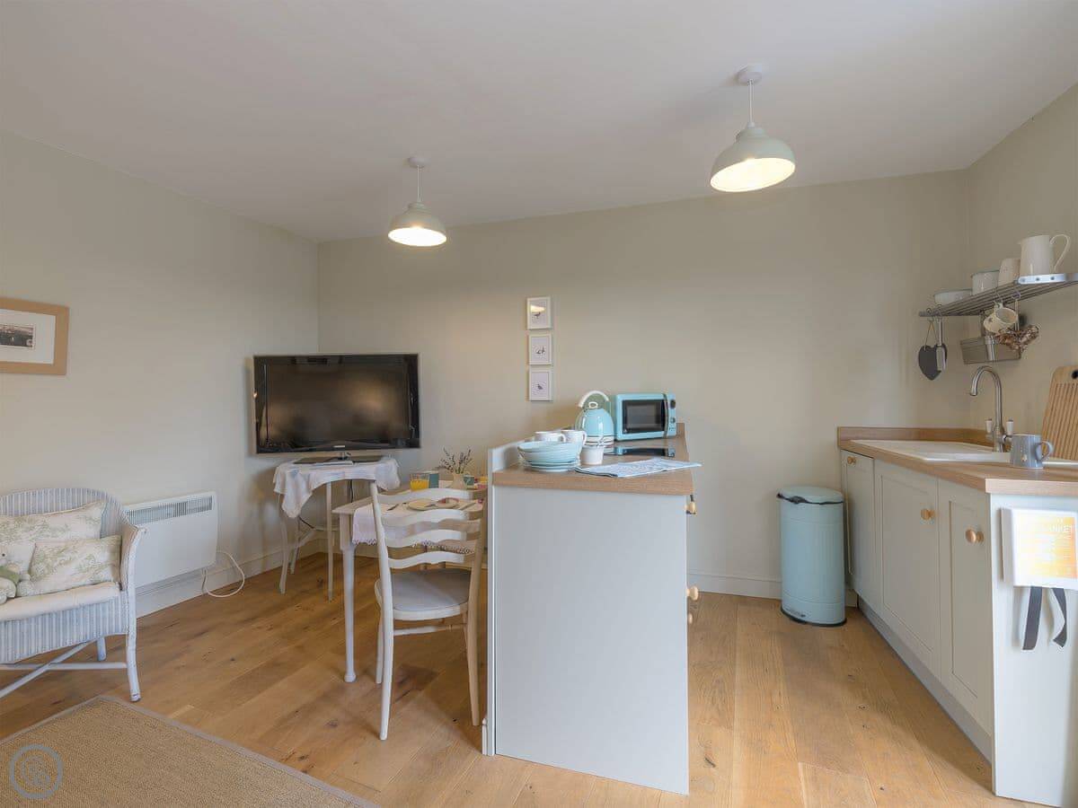 Mortimer Trail Mews is in Mortimer's Cross. It's a single storey cottage, sleeps two. It's attached to our house but you have your own front door. The rating is 4 Star, which basically means it's a comfortable place that's been recently done up.