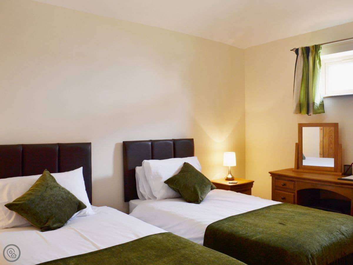 It sleeps four in two bedrooms. Both bedrooms have their own shower room, which is handy. It's got a 4 Star rating. It's recently done up, so everything works and it's well insulated. The floors are tile and wood, so it's practical.