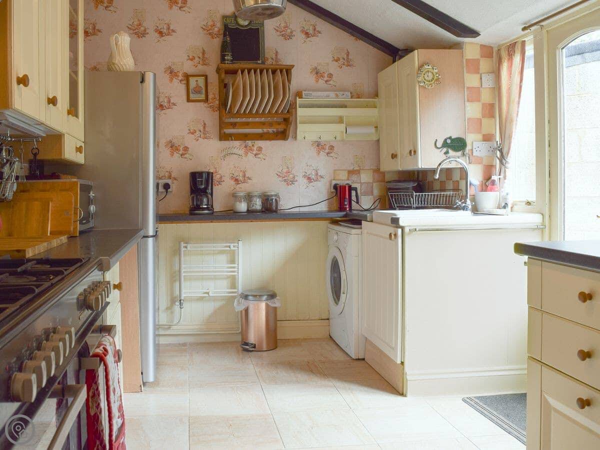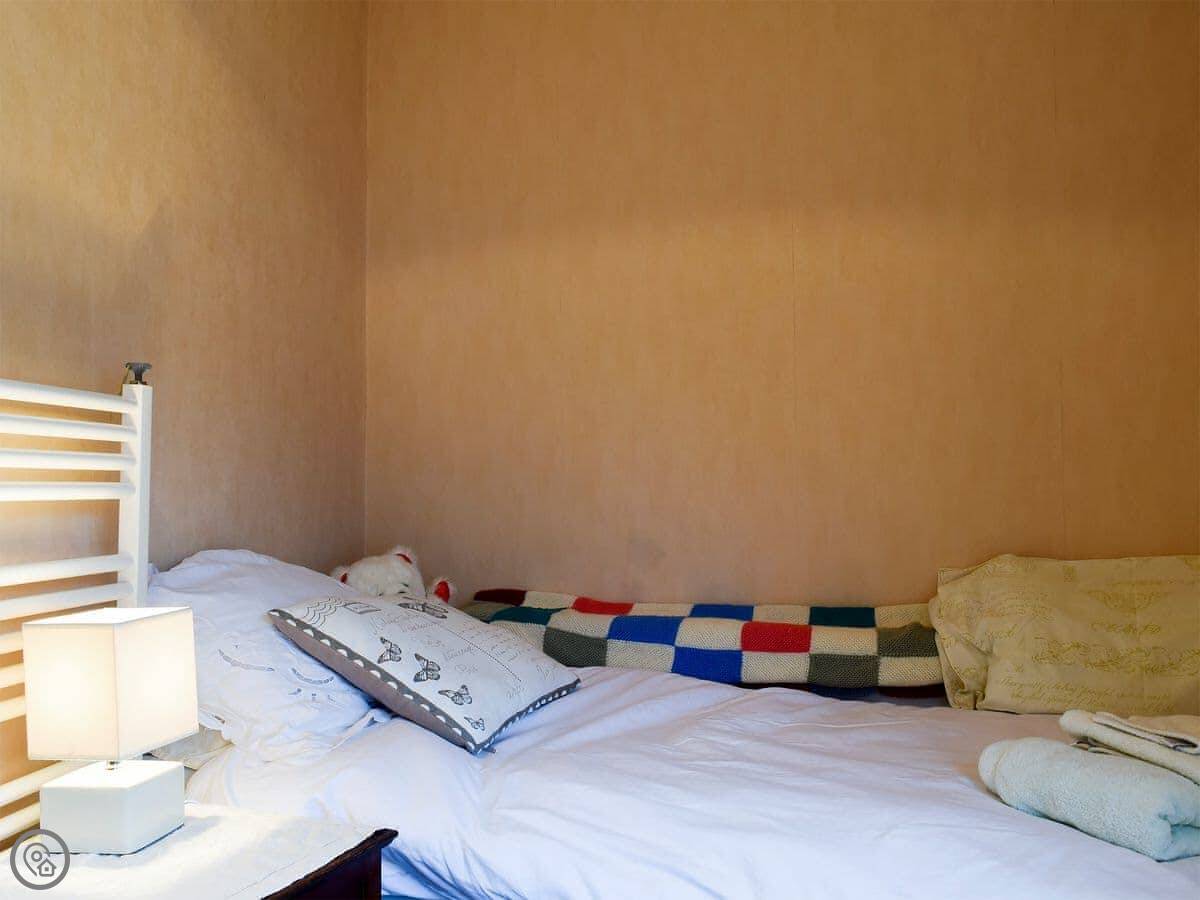 It sleeps three. Two bedrooms, two bathrooms. One of the bathrooms is ensuite to the main bedroom. It's a 4 Star property, so it's comfortable and well looked after. The kitchen has a dishwasher. There's a wood burner in the living room.