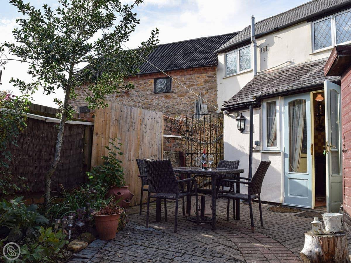 The garden is fully enclosed, which is good if you're bringing dogs. We allow up to two. There's a dog bed, bowls, and towels here for them. The garden gets the evening sun.