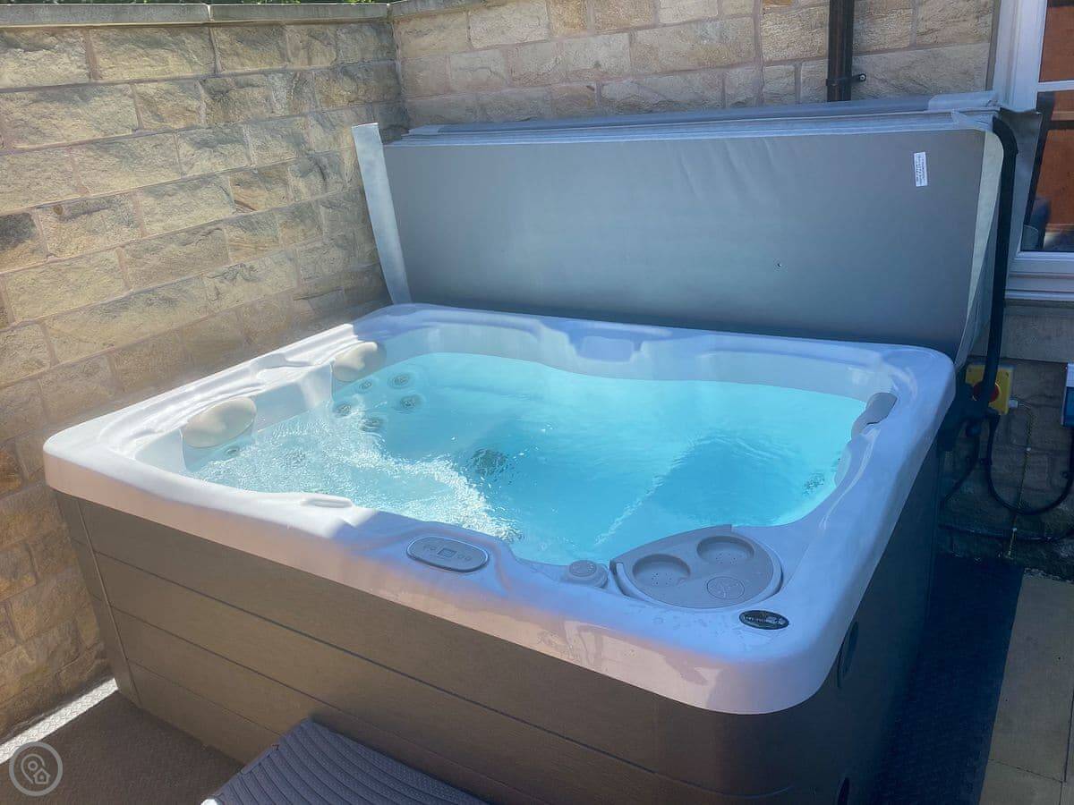 The back garden is enclosed. There's a hot tub out there. It's a proper four-person one.