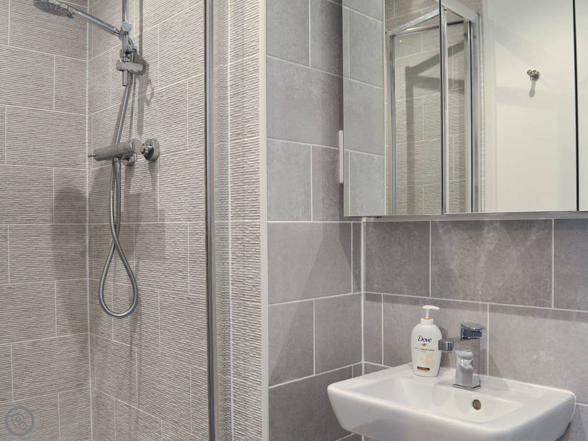 Shepley Mews is a terraced cottage in Old Glossop. It's new, built in 2018, so everything works as it should. Sleeps four, in two bedrooms. Both bedrooms have their own bathroom. It's got a 4 Star rating.