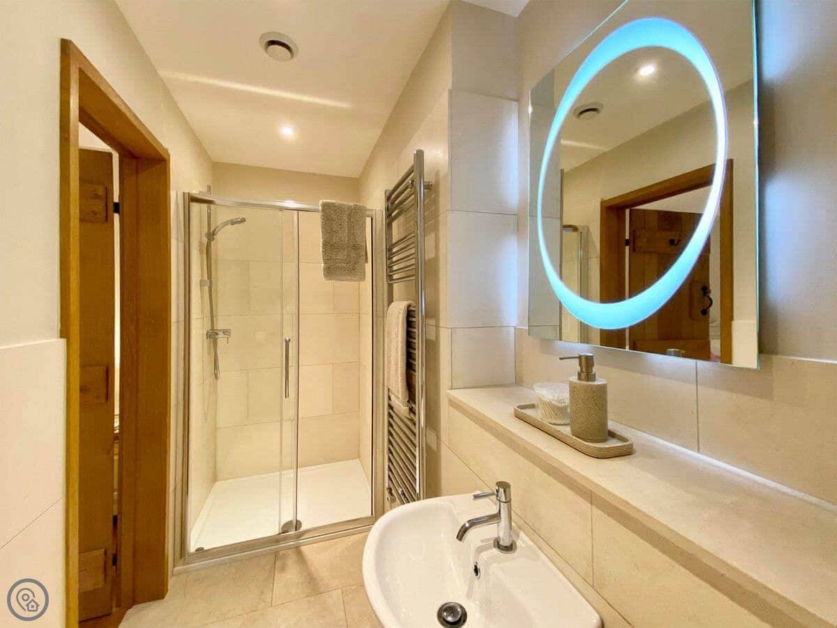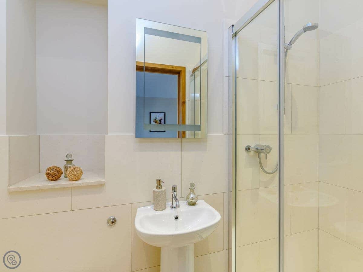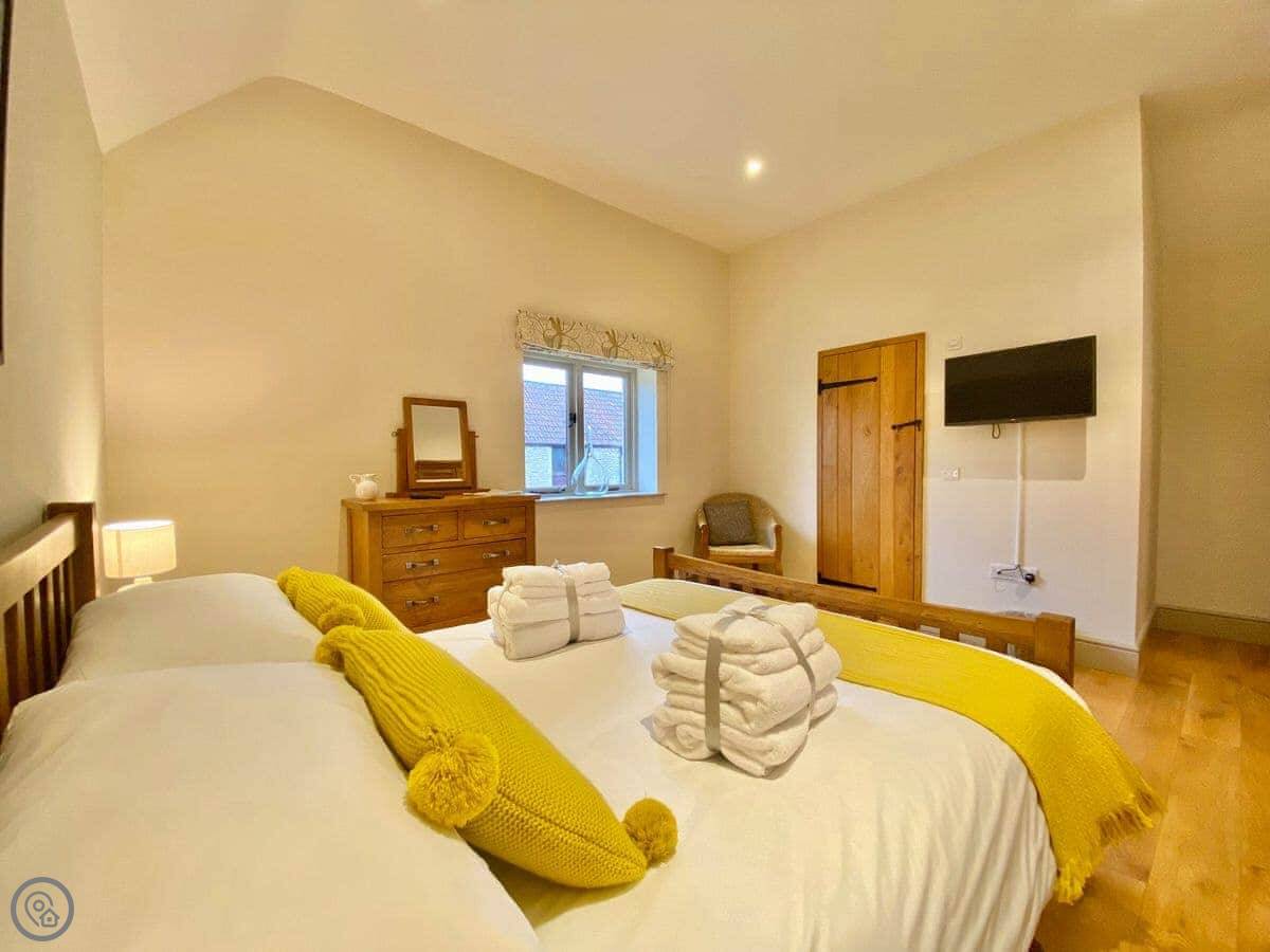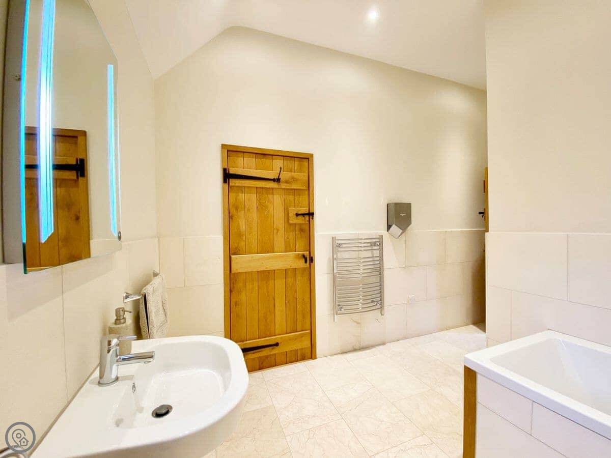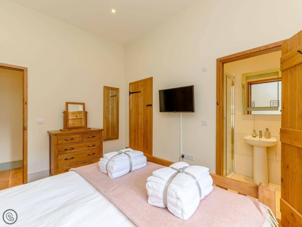 It sleeps eight, in four bedrooms. The main thing is that each bedroom has its own bathroom. Makes life easier if you're here with friends or a few families. It's all on the ground floor too, so if stairs are an issue for anyone, it's sorted. There's a step-free entrance.