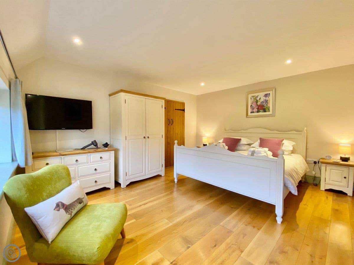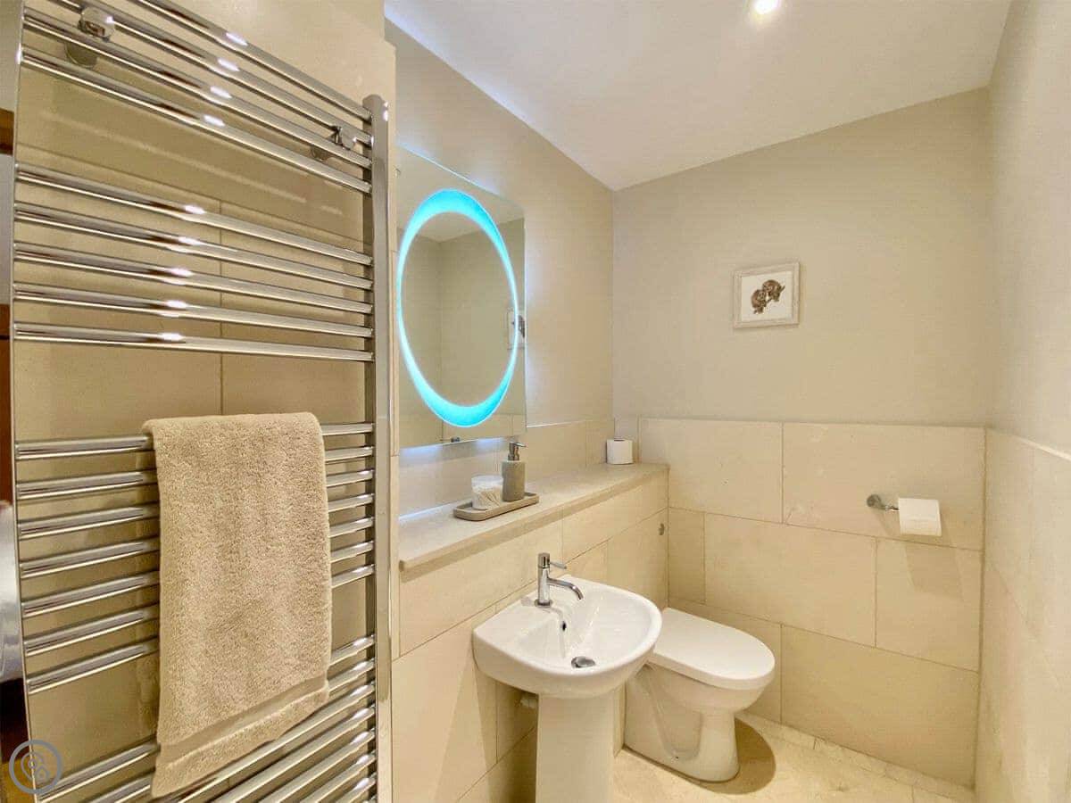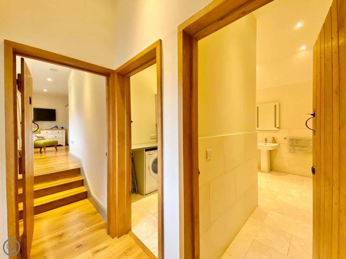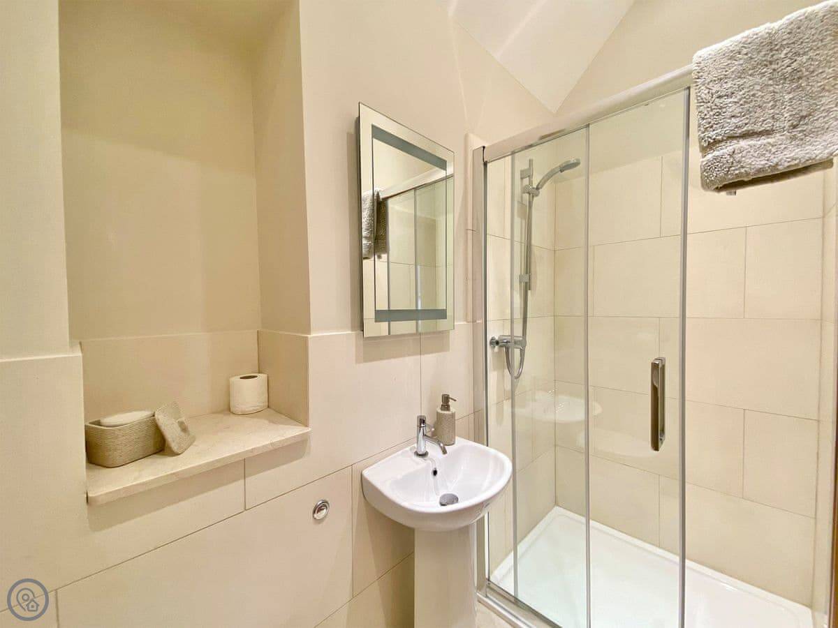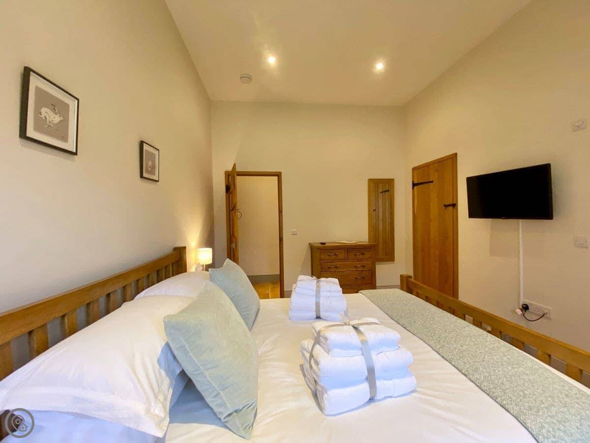 It sleeps eight, in four bedrooms. The main thing is that each bedroom has its own bathroom. Makes life easier if you're here with friends or a few families. It's all on the ground floor too, so if stairs are an issue for anyone, it's sorted. There's a step-free entrance.