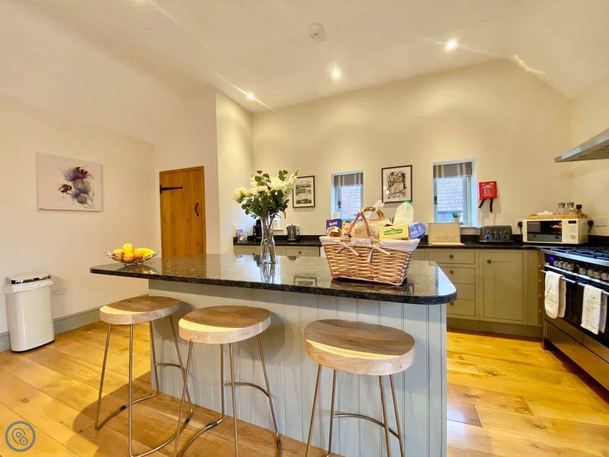 The kitchen is open plan with the living area. It's got a dishwasher and a washing machine. TV and WiFi are there. We include all the bedding and towels.