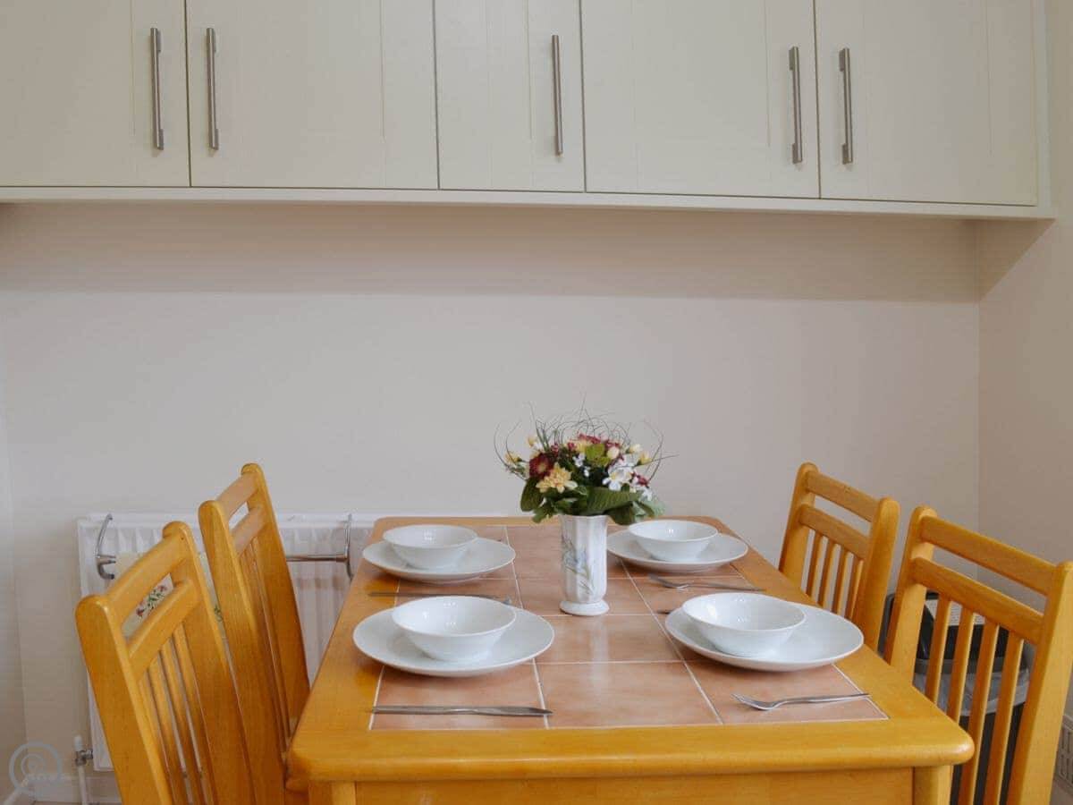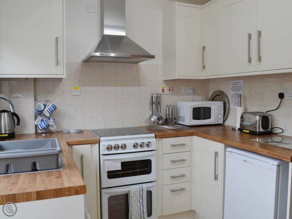 Inside, it's got what you'd expect: a washing machine, TV, parking for one car. We provide bedding and there's a cot and highchair if you need them. No pets, I'm afraid.