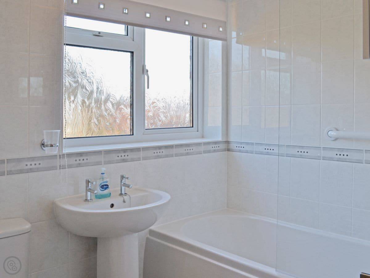 It sleeps five, in two bedrooms. There's one bathroom. It has a 3 Star rating, so it's comfortable and clean but not luxurious. The garden is enclosed, which is handy.