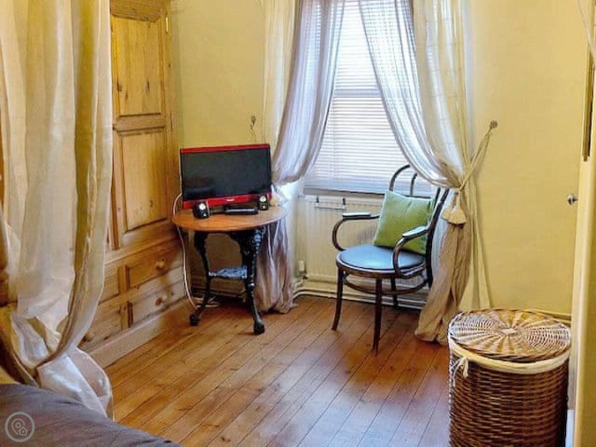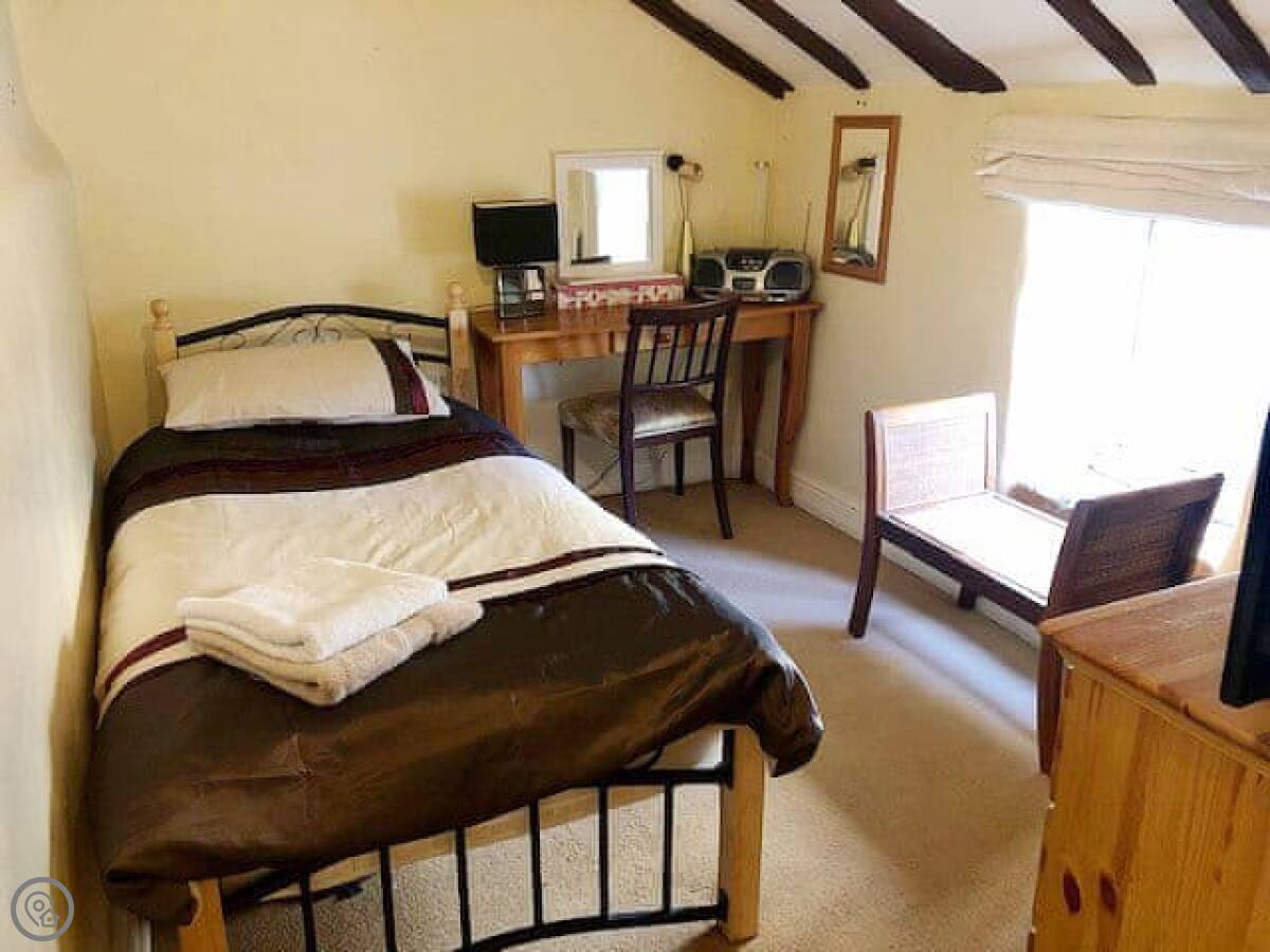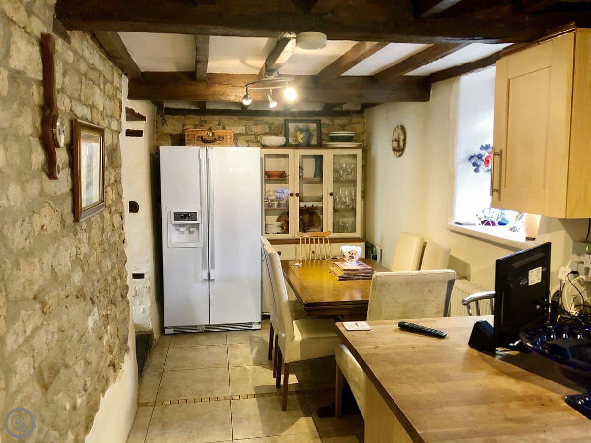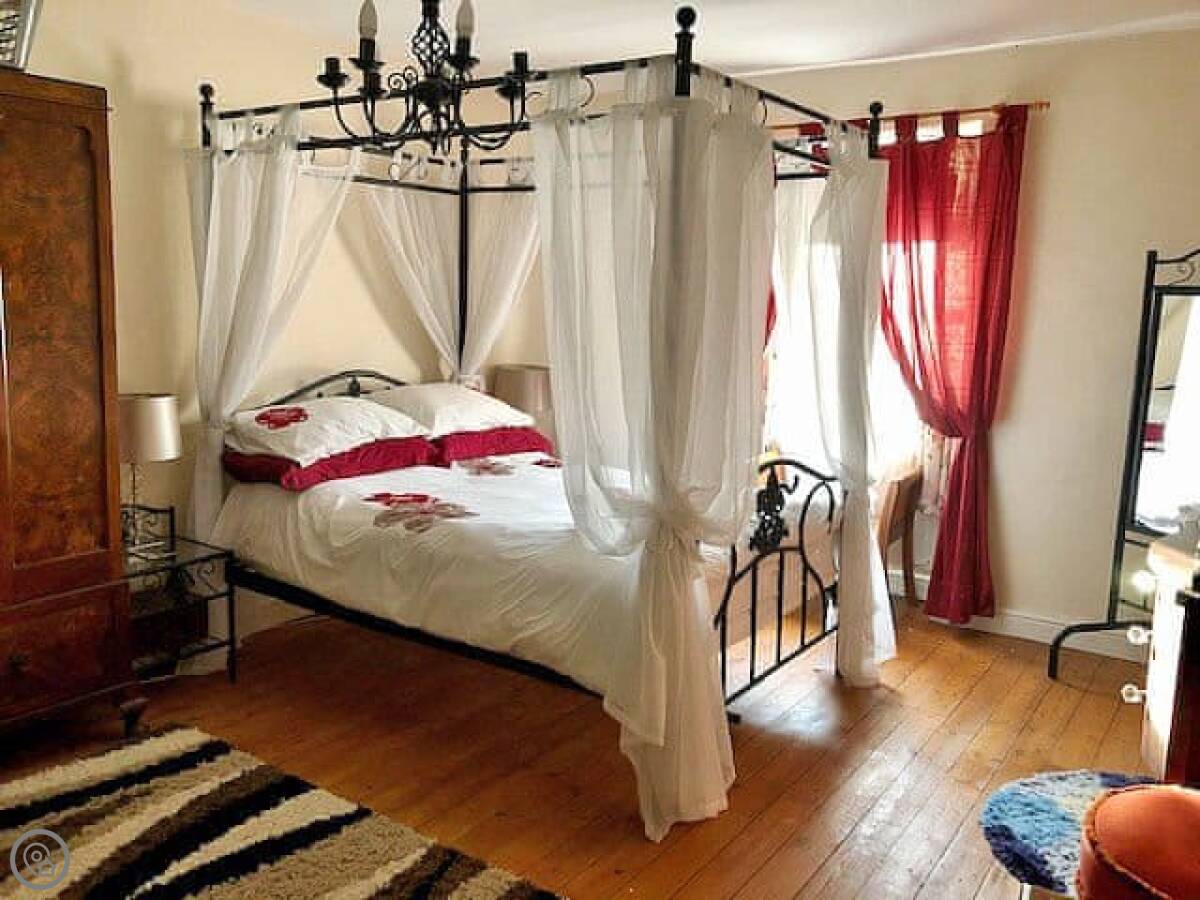It sleeps five, has three bedrooms and two bathrooms. It's a 4 Star rating. The place is old, built in 1705. It was a bakery, so on the ground floor the ceilings are a bit higher than you'd expect. The stairs are quite steep.