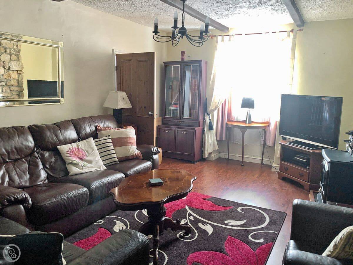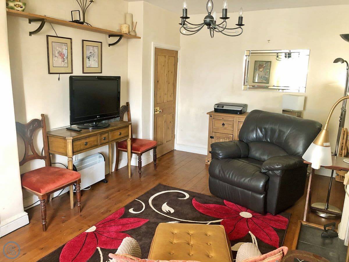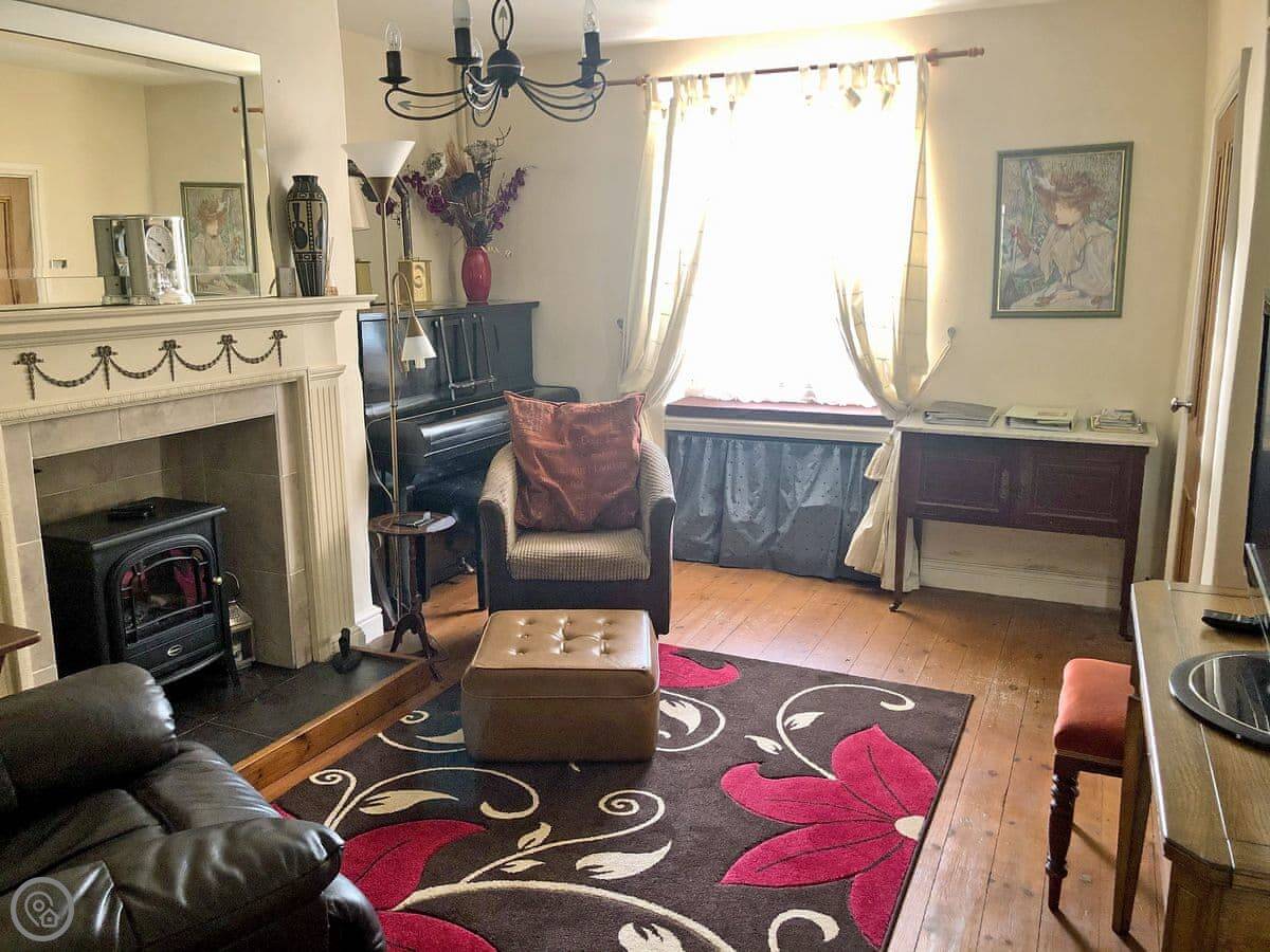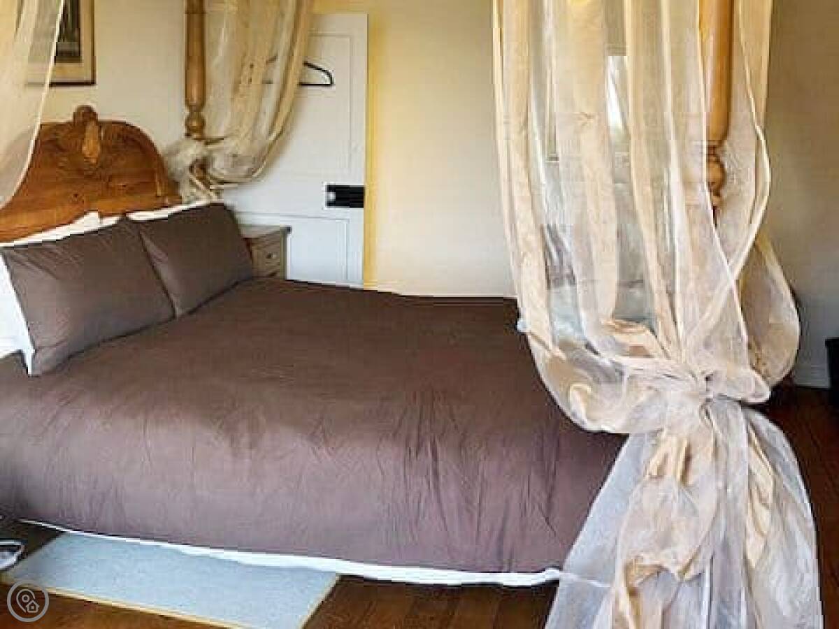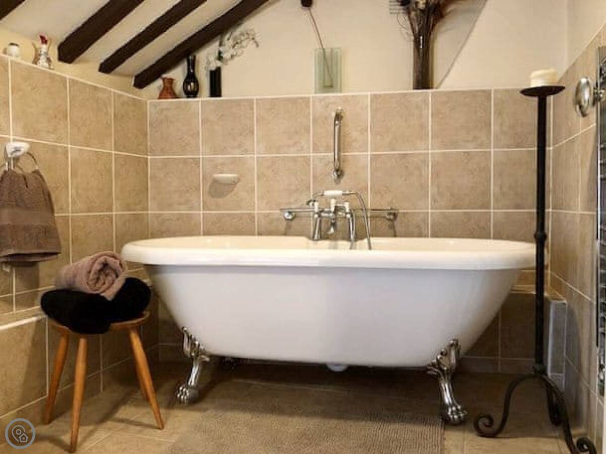 It sleeps five, has three bedrooms and two bathrooms. It's a 4 Star rating. The place is old, built in 1705. It was a bakery, so on the ground floor the ceilings are a bit higher than you'd expect. The stairs are quite steep.