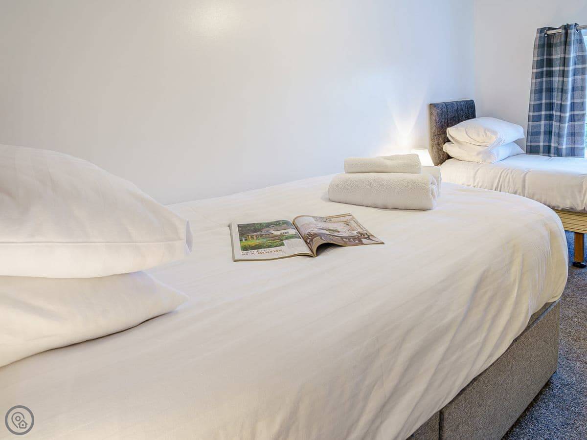 Inside, it's got everything you’d expect. Washing machine, dishwasher, WiFi. Bedding and towels are included. There's a cot and a highchair if you need them. Parking is on the drive.