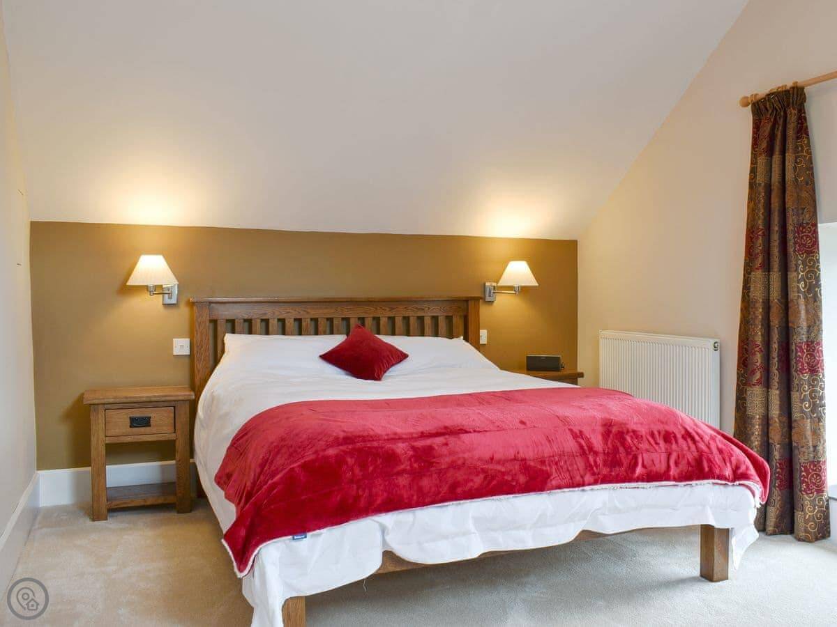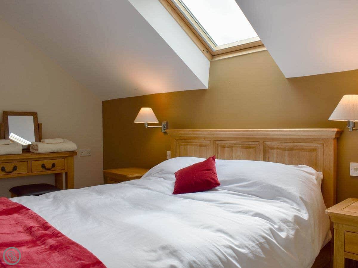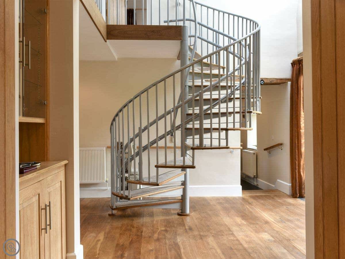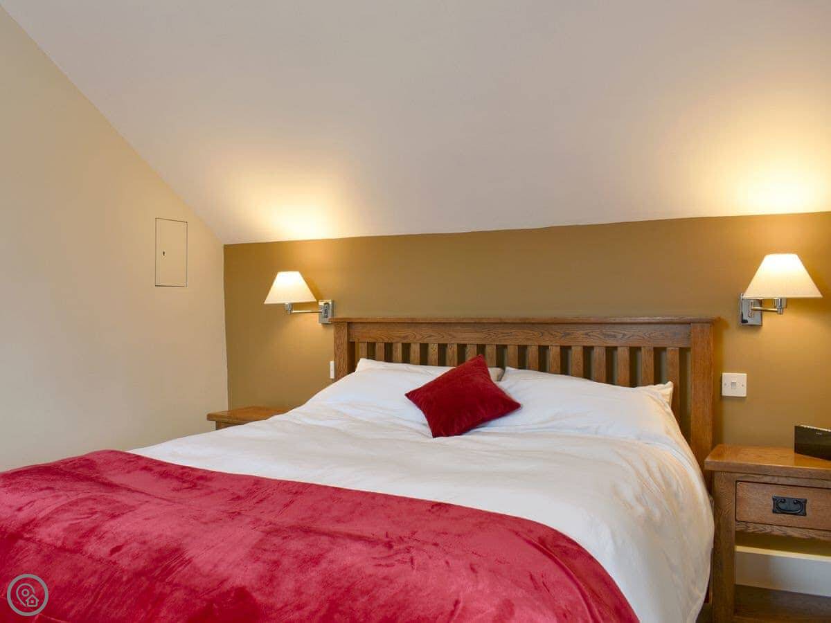 The living room is spacious with three two-seater sofas, a Smart TV, a wood burner to curl up beside on a chilly evening and a double set of patio doors leading out into the garden. The property has it’s own private garden with a charcoal barbecue, a patio area with seating and a lawn, perfect for enjoying a morning coffee whilst you plan your day. The open plan kitchen and dining area has two ovens, a dishwasher, fridge/freezer, microwave and slate flooring. In the centre of the property is a carpeted spiral staircase leading to the first floor which has landing area with a couple of comfy chairs and a kingsize double bedroom with a beautiful oak bed, dressing table, a built-in wardrobe and two bedside tables. The bedroom also has an en-suite bathroom with a shower attachment over the bath and a heated towel rail. Next door is a second kingsize double bedroom with an oak bed, freestanding wardrobe, chest of drawers and two bedside tables. Downstairs there is a shower room with a shower cubicle, hand rail, toilet and a heated towel rail.