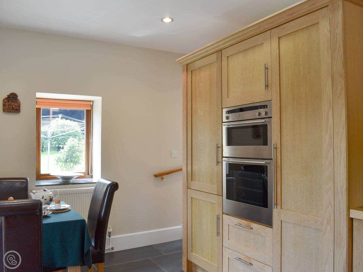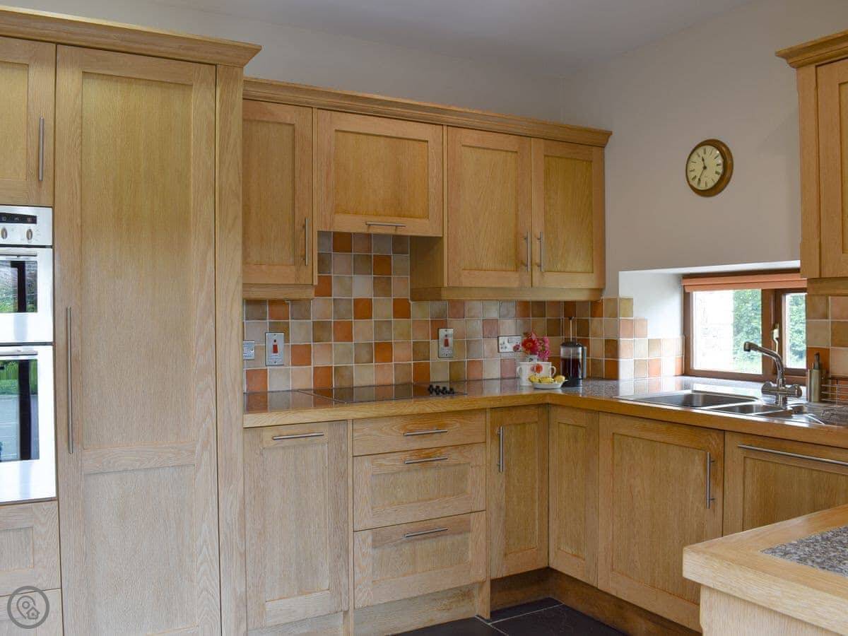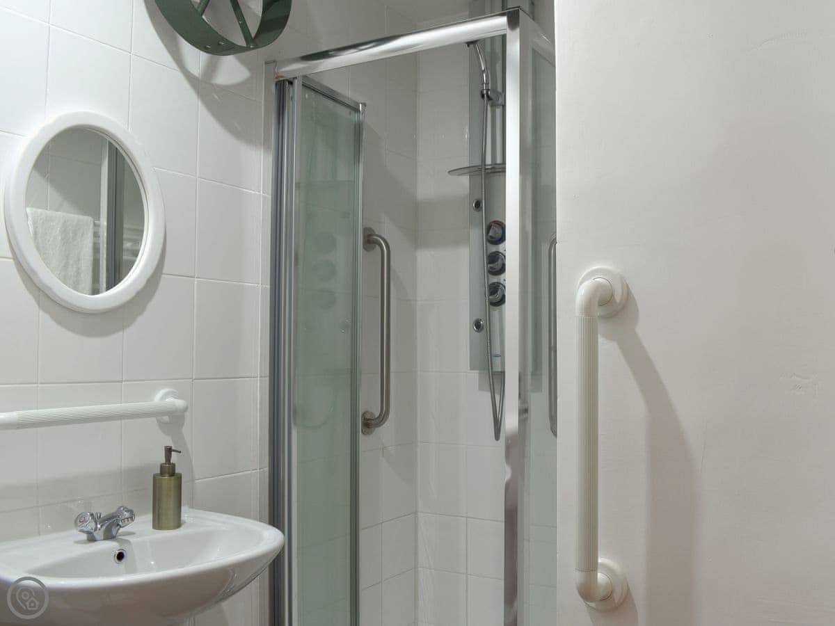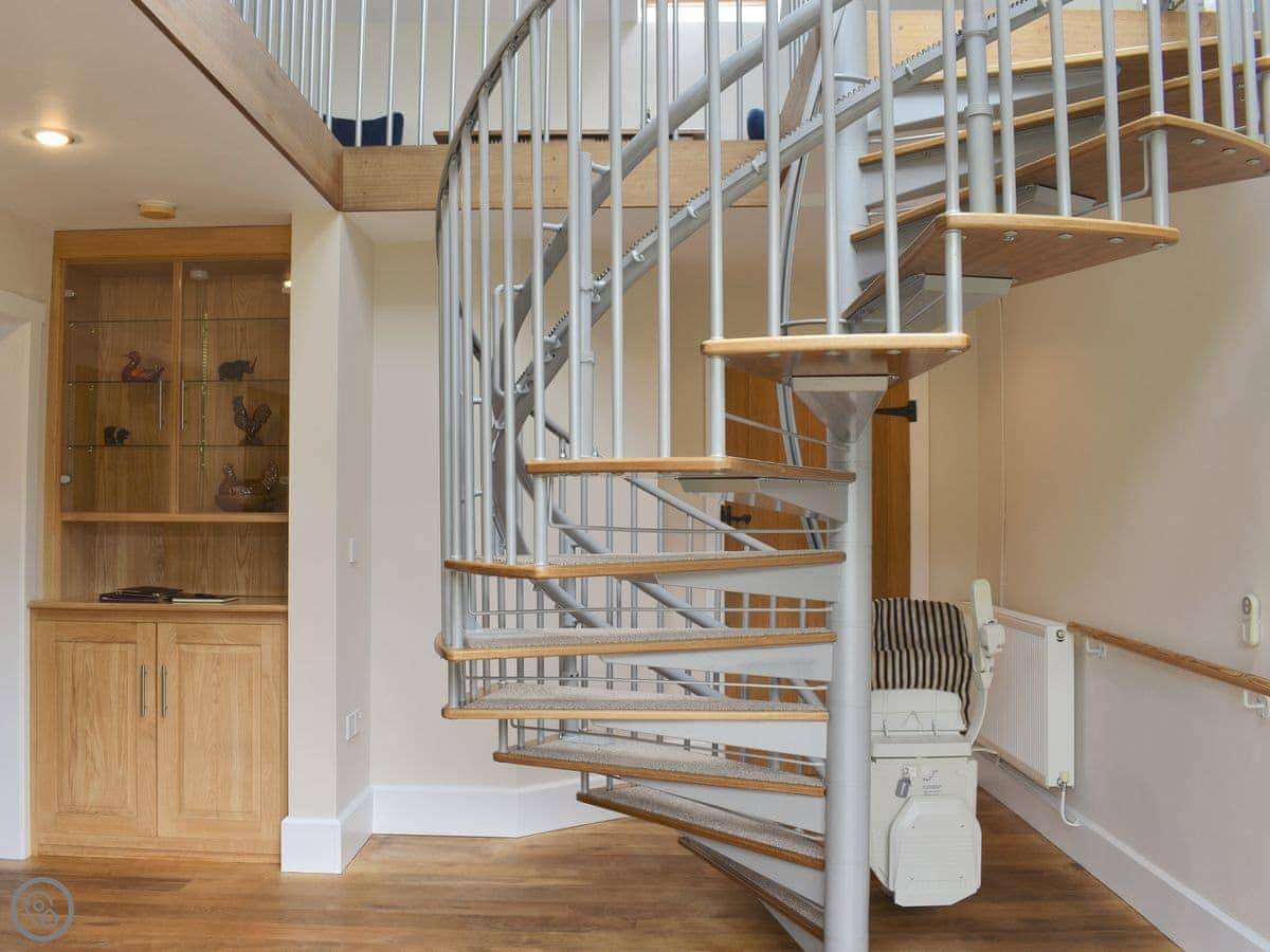 The living room is spacious with three two-seater sofas, a Smart TV, a wood burner to curl up beside on a chilly evening and a double set of patio doors leading out into the garden. The property has it’s own private garden with a charcoal barbecue, a patio area with seating and a lawn, perfect for enjoying a morning coffee whilst you plan your day. The open plan kitchen and dining area has two ovens, a dishwasher, fridge/freezer, microwave and slate flooring. In the centre of the property is a carpeted spiral staircase leading to the first floor which has landing area with a couple of comfy chairs and a kingsize double bedroom with a beautiful oak bed, dressing table, a built-in wardrobe and two bedside tables. The bedroom also has an en-suite bathroom with a shower attachment over the bath and a heated towel rail. Next door is a second kingsize double bedroom with an oak bed, freestanding wardrobe, chest of drawers and two bedside tables. Downstairs there is a shower room with a shower cubicle, hand rail, toilet and a heated towel rail.