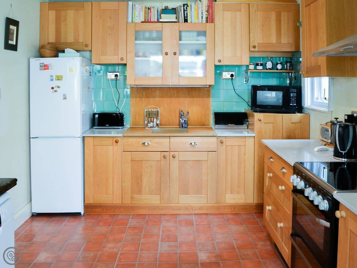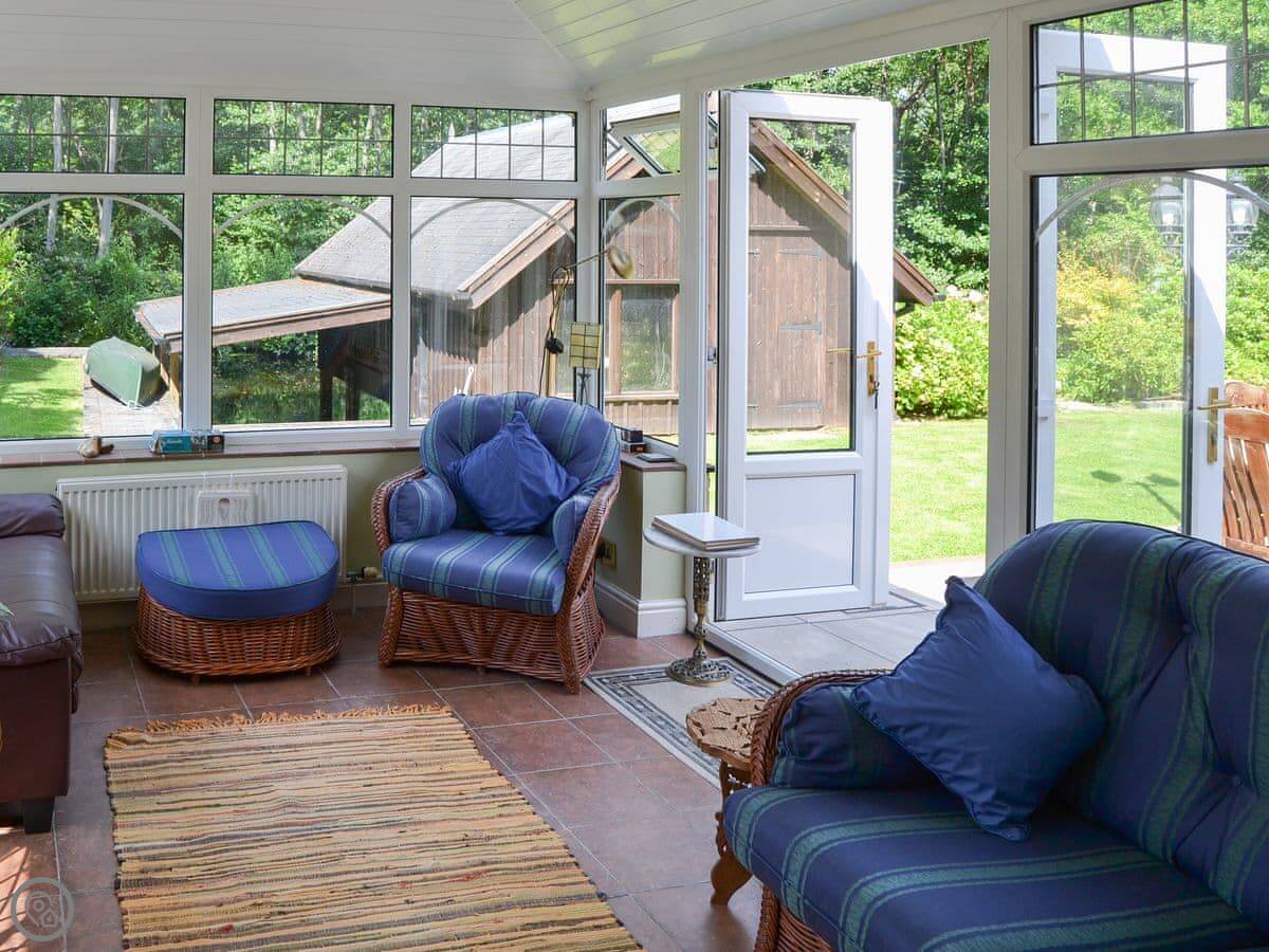 Inside, there's a conservatory looking over the garden and the water. There's a wood burning stove for cooler evenings. The utilities and wifi are included. Everything you'd expect is there, like a washing machine, dishwasher, and bedding and towels are provided.