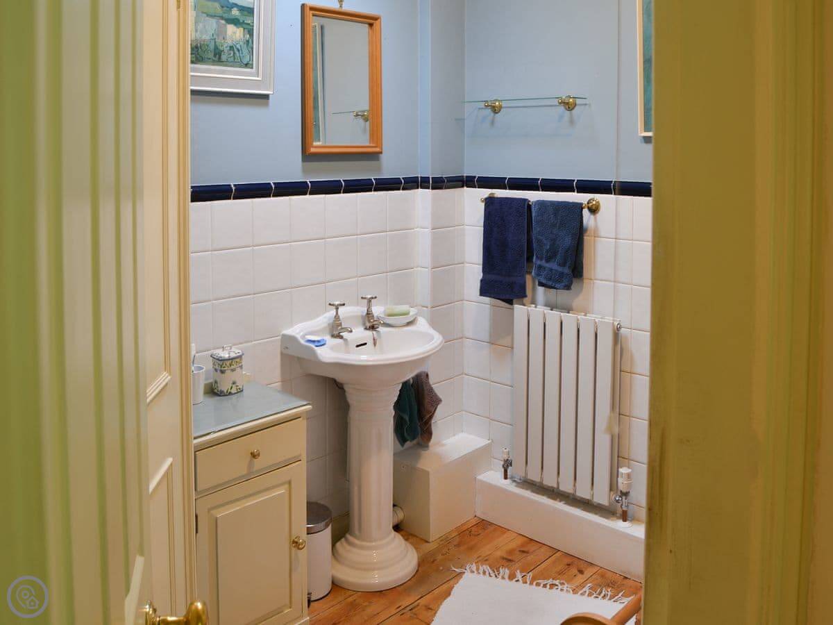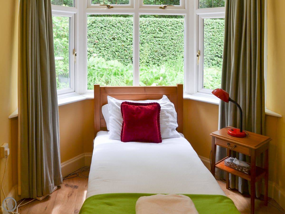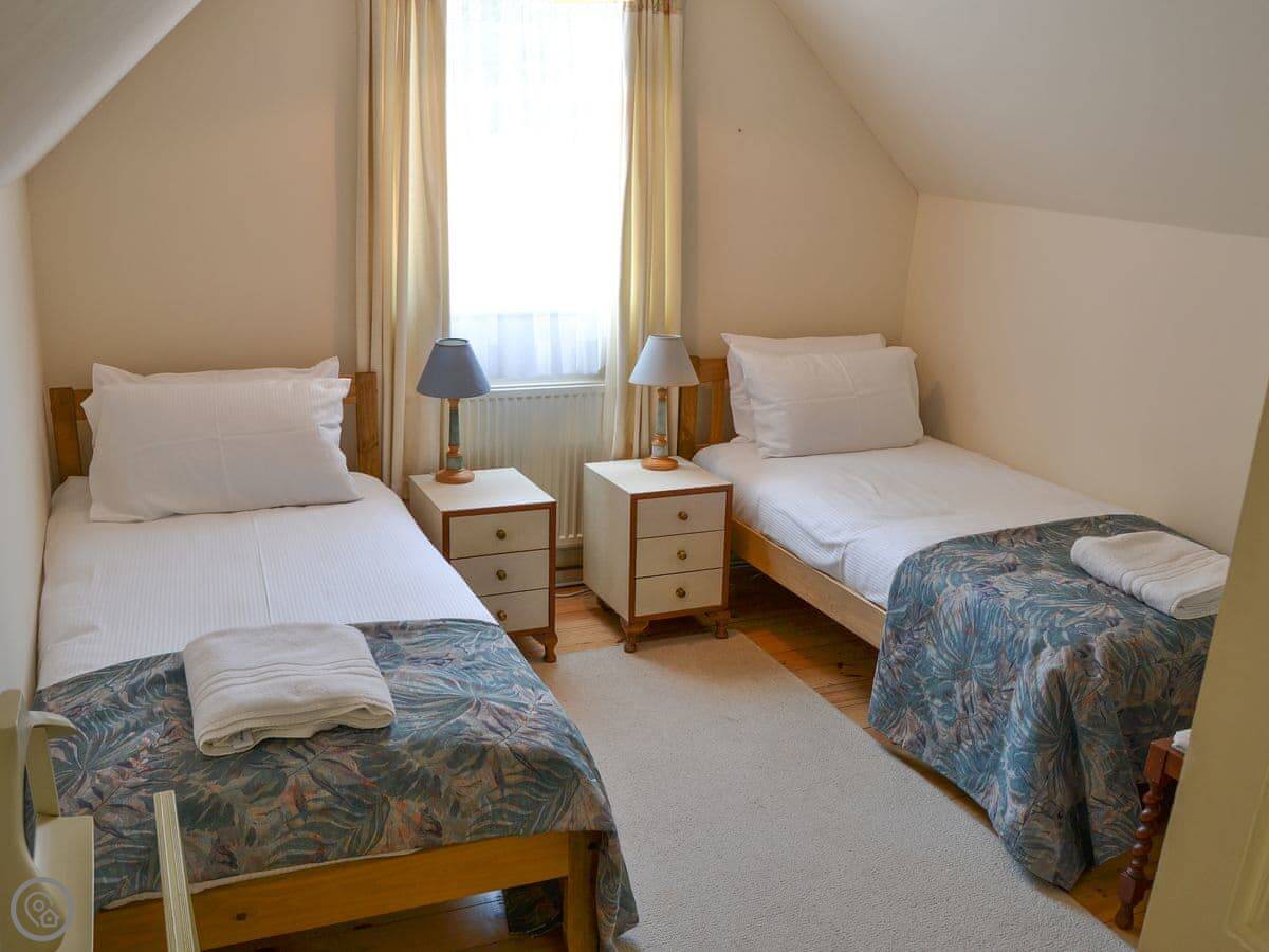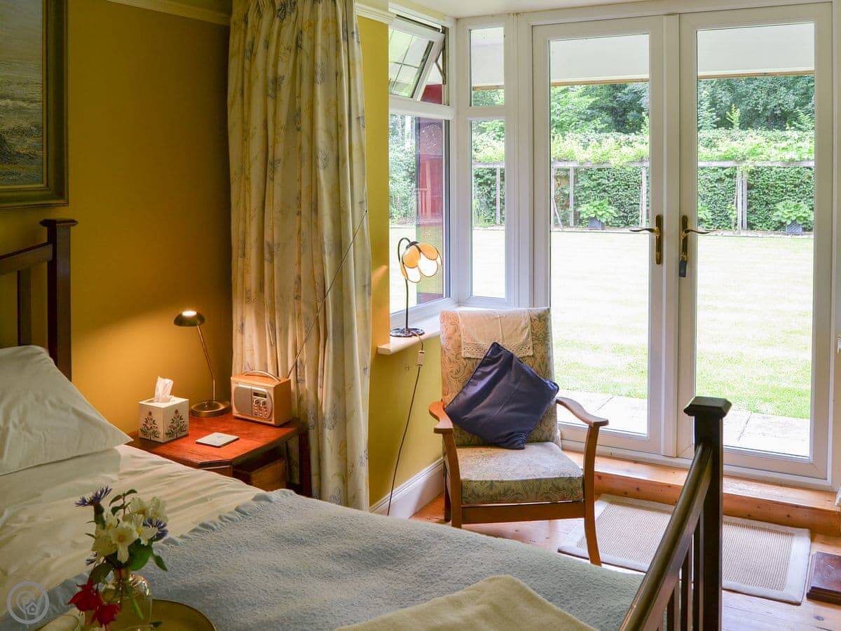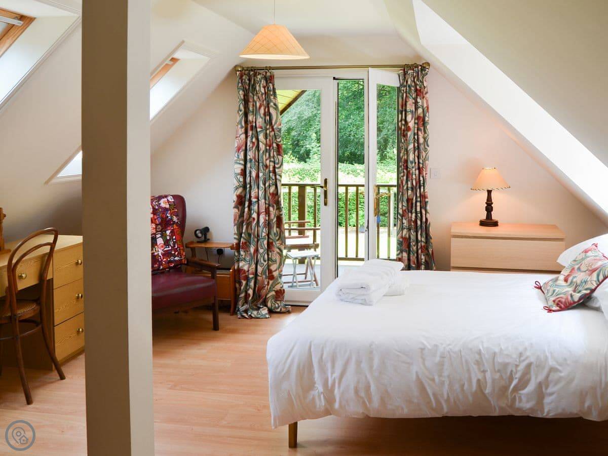 It sleeps eight. Four bedrooms, two bathrooms. One of the twin rooms upstairs has its own little veranda overlooking the river. It's got a 4 Star rating, so it's comfortable and well-equipped. The garden is enclosed, which is good for dogs and kids. We take up to two pets.