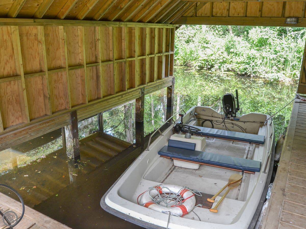 The location is the main thing. You're on a private waterway that leads straight into Wroxham Broad. You can fish from the garden if that's your thing. It's very quiet, but you can walk to the shops and pubs in Wroxham in about ten minutes. That's where you'll find boat hire, trips, cafes, and everything else.