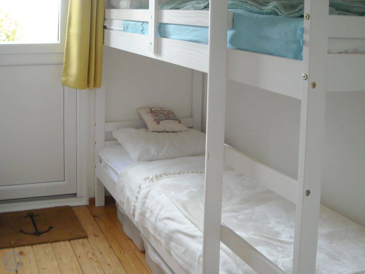 It sleeps six. Three bedrooms and one bathroom. It's got a 3 Star rating. That means it's clean and everything works, but don't expect anything luxurious. It's a holiday park chalet.