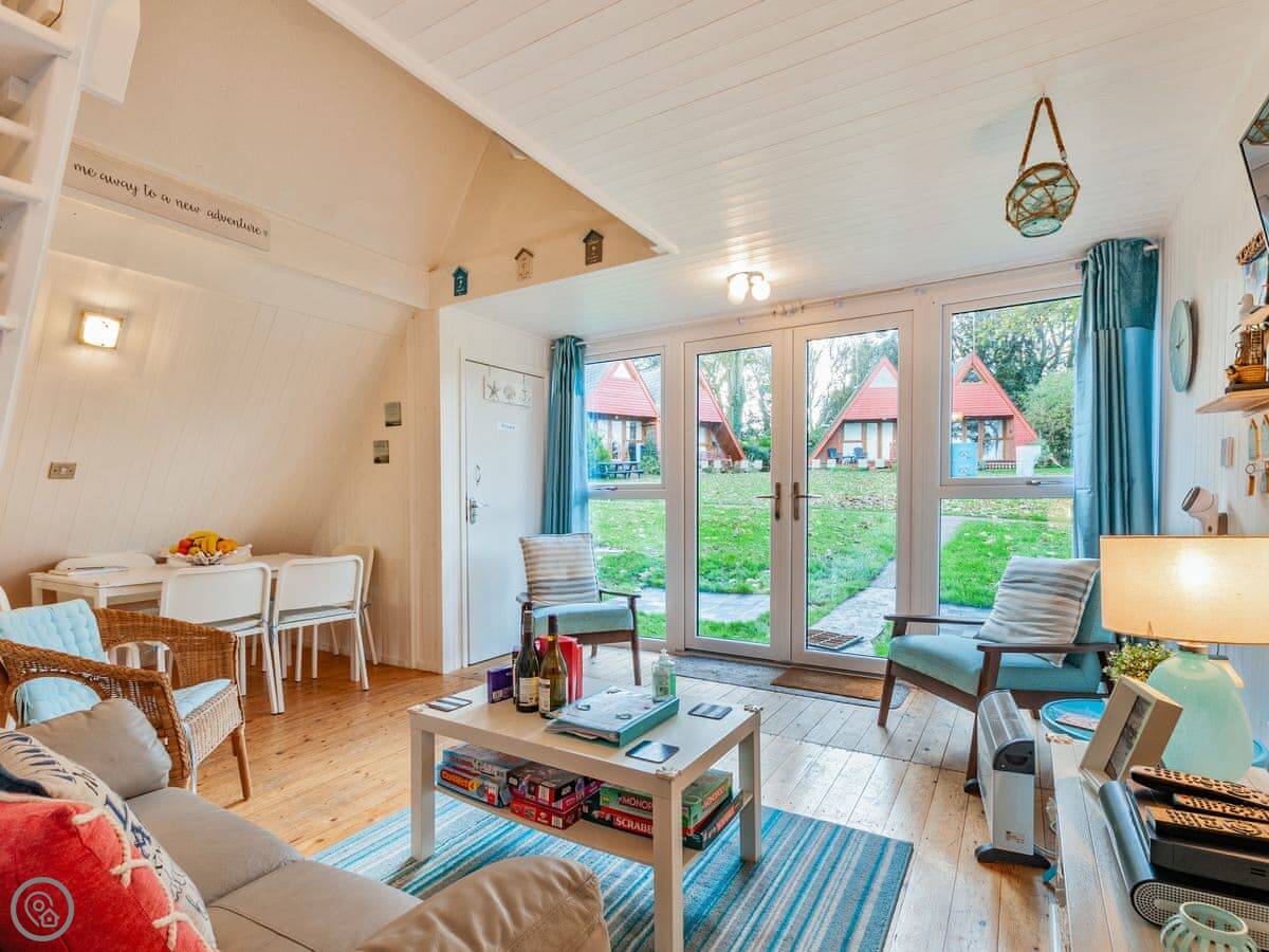 Facilities: parking right outside, includes bedding and towels, wifi, TV, washing machine. There's a cot and highchair if you need them. The entrance is level, but there's a small step up into the chalet itself. No pets.