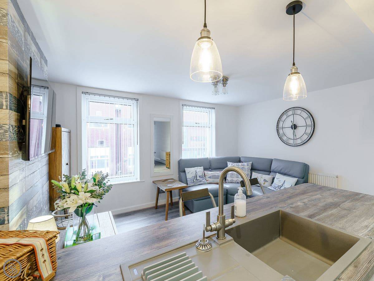 Kays is a first-floor apartment in Cleveleys. You’re about 150 yards from the seafront. It’s a 2-bed apartment, sleeps three, with a modern open-plan living area and a walk-in wet room.