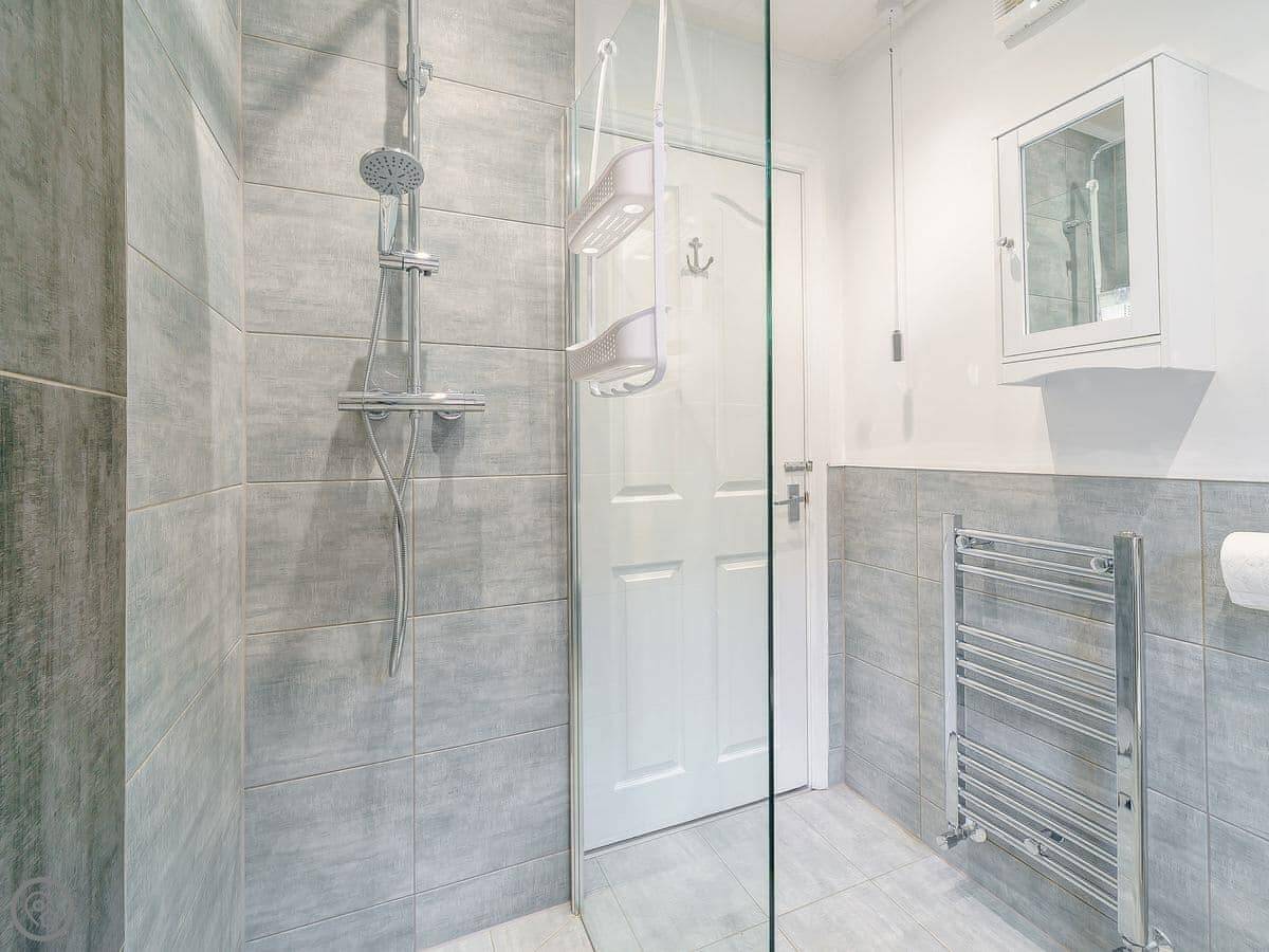 The place is modern and clean. It’s got a 4 Star rating. There’s a dishwasher, WiFi, and bedding and towels are included. The shower is a proper walk-in wet room.