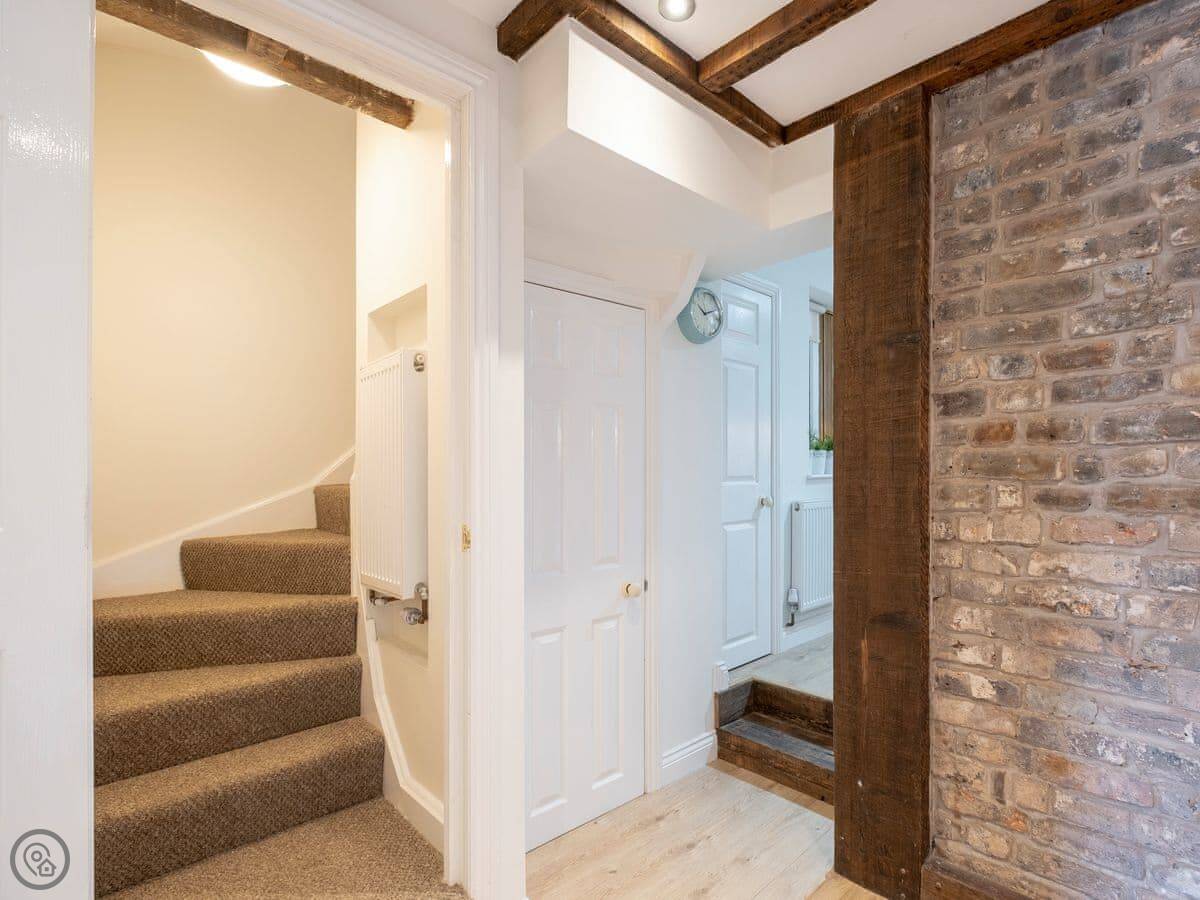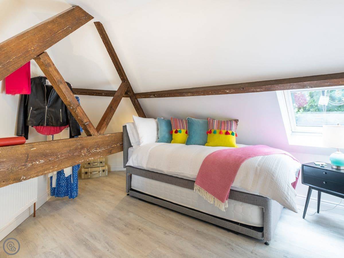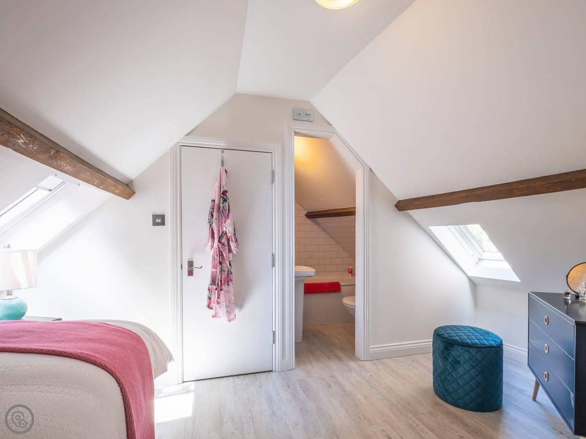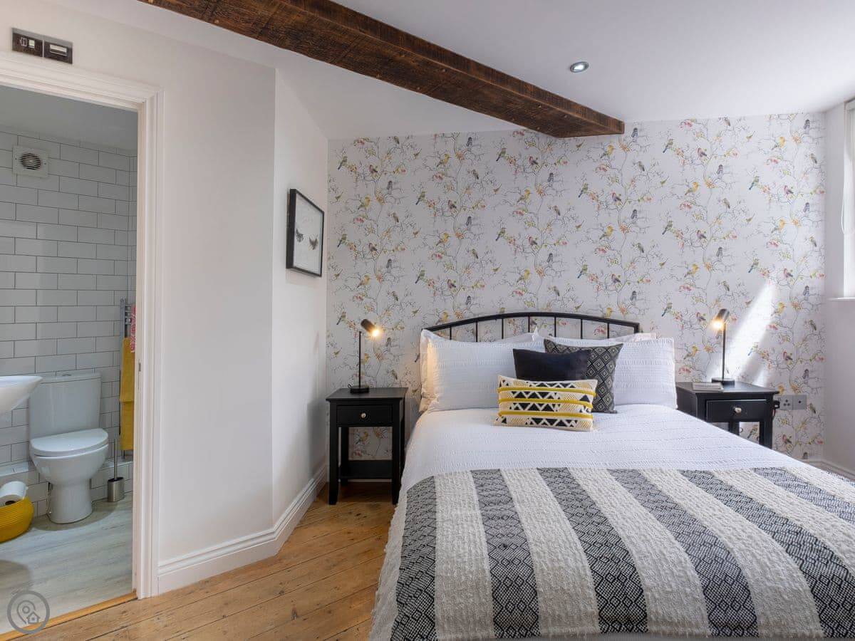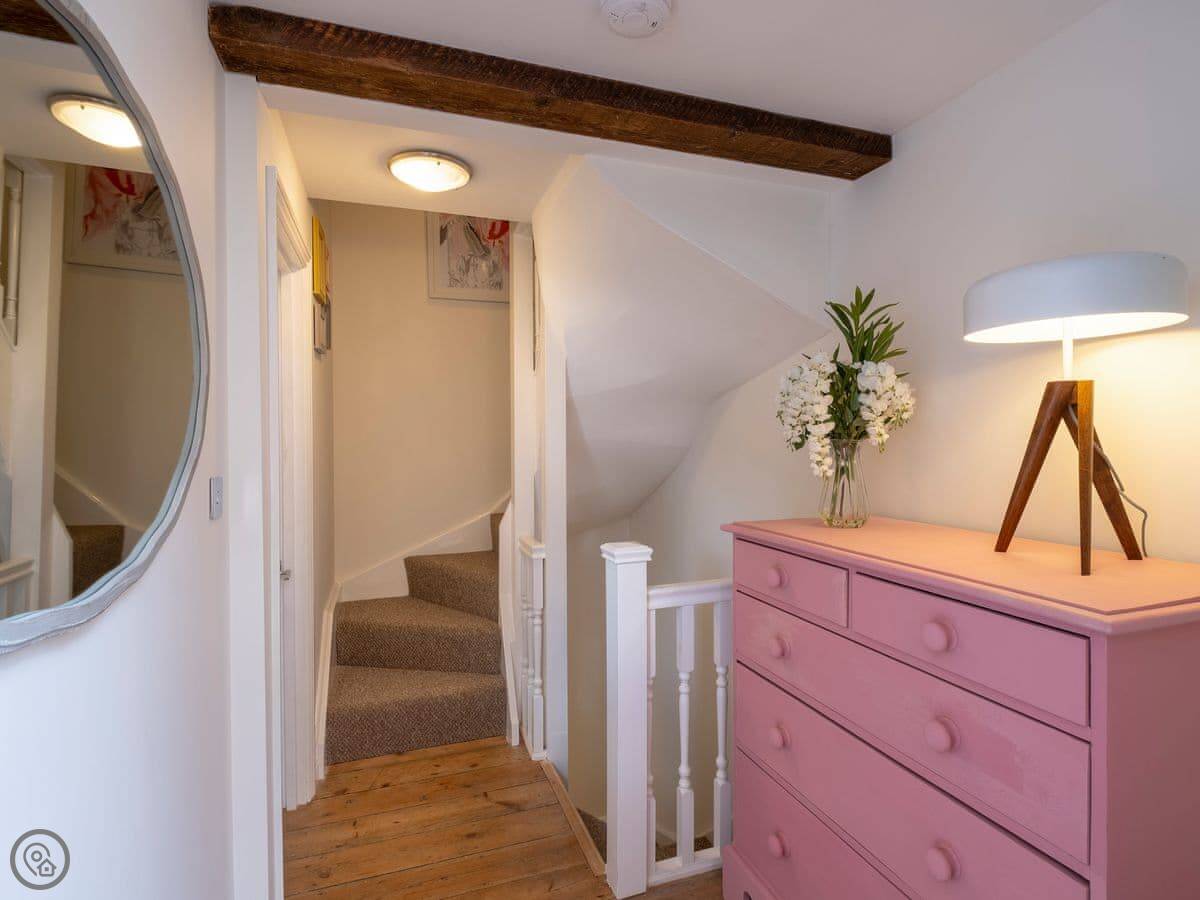 The Old Sweet Shop is in Broseley, a small town in Shropshire. It used to be a sweet shop, obviously. It's on three floors, so you get a bit of climbing. The stairs are solid, but like most old buildings, they can be a bit steep. The two bedrooms are double rooms and they're both ensuite, which is handy.