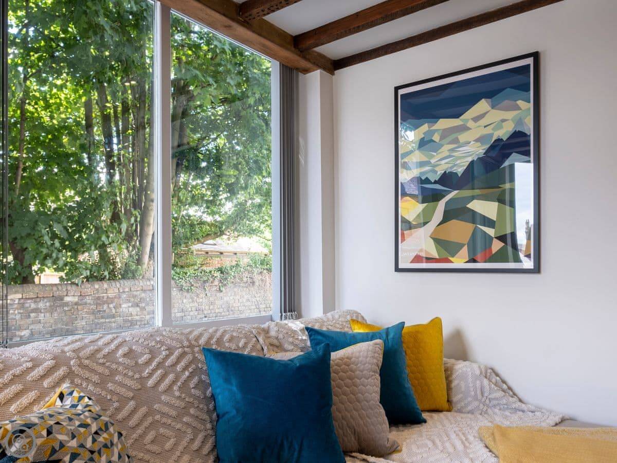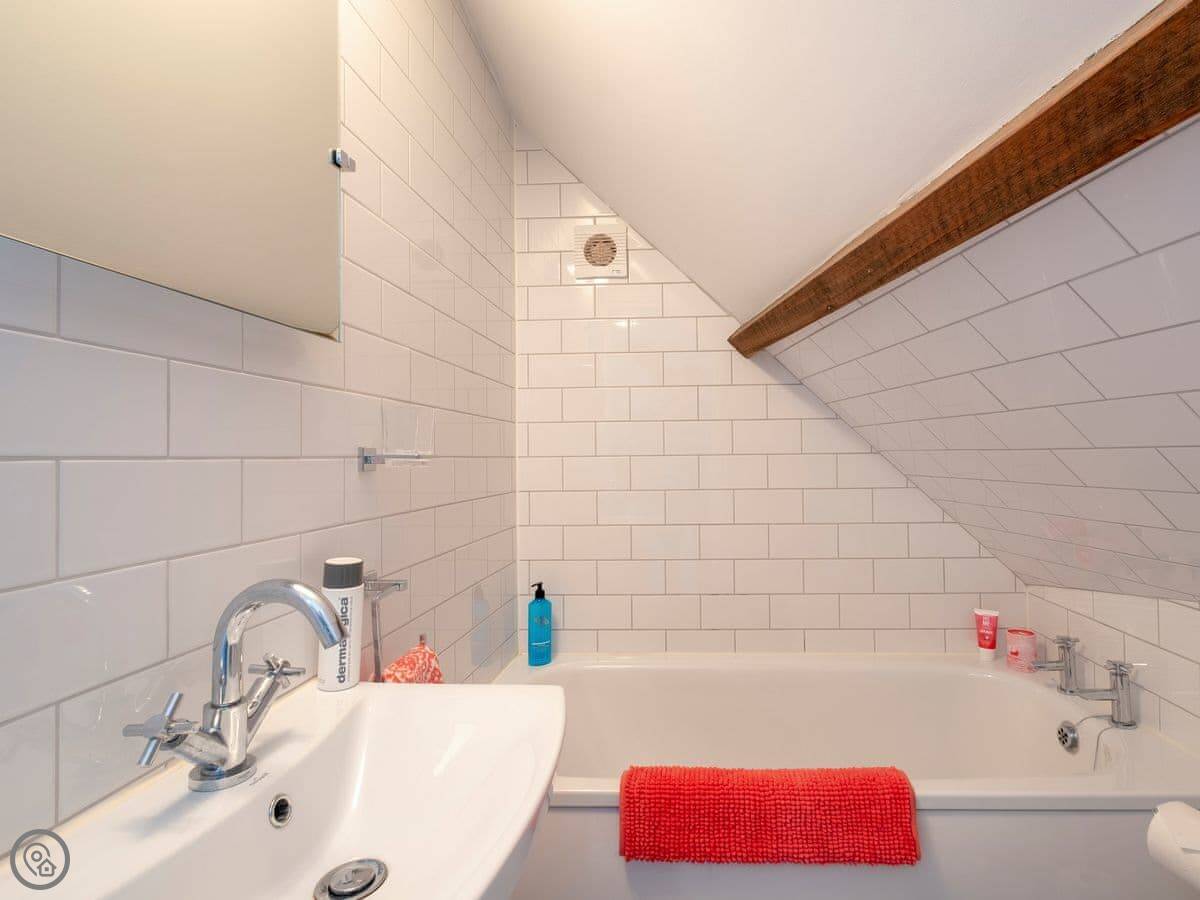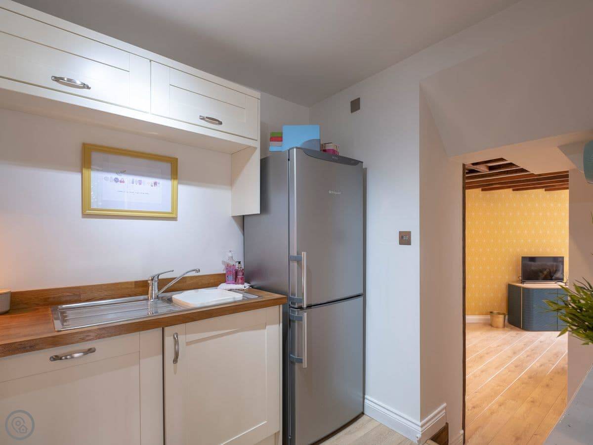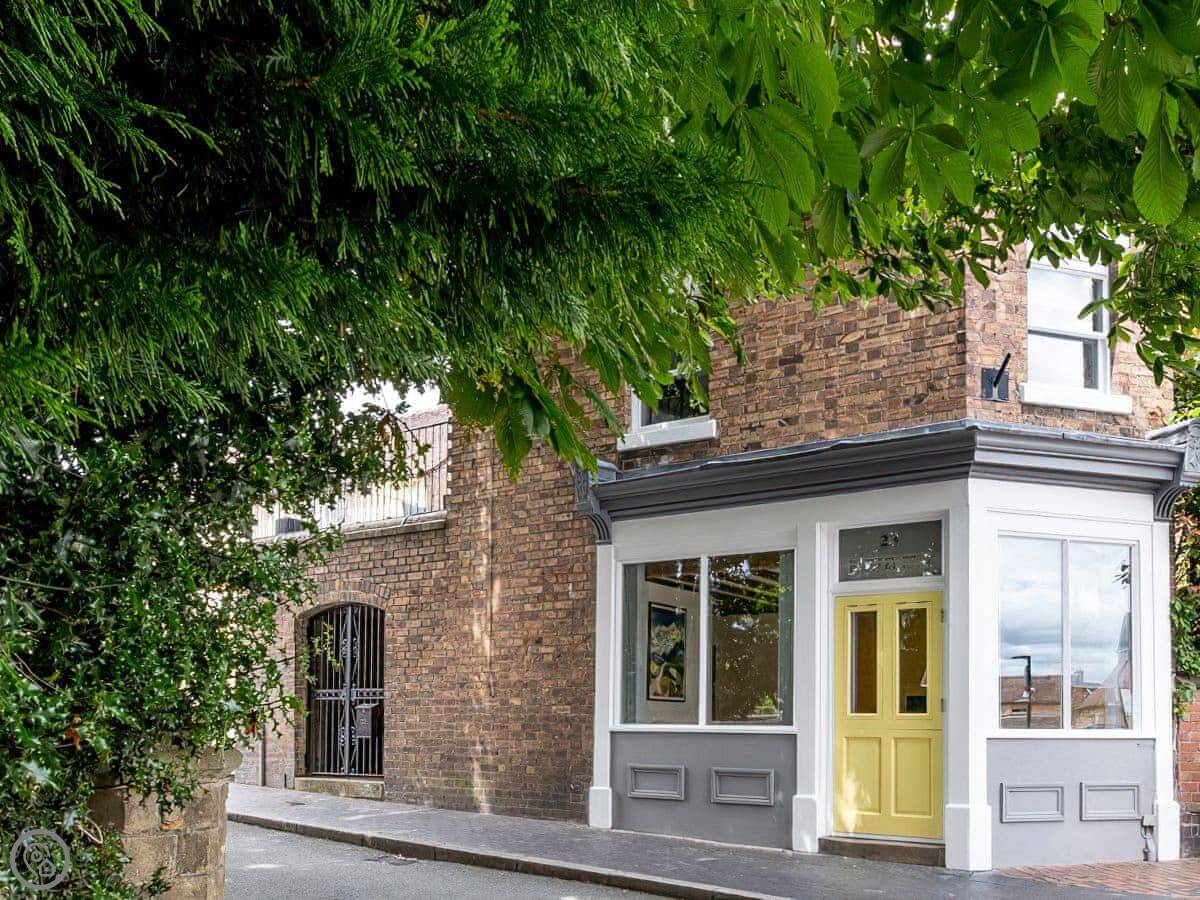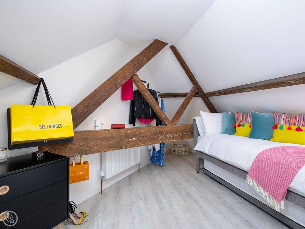 The Old Sweet Shop is in Broseley, a small town in Shropshire. It used to be a sweet shop, obviously. It's on three floors, so you get a bit of climbing. The stairs are solid, but like most old buildings, they can be a bit steep. The two bedrooms are double rooms and they're both ensuite, which is handy.