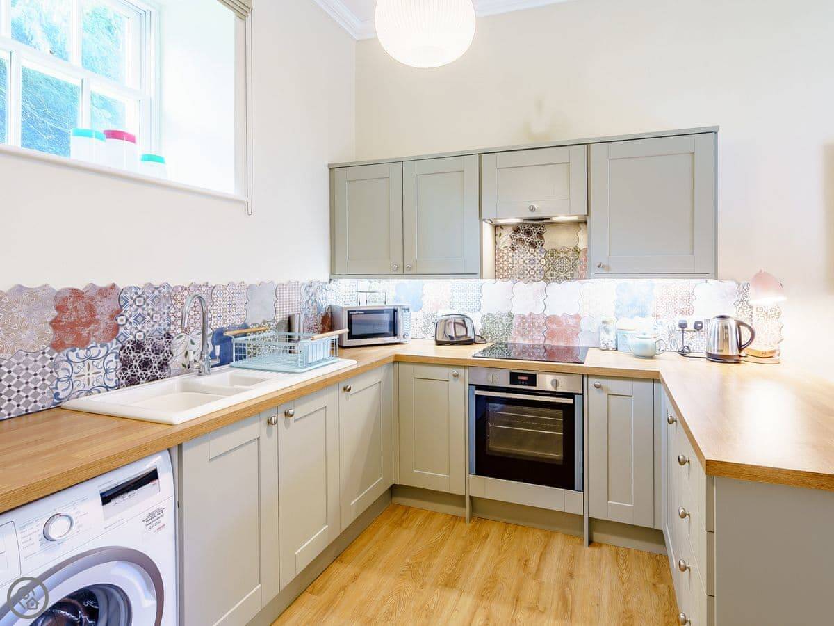 In the cottage, there's a wood burner in the living room. The kitchen has what you need: washing machine, oven, fridge. There's a TV and WiFi. Bedding and towels are included. There's parking for two cars right outside.