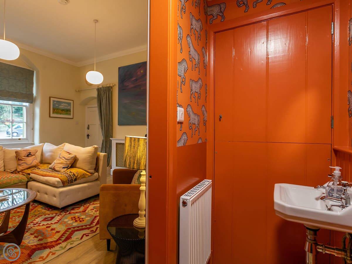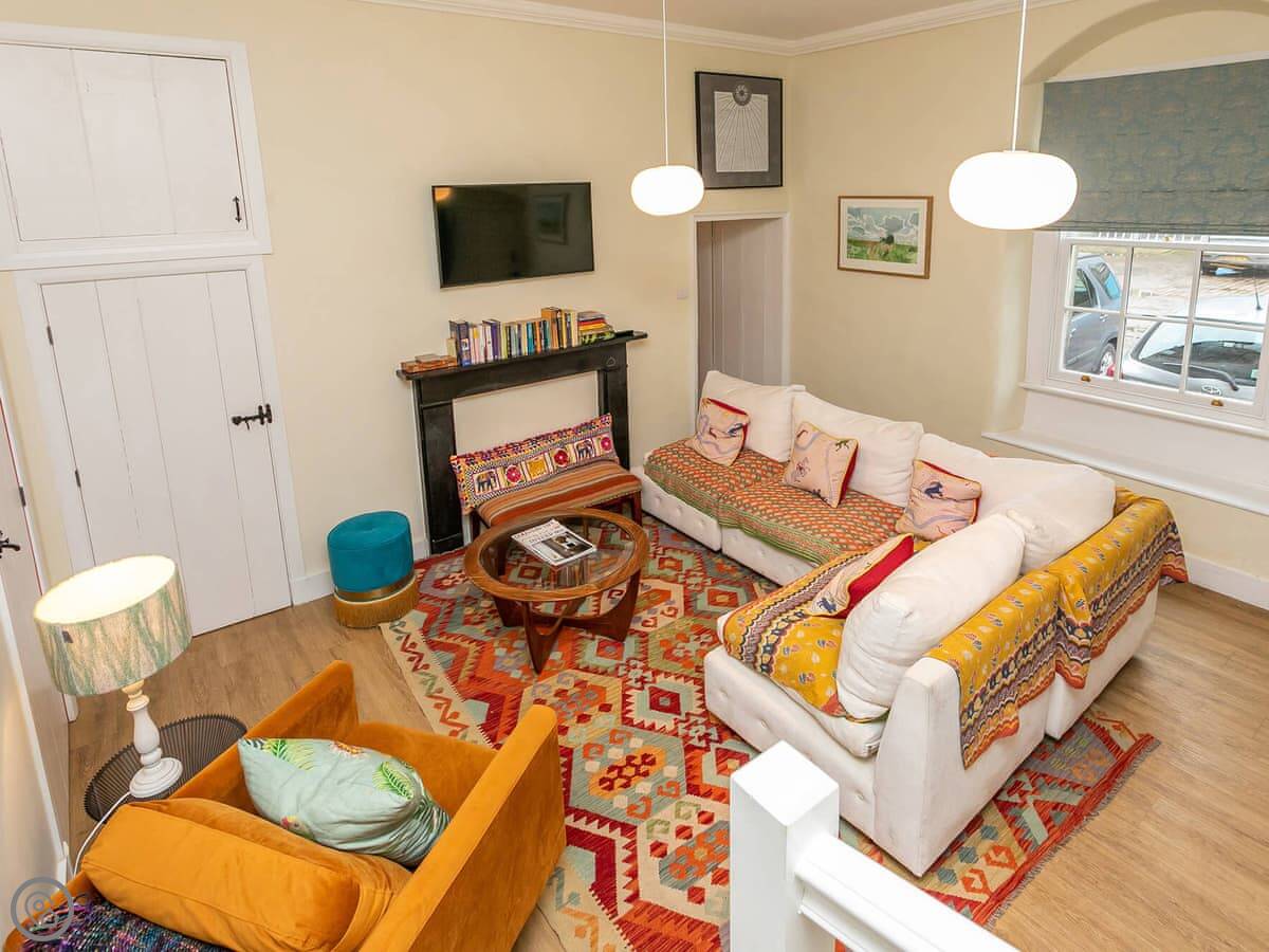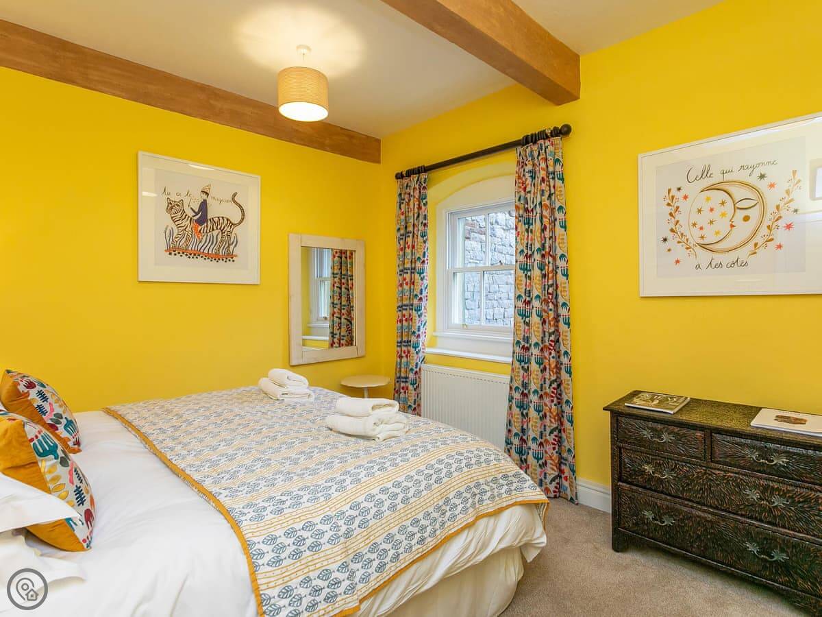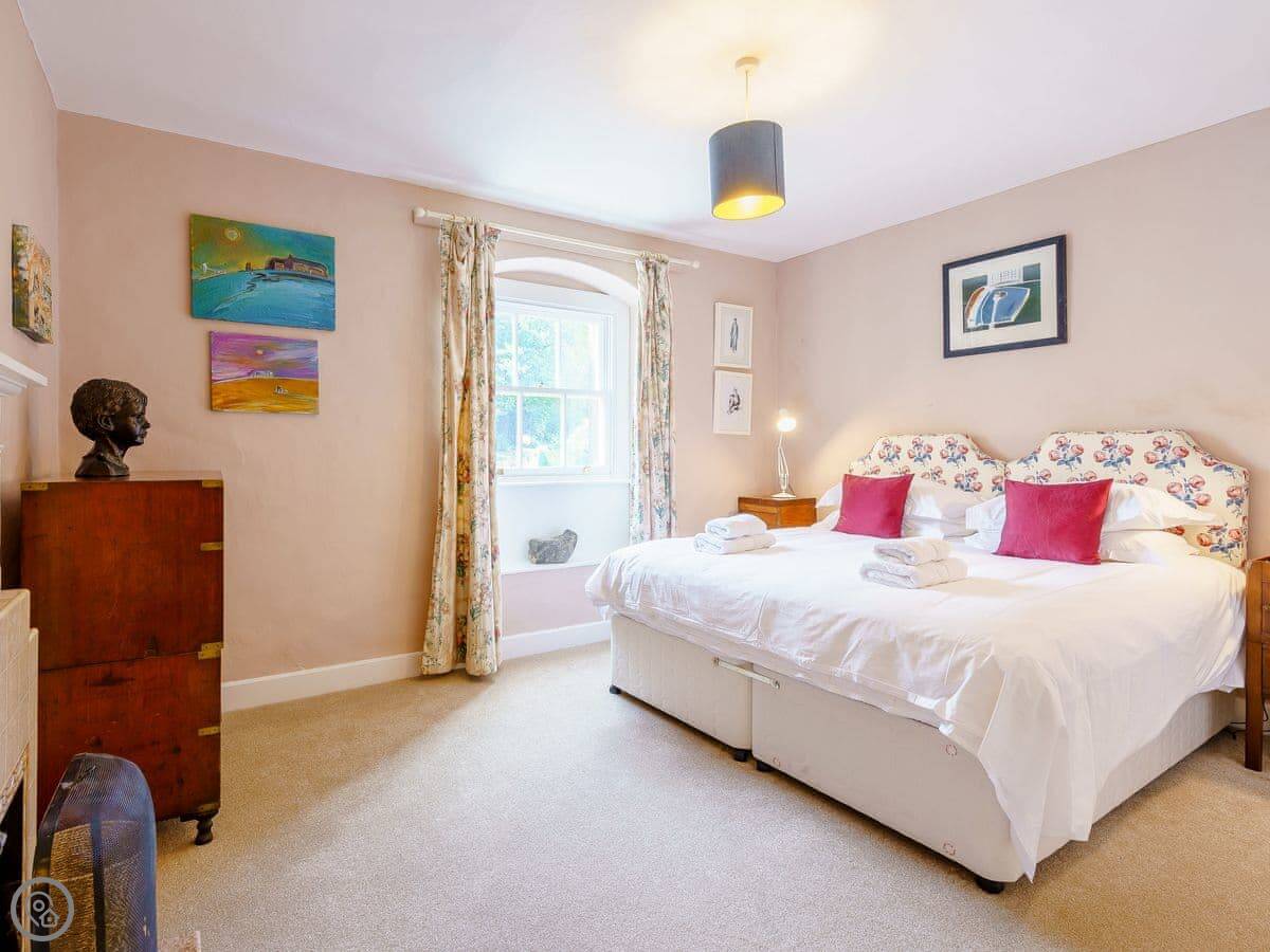 It sleeps six. Three bedrooms, two bathrooms, so one is ensuite. The beds can be doubles or twins, you just need to ask beforehand. The stairs are cottage stairs. They're fine, but they turn a corner and are a bit steep.