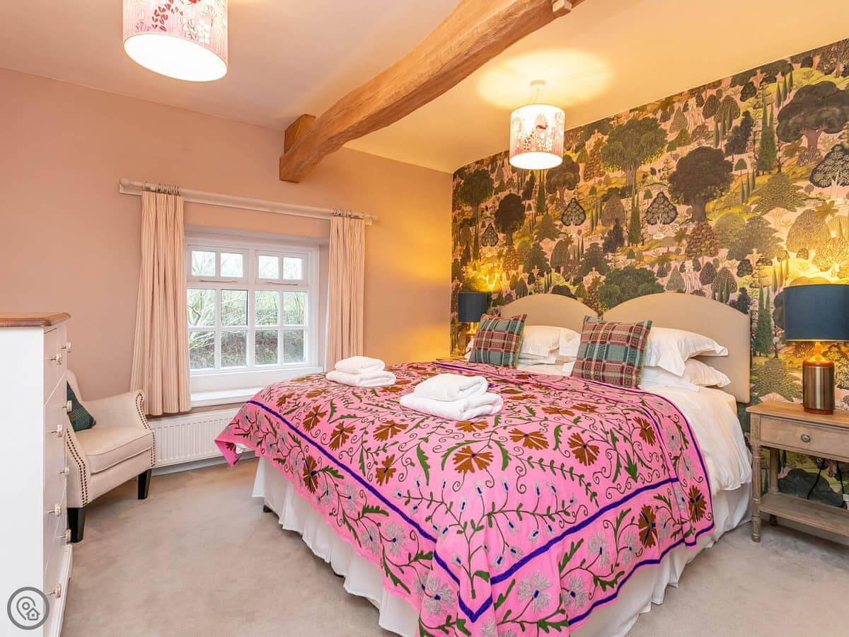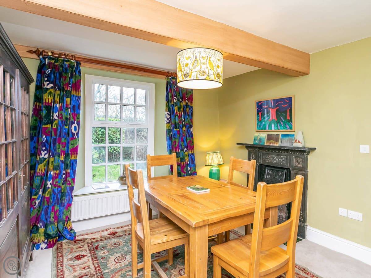 The main thing is the view out the back. The garden looks straight over fields. You're right on the edge of the Broughton Hall estate, so you can walk from the door through those grounds. It's about 3000 acres. You'll see the hall itself, and there's a river with bridges.