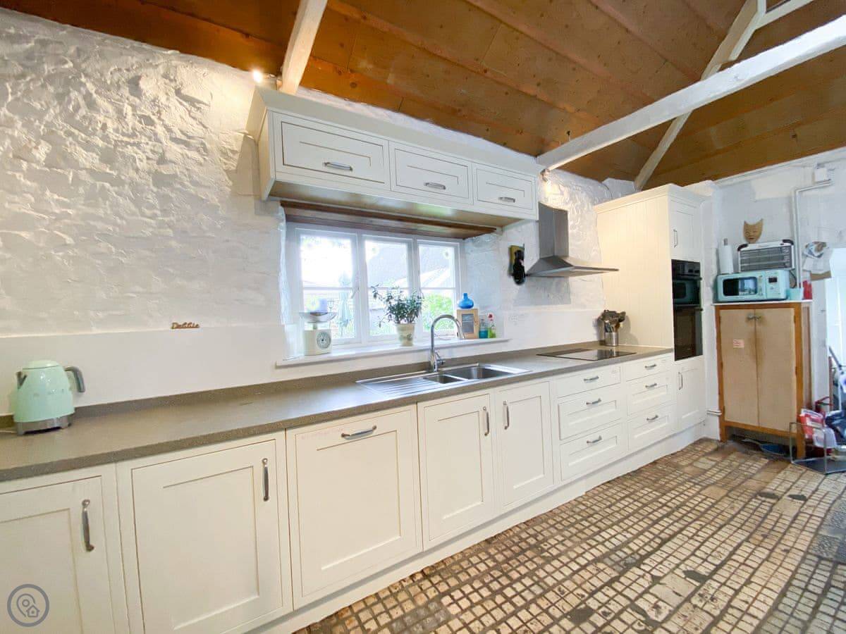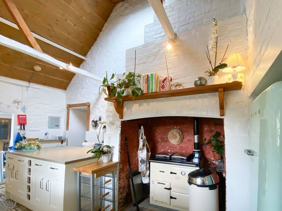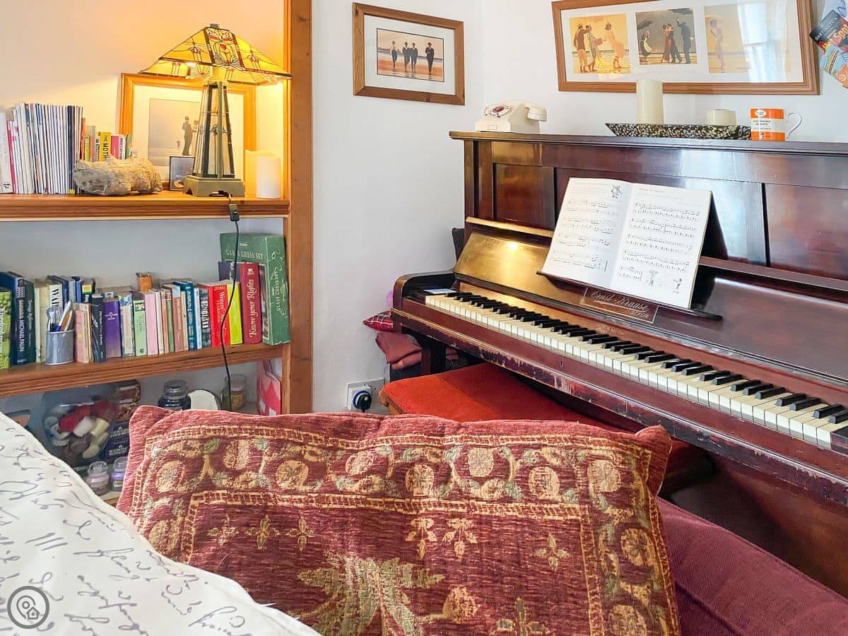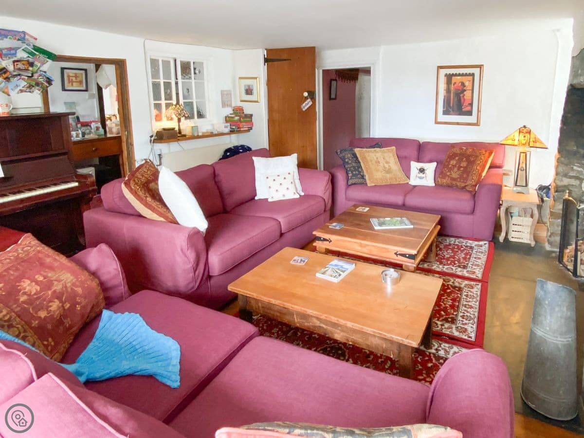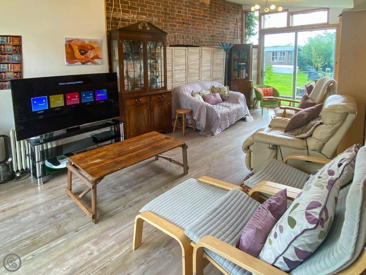 The kitchen has a big island which is good if you're cooking for a crowd. The main living room is big, with a wood burner and a piano. Each bedroom has its own tea and coffee stuff, a desk, and good towels and bedding. Two of the bedrooms have their own shower rooms.
