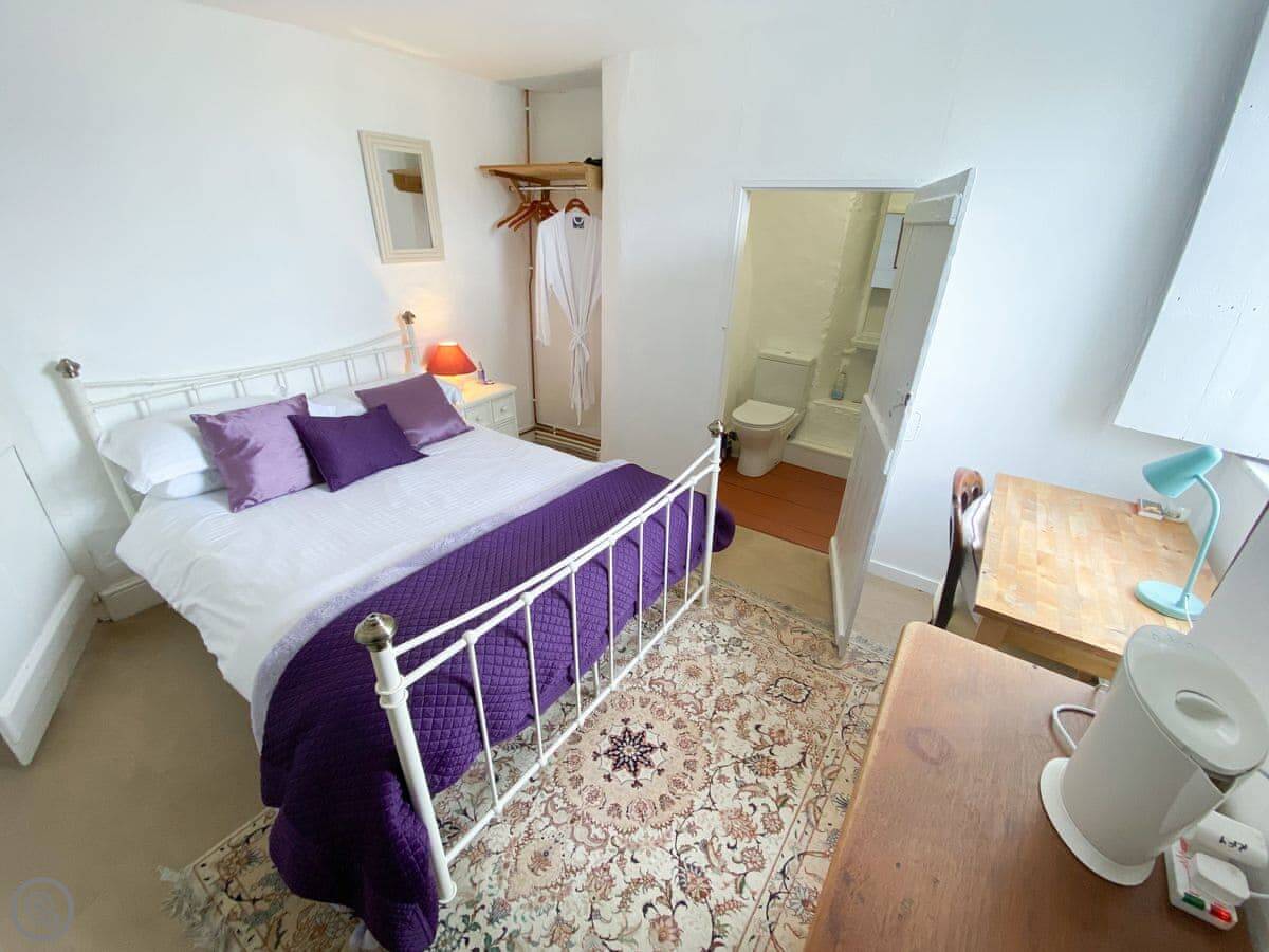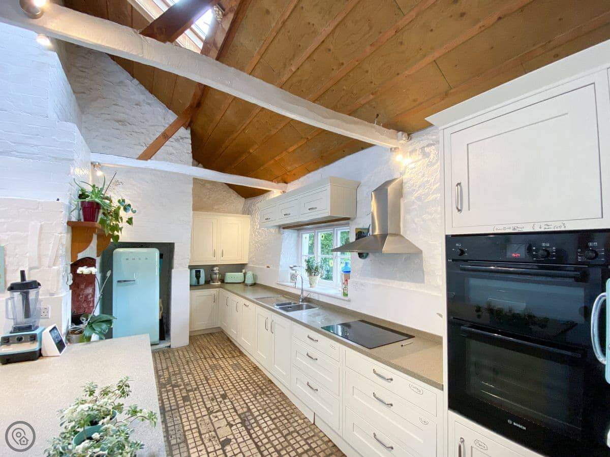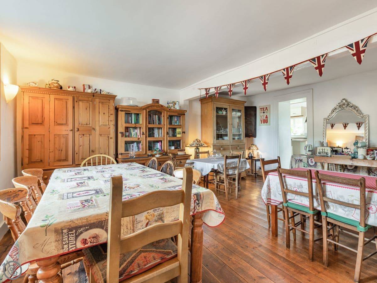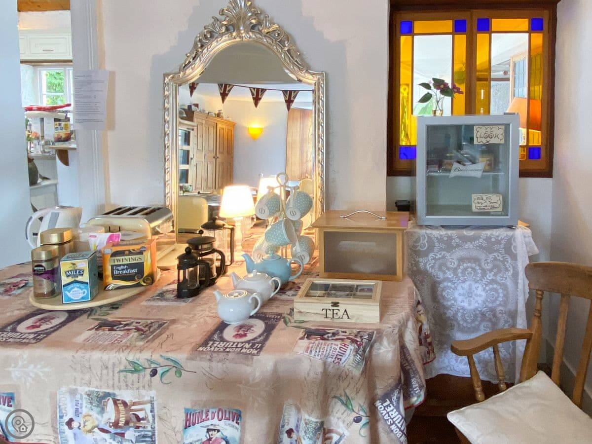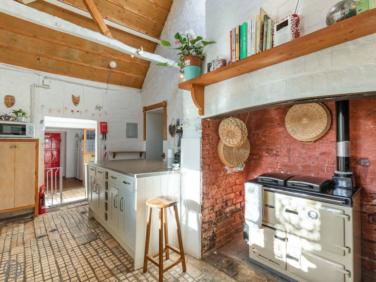 The kitchen has a big island which is good if you're cooking for a crowd. The main living room is big, with a wood burner and a piano. Each bedroom has its own tea and coffee stuff, a desk, and good towels and bedding. Two of the bedrooms have their own shower rooms.