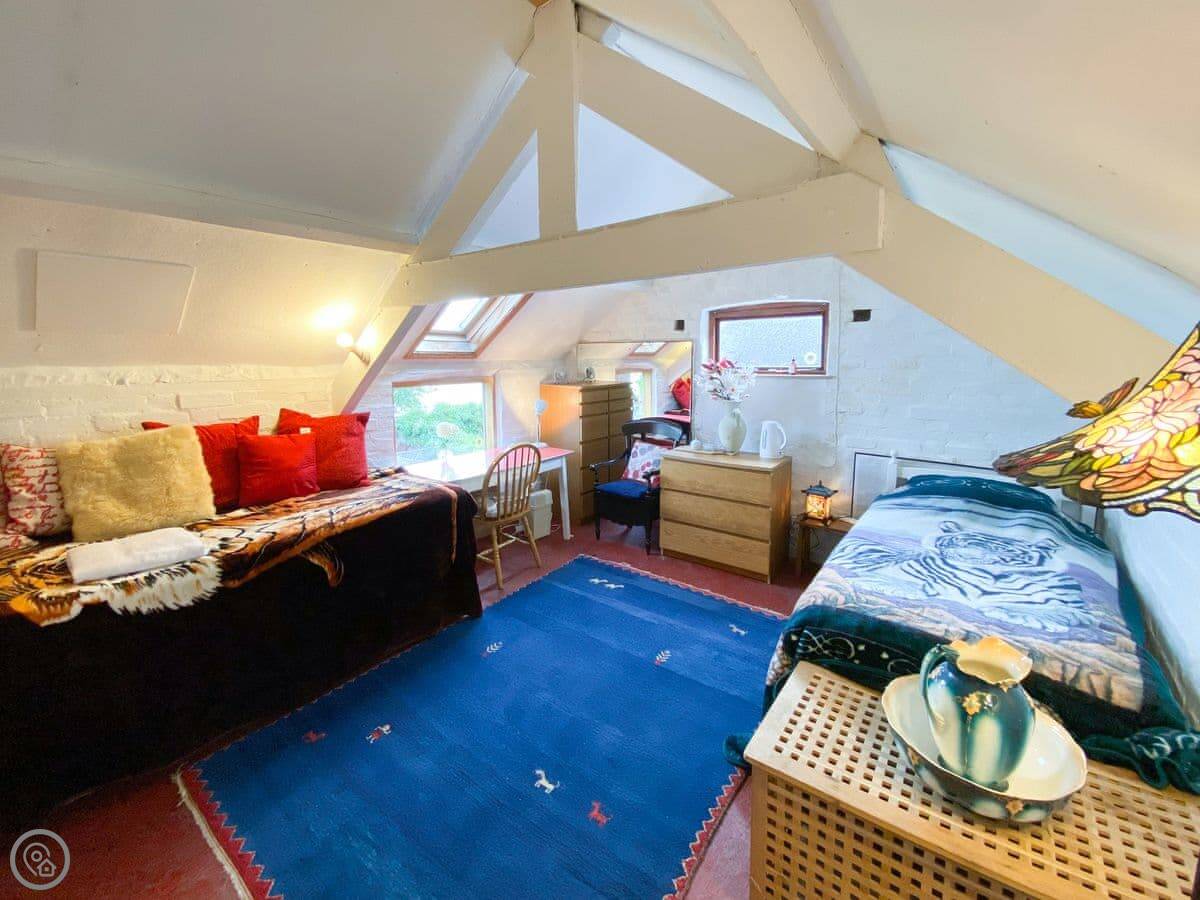 It's a big, old house, so it's got character. The stairs are proper old cottage stairs, so they're a bit steep and turn corners. The front door opens directly onto the village square, which is quiet, but it's worth knowing.