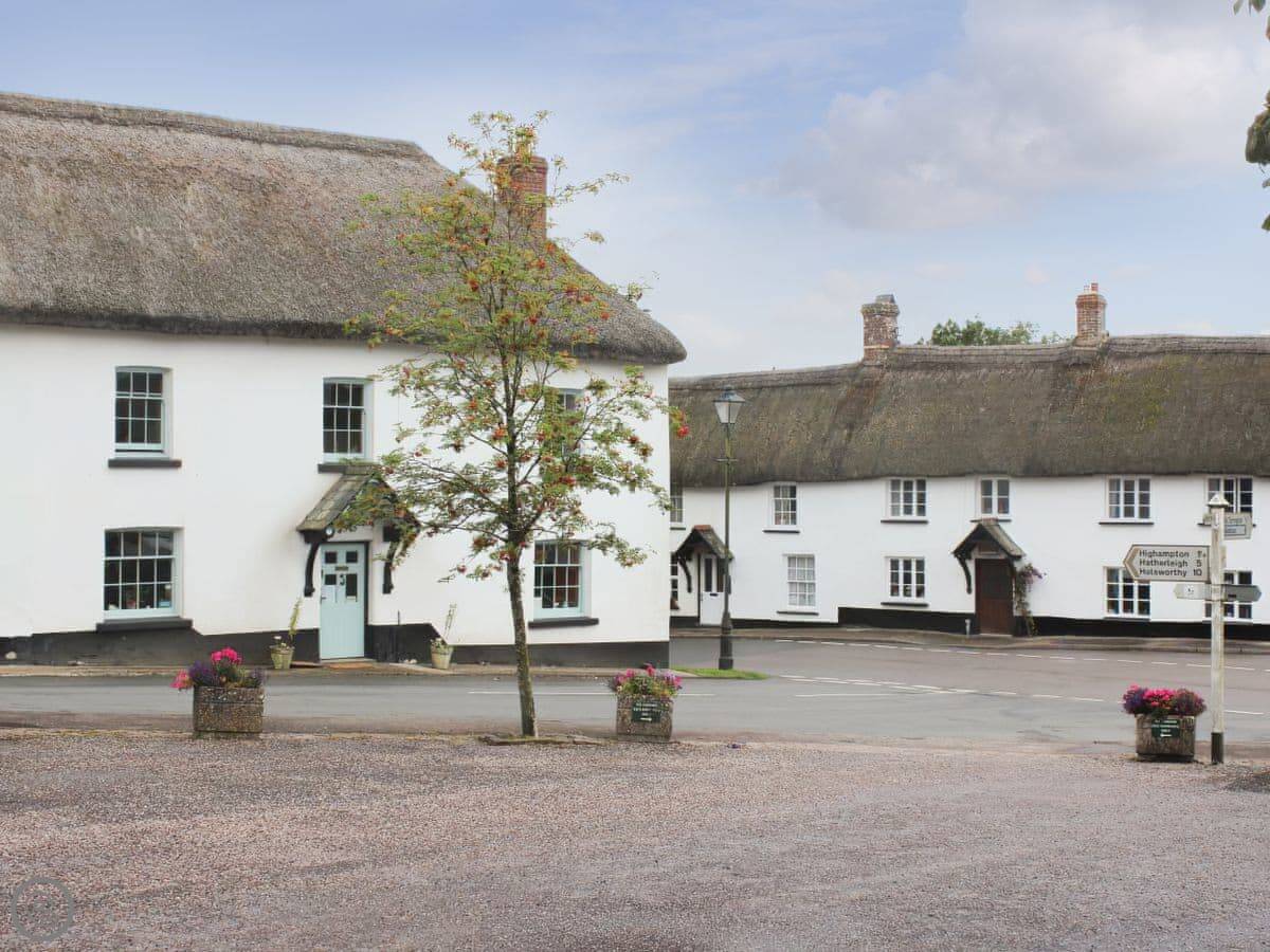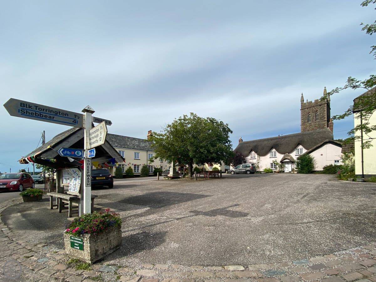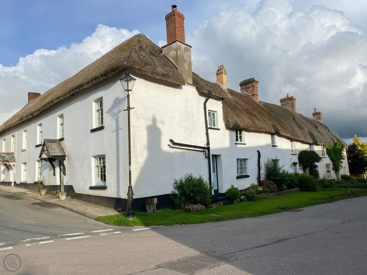 Sheepwash Square House is a thatched house from the 1600s right on the village square in Sheepwash. It sleeps ten people, in six bedrooms, and it has four bathrooms.