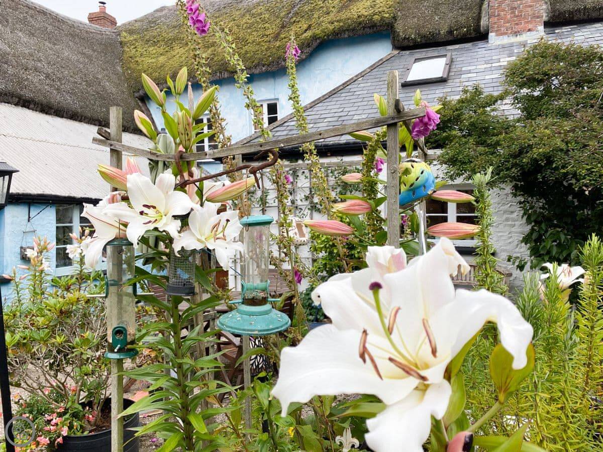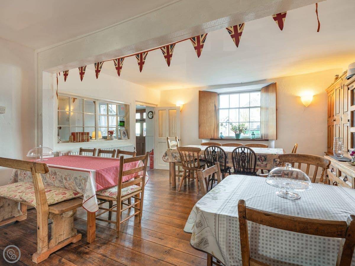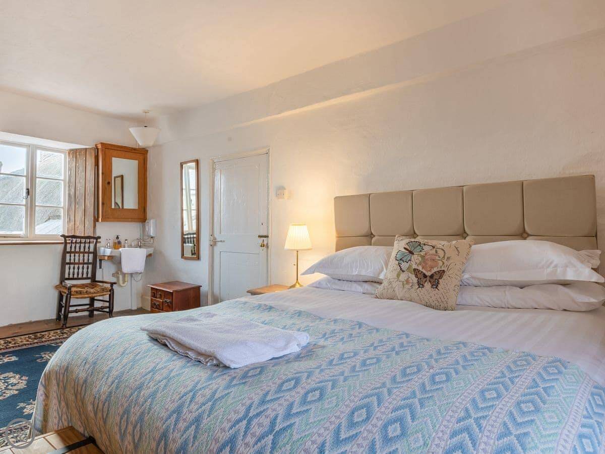 Sheepwash Square House is a thatched house from the 1600s right on the village square in Sheepwash. It sleeps ten people, in six bedrooms, and it has four bathrooms.