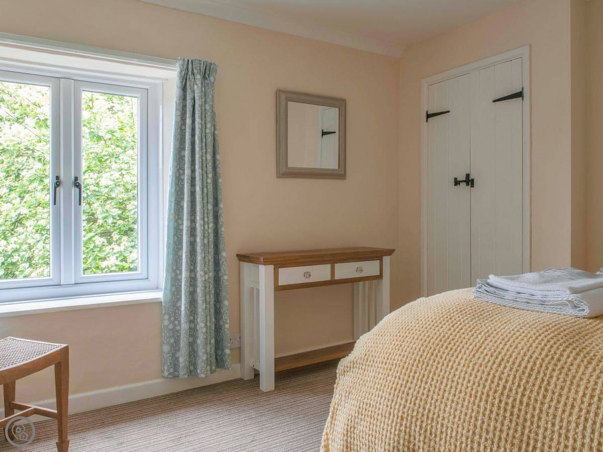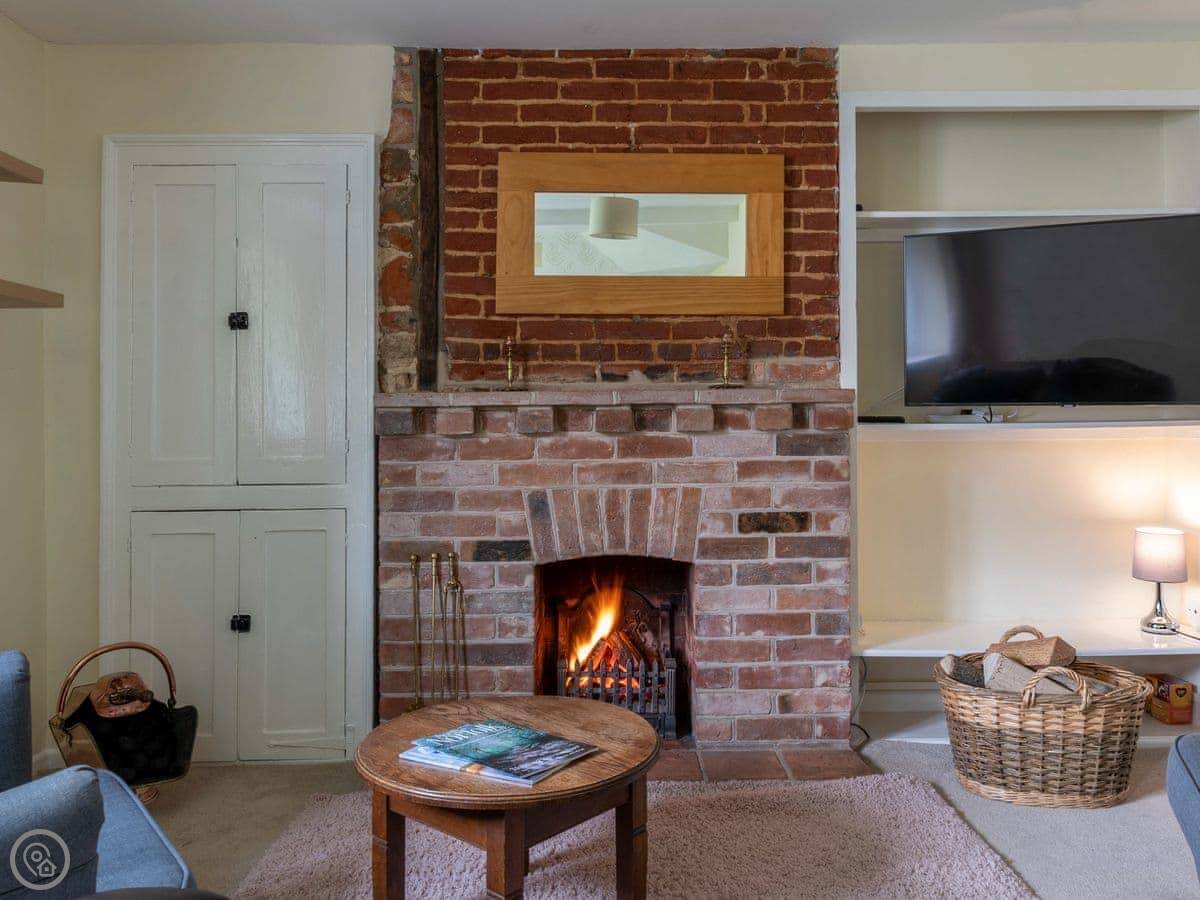 The main living space is downstairs. There's an open fireplace. It gets the evening sun. Upstairs, both bedrooms are a decent size. One has a double bed and the other has a single. The stairs are typical cottage stairs. They're not spiral, but they are a bit steeper than a modern house.