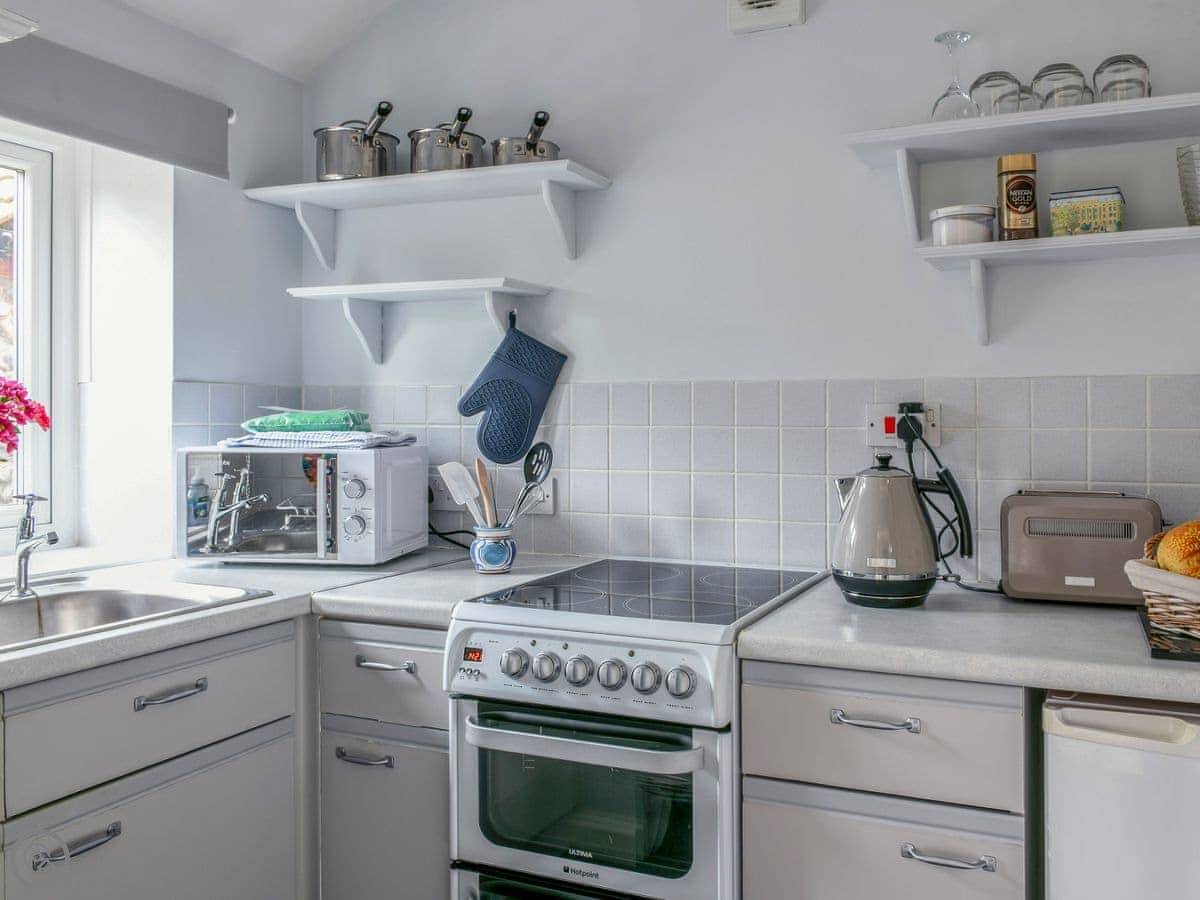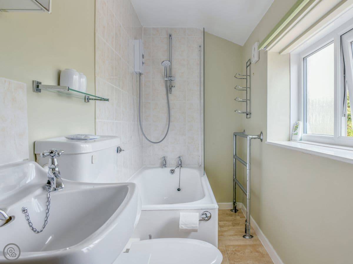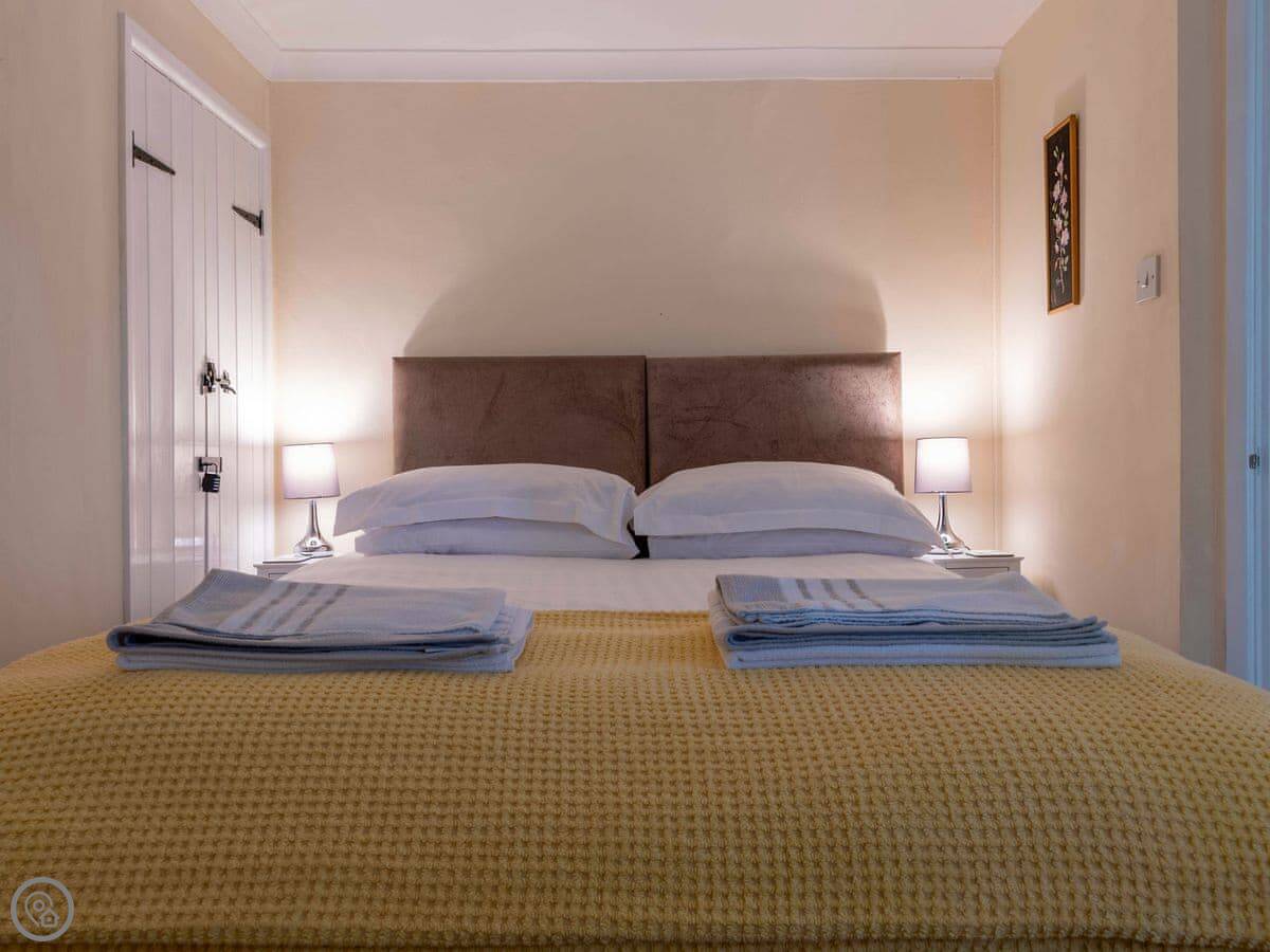 The facilities are what you'd expect: bedding and towels are included, there's a washing machine, TV, and WiFi. You can bring one well-behaved dog.