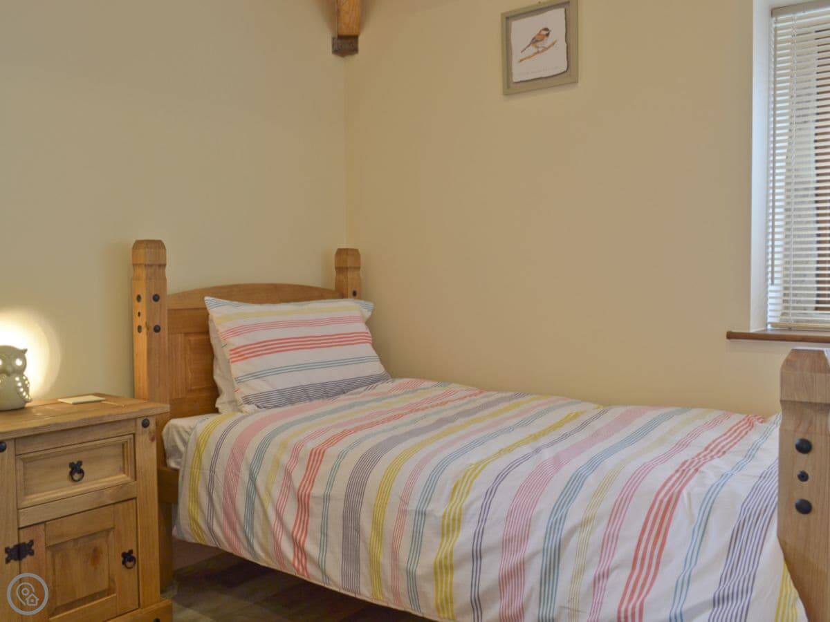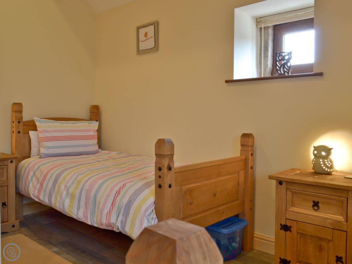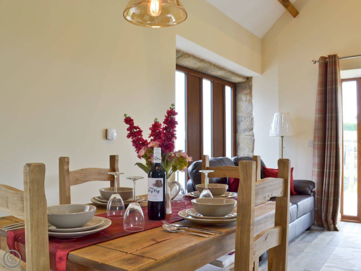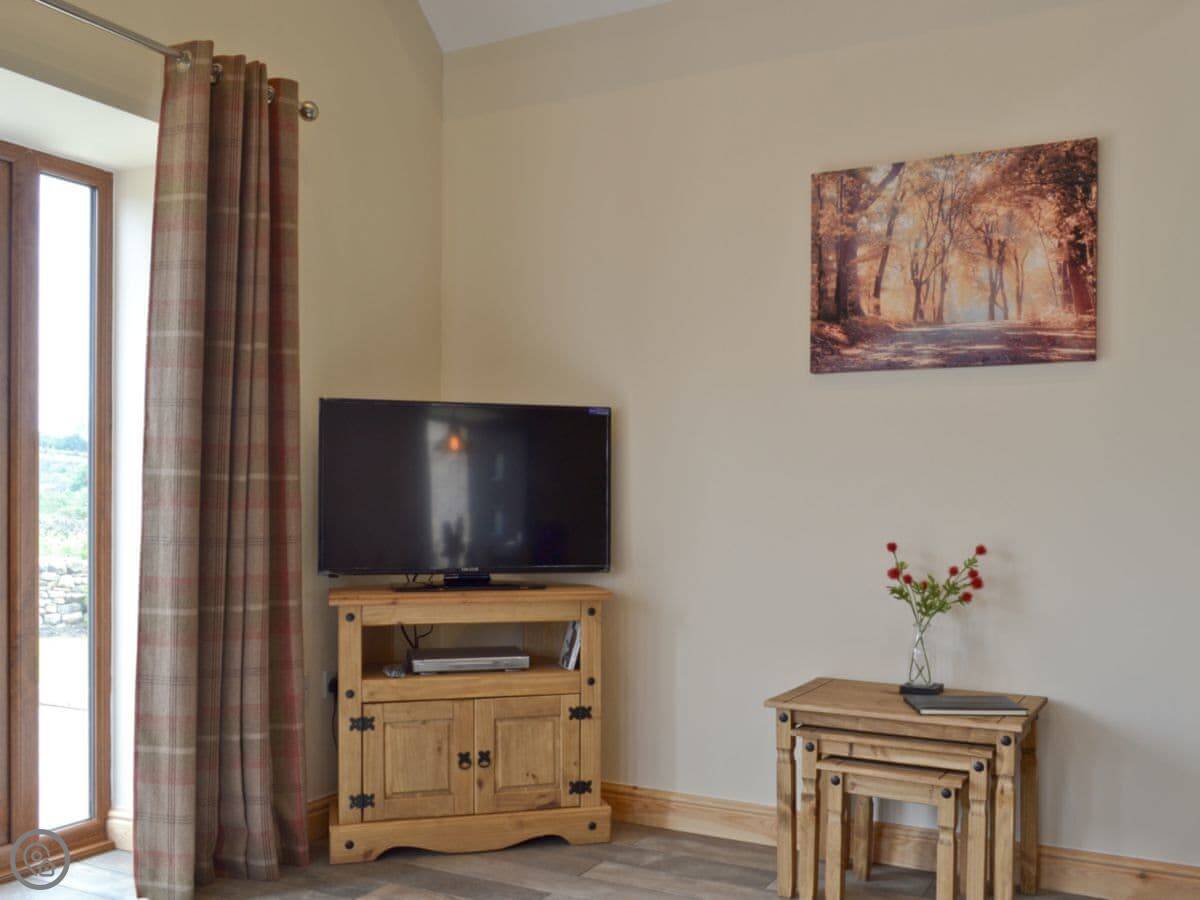 It sleeps four. Two bedrooms, one bathroom. It's got a 4 Star rating. It's comfortable. We've put in decent sofas and a decent TV with Sky and Netflix. The kitchen has proper Denby plates and things. We leave you some chocolates and biscuits when you arrive.