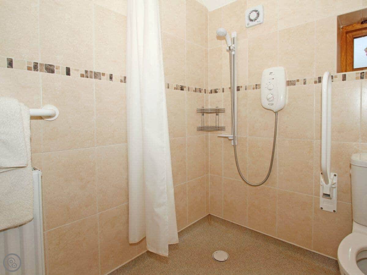 It's got a 4 Star rating. That means it's comfortable and well-equipped. Everything is on the ground floor, which is handy. The bathroom is a wet room, so no step or bath to climb over.
