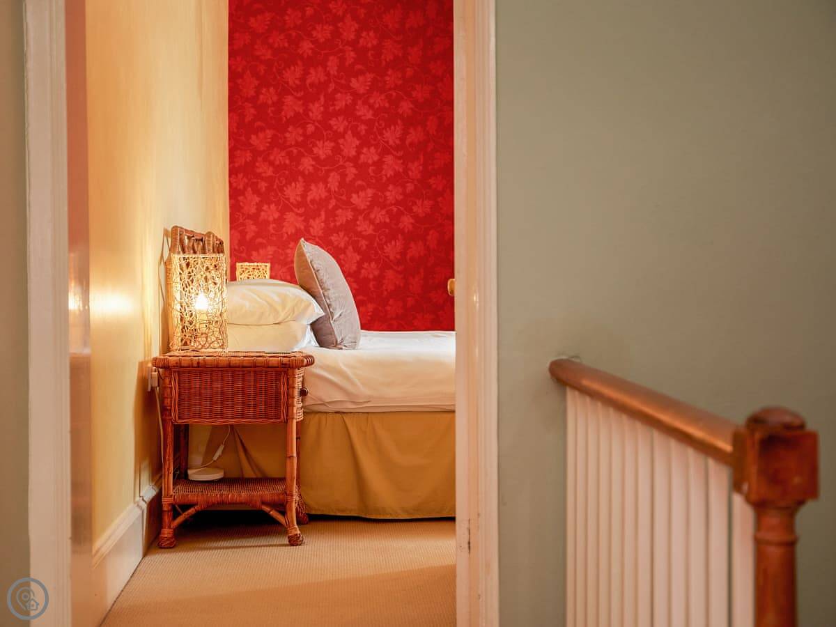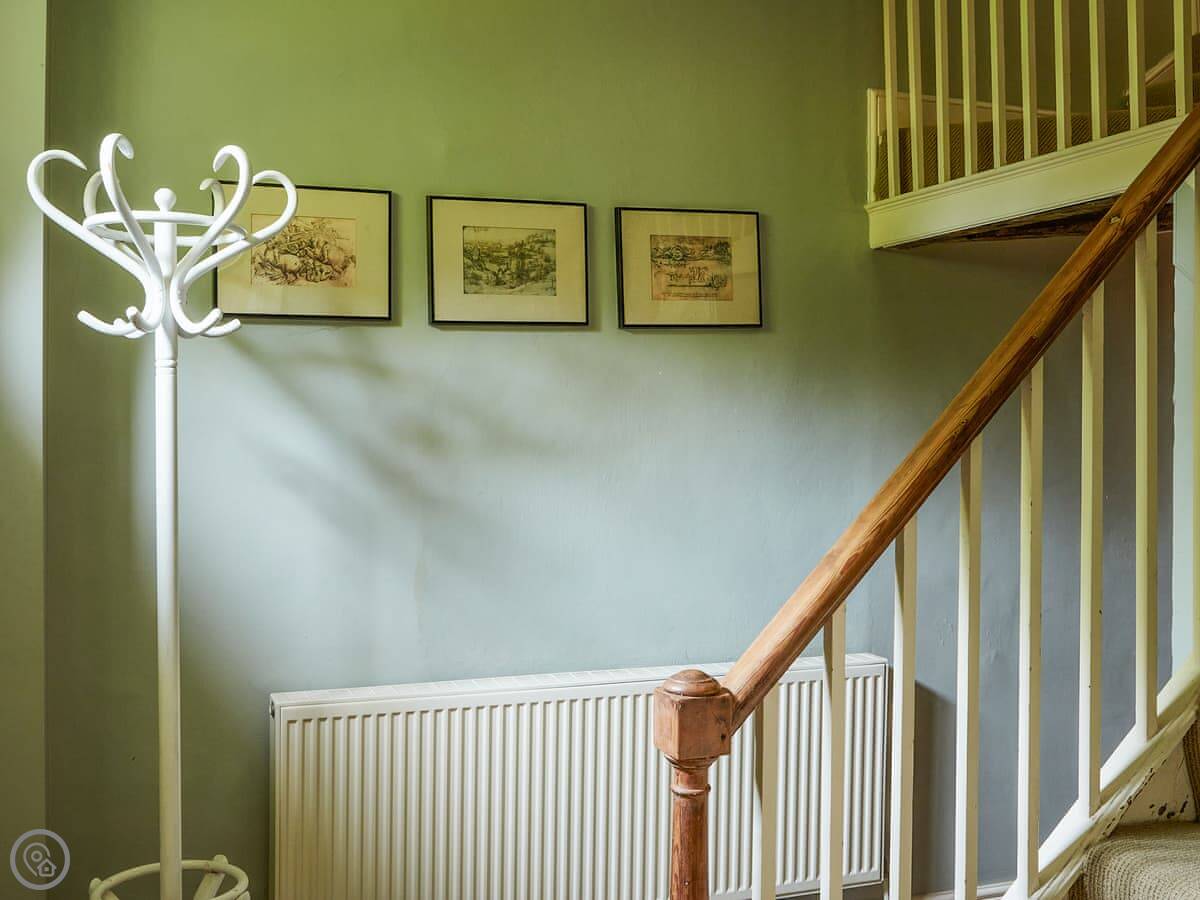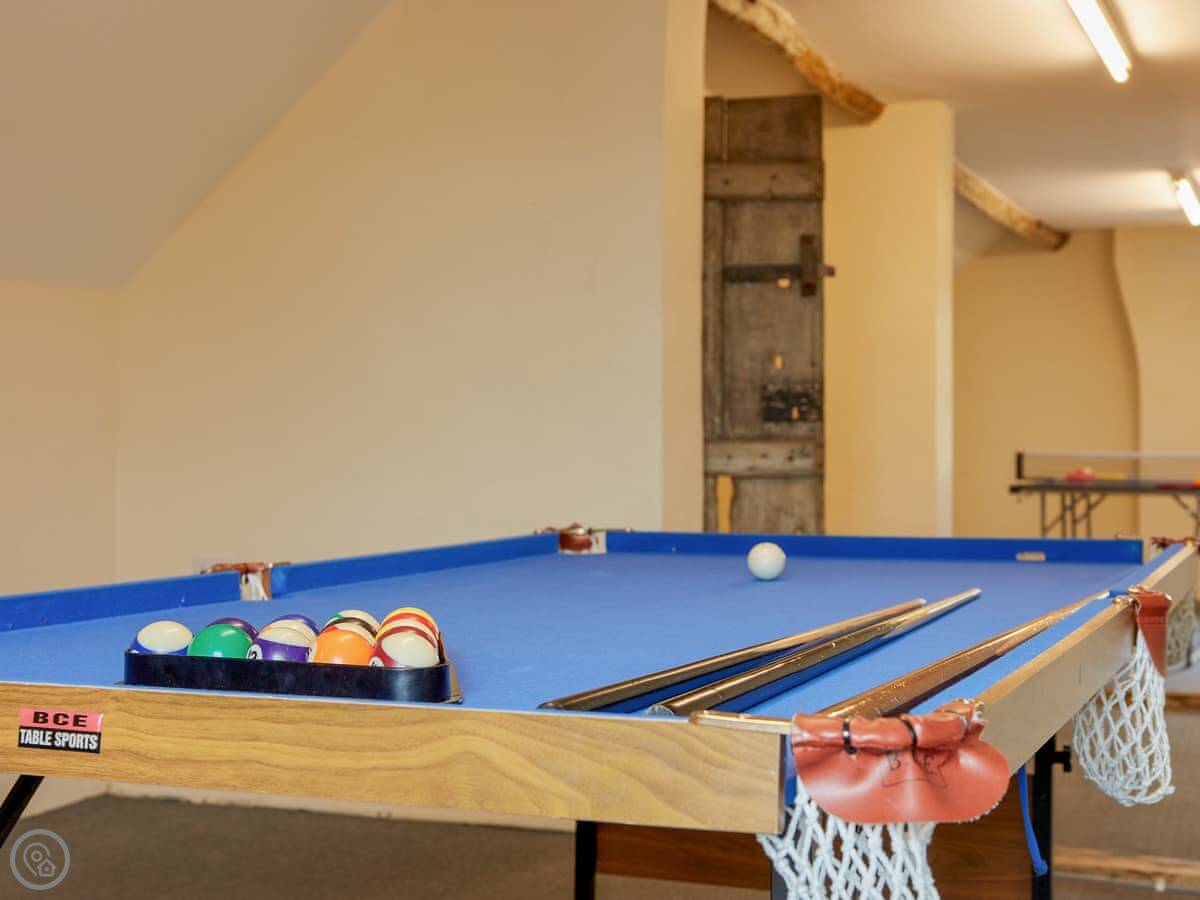 The layout is a bit all over the place, which I like. There are two living rooms, in different wings. The kitchen has a wood burner. There's also a games room up in the attic, you get to it by a little secret staircase. It's just a narrow old set of stairs, mind you.