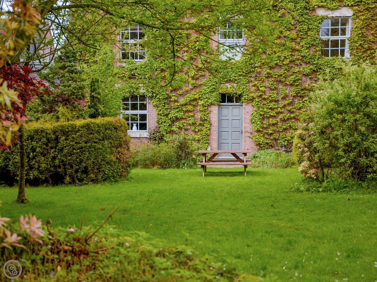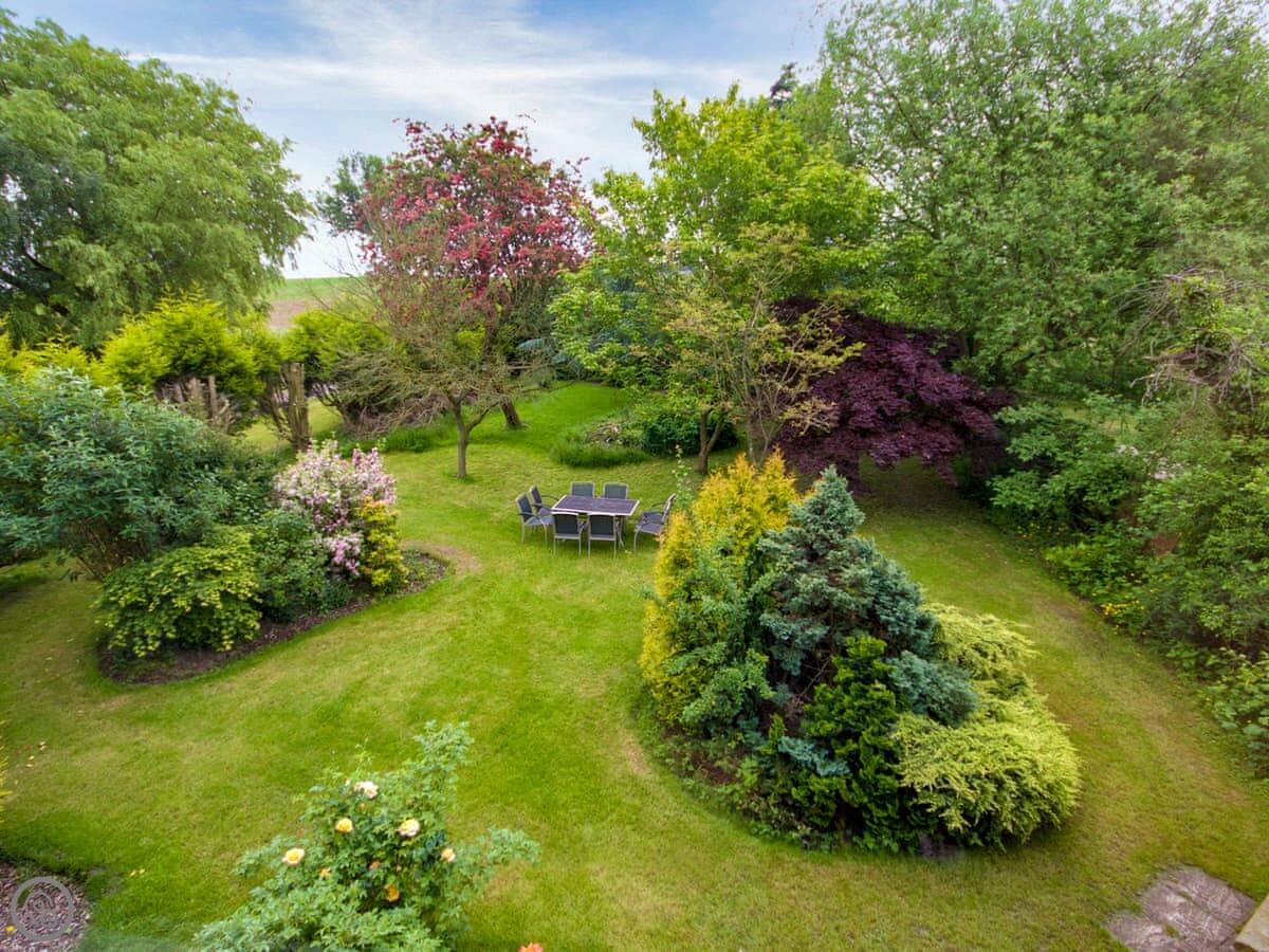 The garden is private, with furniture and a barbecue. There's a big natural pond on the land too, it's a nice spot to sit.