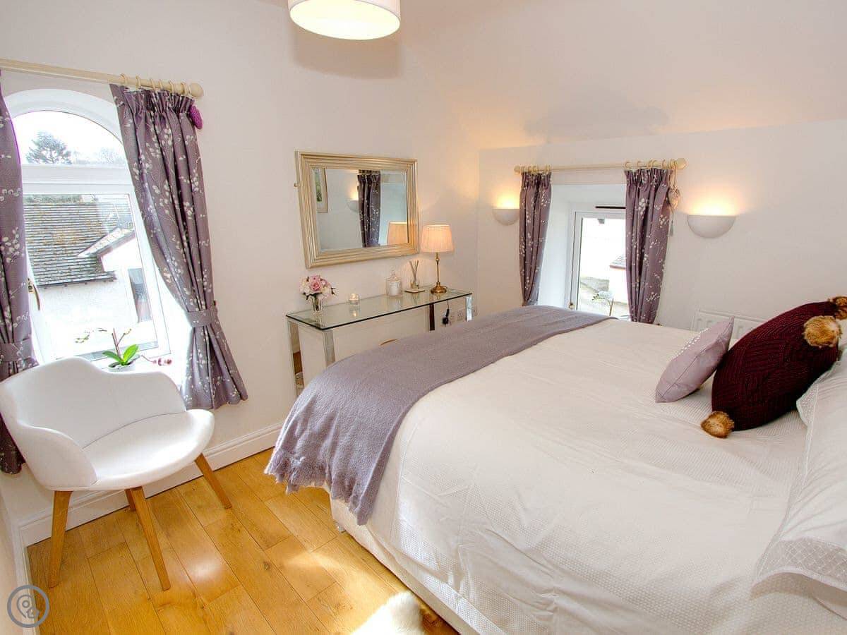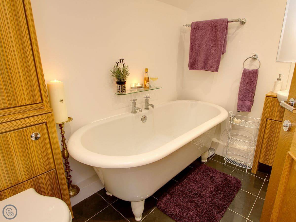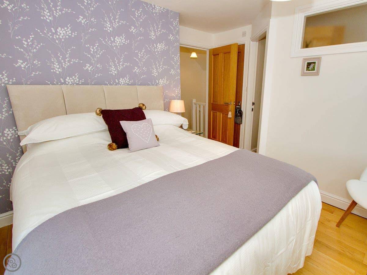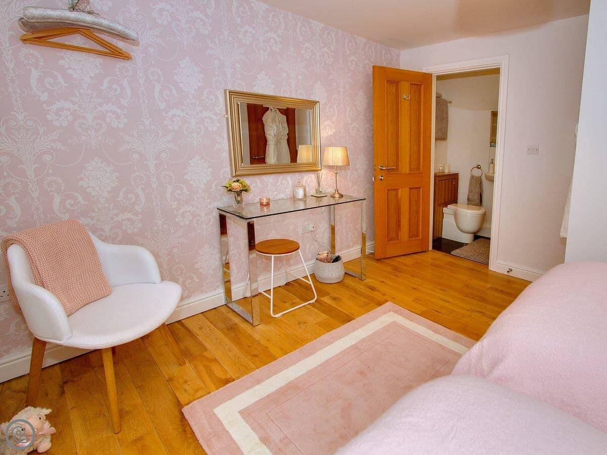 It sleeps five, in three bedrooms. Two of the bedrooms have en-suite shower rooms. There's a single bedroom on the first floor, next to the living room. All the bedding and towels are included.