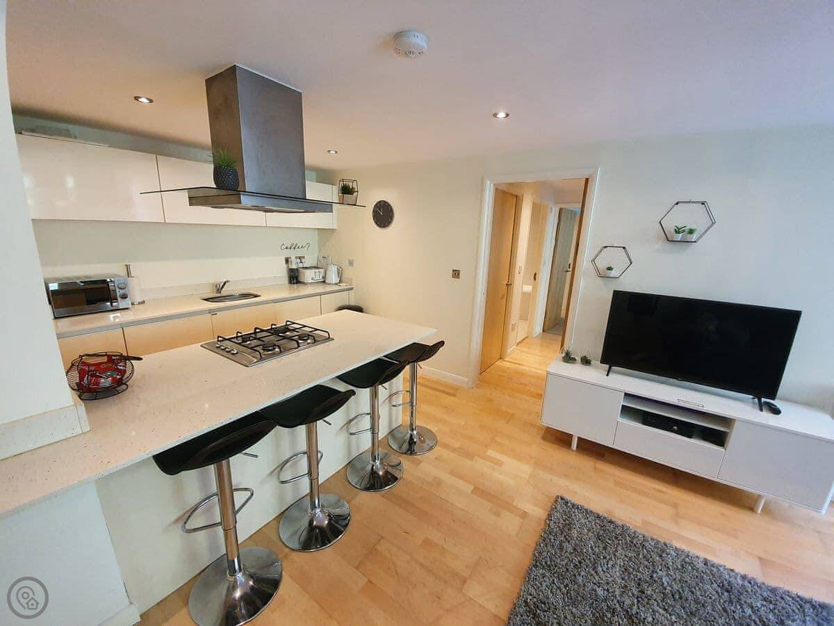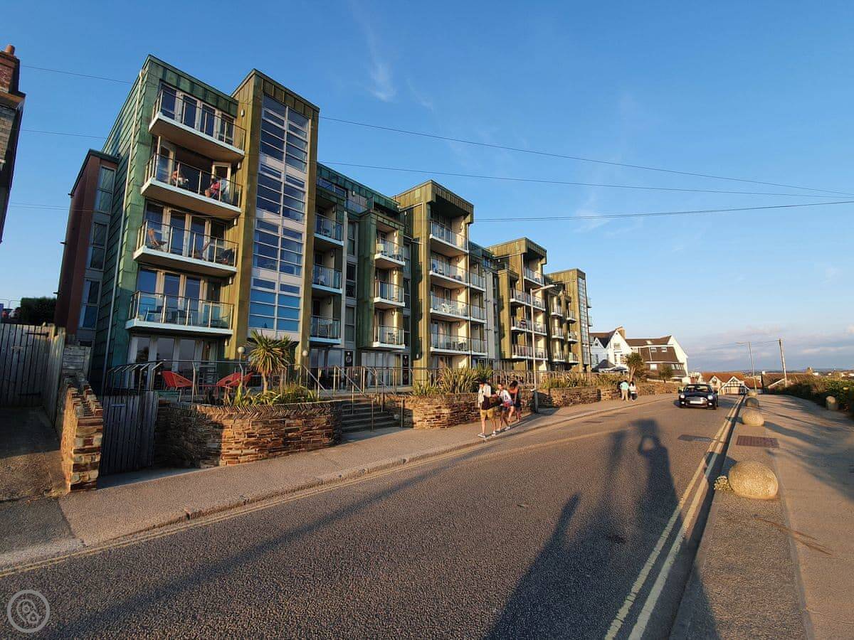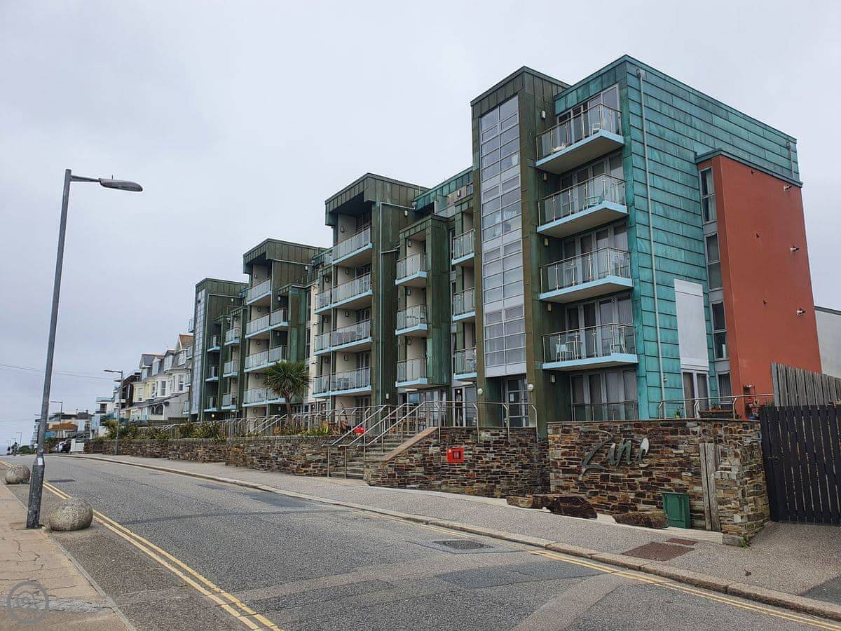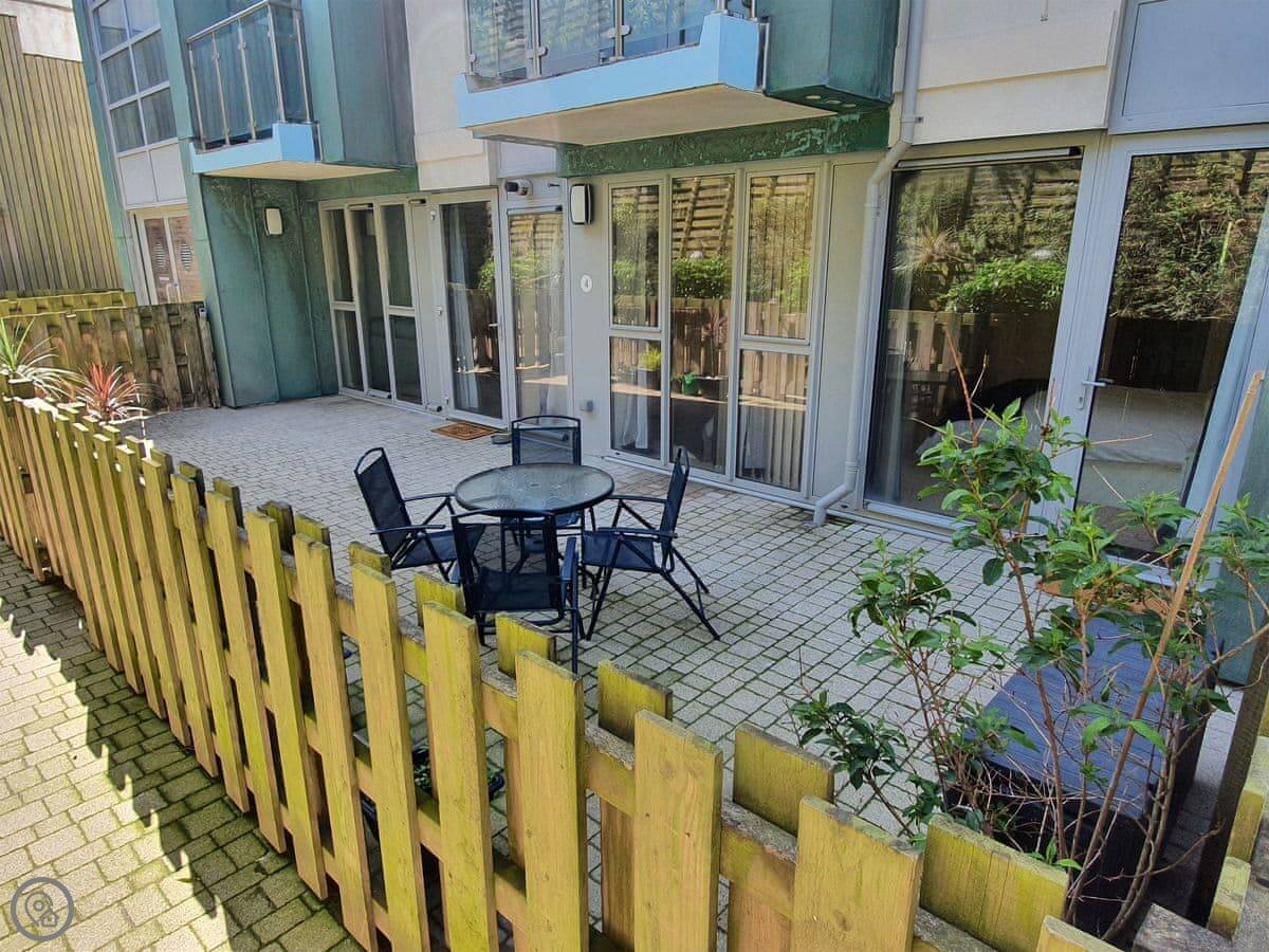 This is Apartment 4 at Zinc. It's in Newquay, in a modern block a few streets back from the front. The town centre is a couple of minutes' walk away, so it's handy.