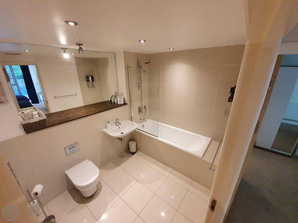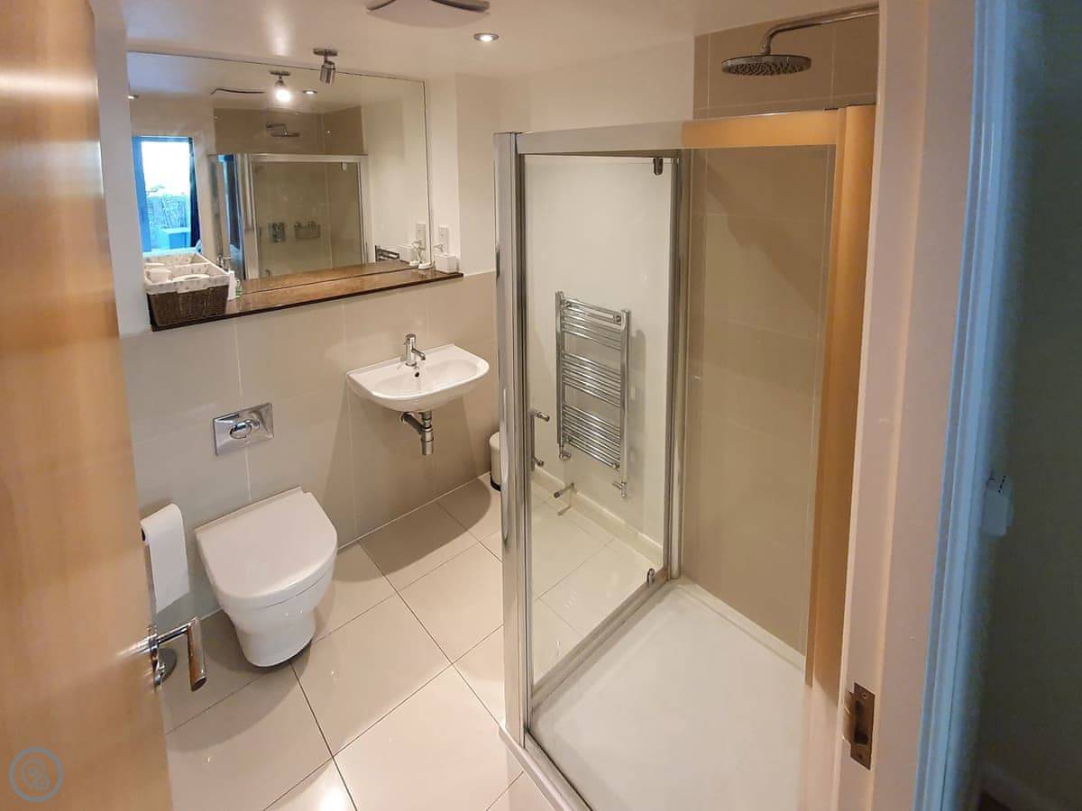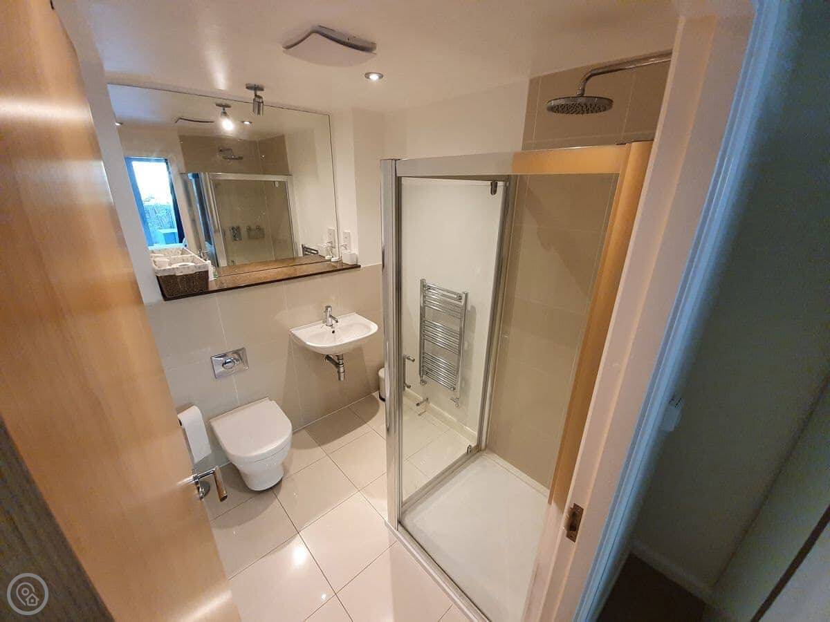 It sleeps four. Two bedrooms, one with a double and one with two singles. Two bathrooms, which is useful if you've got two couples or a family with older kids. It's got a 4 Star rating. It's clean and contemporary. Everything works.