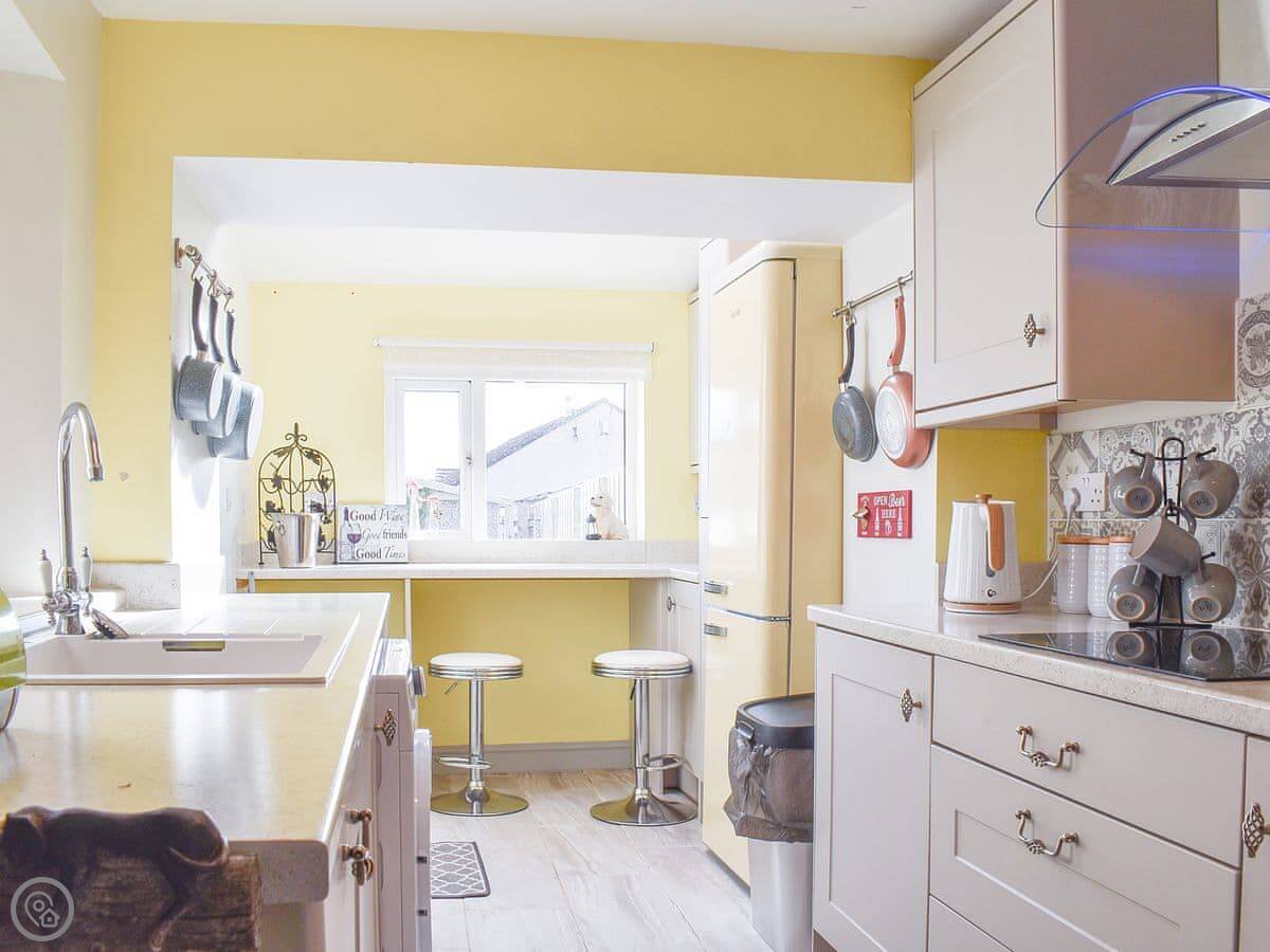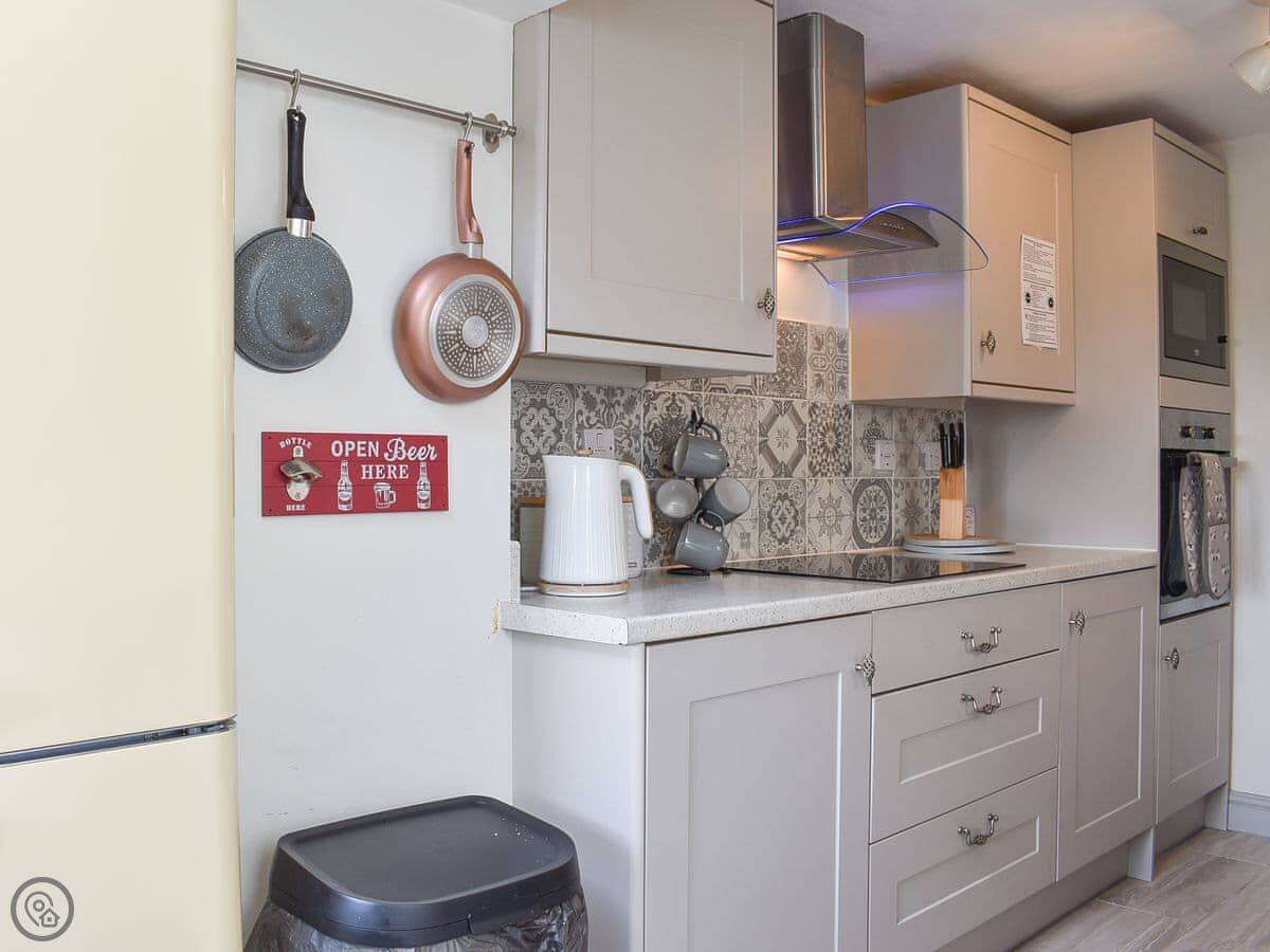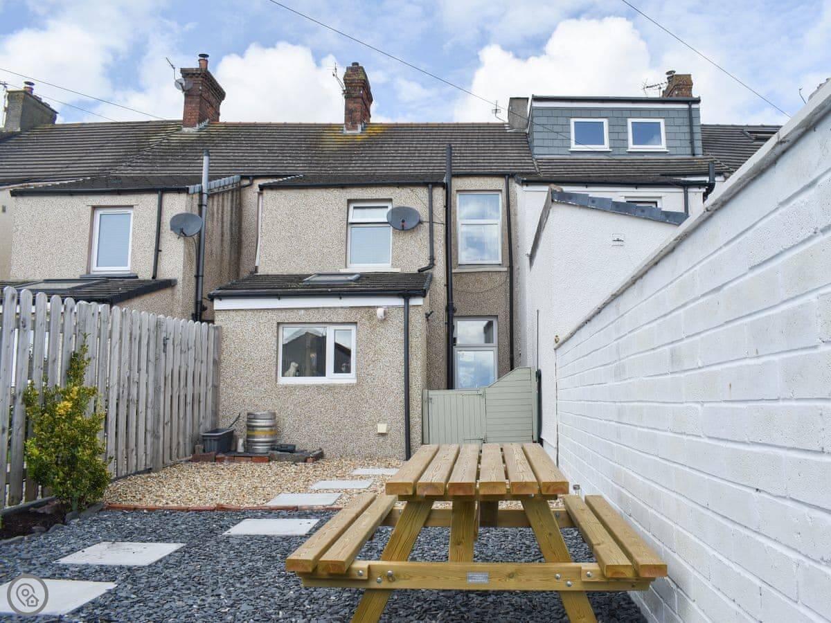 You can park directly outside the property and as you view the tidy exterior it betrays the amount of space on offer inside. Typical of many terraced properties of this period, the inside is spacious with deep rooms and high ceilings. The modern, clean décor works well as you enter the open plan living/dining area. There is plenty of space for the corner sofa, wooden dining table and computer desk. Next you move through into a well-appointed kitchen with modern units and a breakfast area, which offers the opportunity to watch the chef go about their work whilst engaging into conversation and a glass of wine. The back door opens out to an enclosed garden with a bench/table. Upstairs there is a family bathroom with bath and drench shower over it. Next to the bathroom is the first of the bedrooms with a double bed and a TV. The master bedroom hosts a double bed and additionally a single, again it also has a TV.