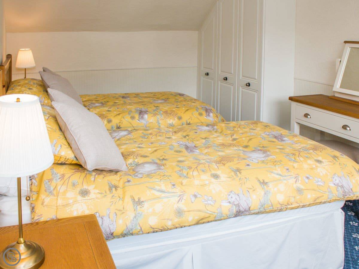 The cottage itself sleeps four. Two bedrooms upstairs, one bathroom, and the living room and kitchen downstairs. It's a 3 Star place. We've just done it up, so it's clean and comfortable, but it's not fancy. The layout is the old farmworker style, so the rooms are a good size but the second bedroom isn't huge. If you've got two teenagers or four adults, North Cottage next door might suit you better. You can book them together if you're a larger group.