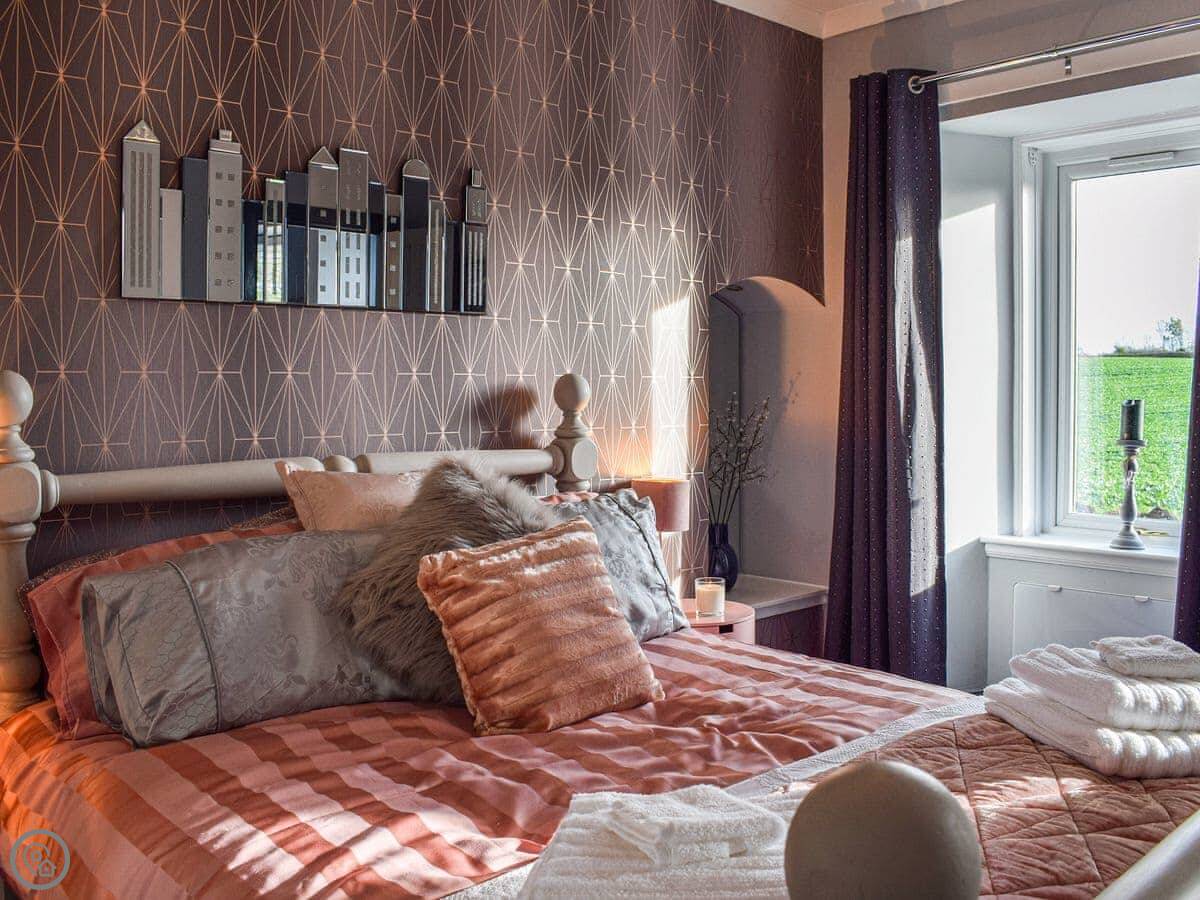 It's very peaceful here, surrounded by fields and a working farm. The local pub is about three quarters of a mile away. The coast is four miles. Kirkcaldy town centre is three miles for shops.
