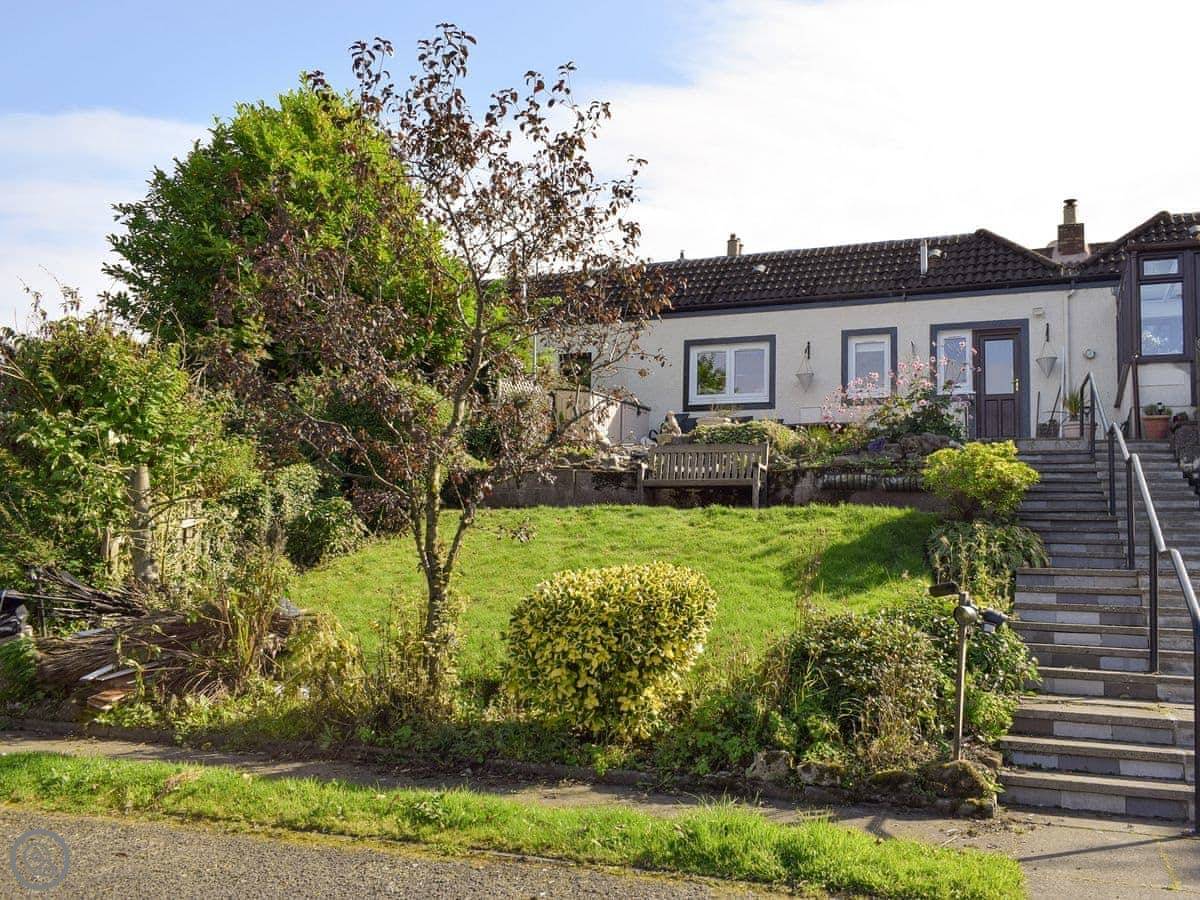 The garden is at the back, on three levels. It's got a big patio with a good view of the Lomond Hills. The gardens are private but there are no fences between them and the neighbours, so it's open.