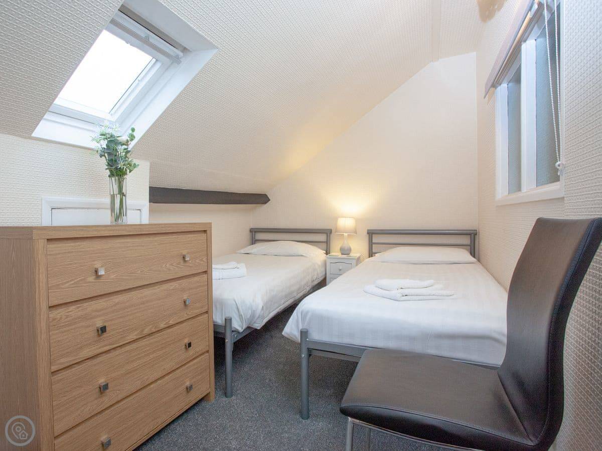 It sleeps four, in two bedrooms. One has a king size bed, the other has two singles. There's one bathroom with a shower. It's got a 3 Star rating, so it's clean and equipped, but not luxurious.