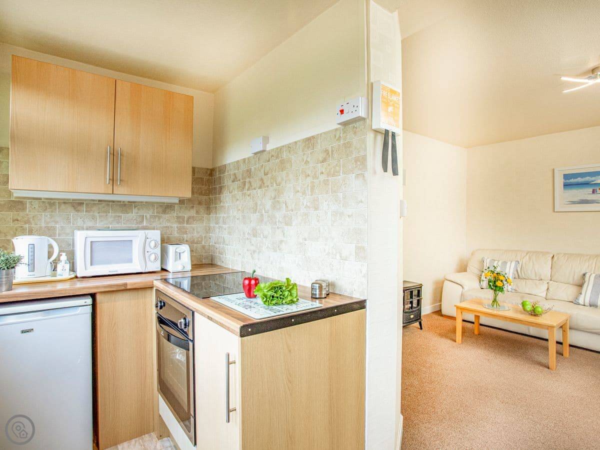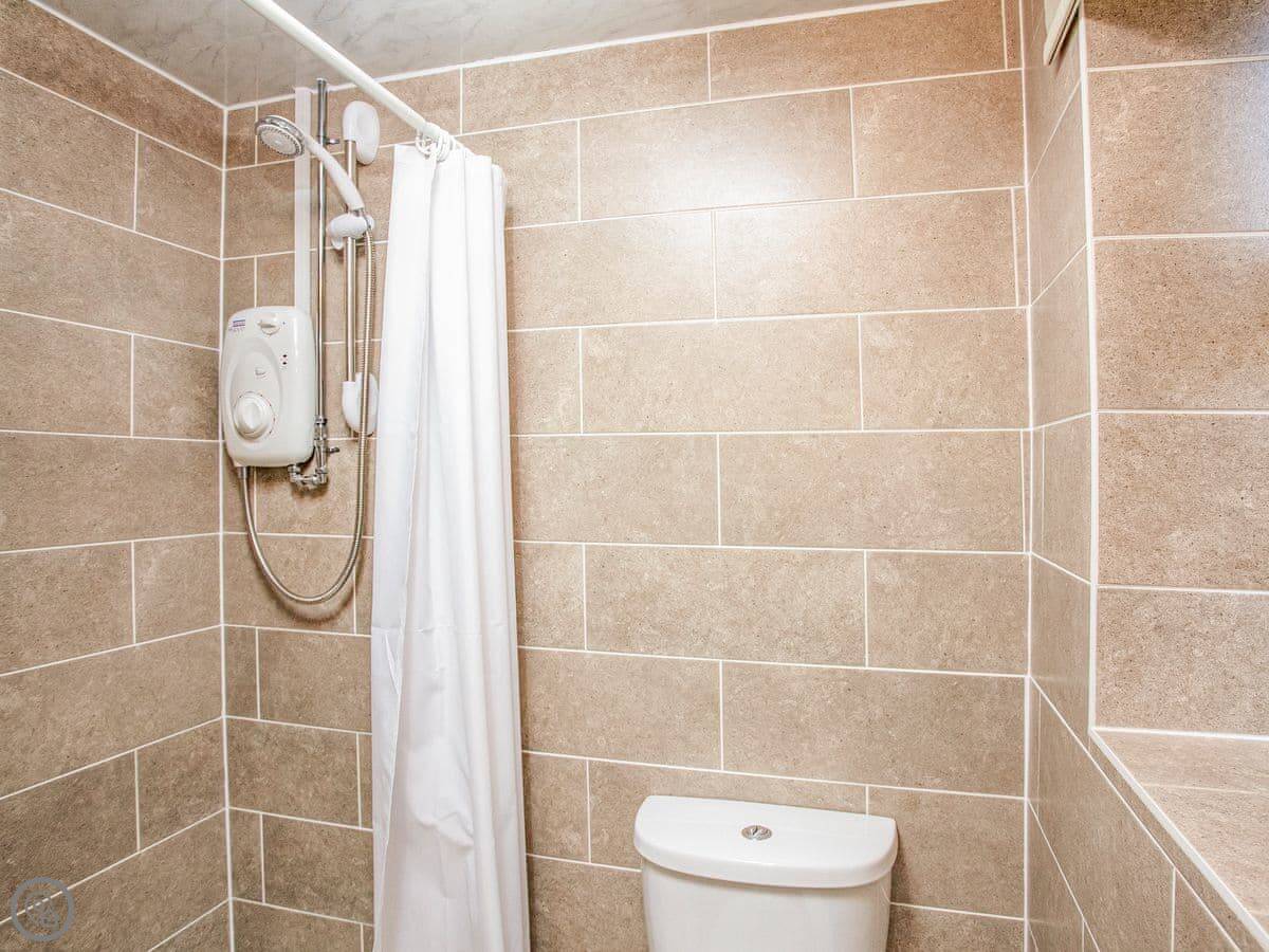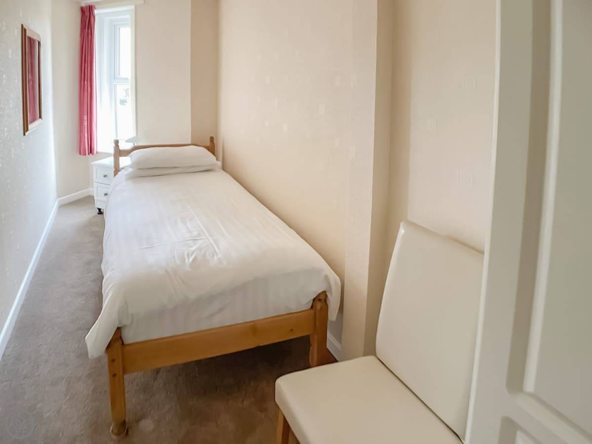 It sleeps three. Two bedrooms, one has a double bed and the other has a single. There's one shower room.