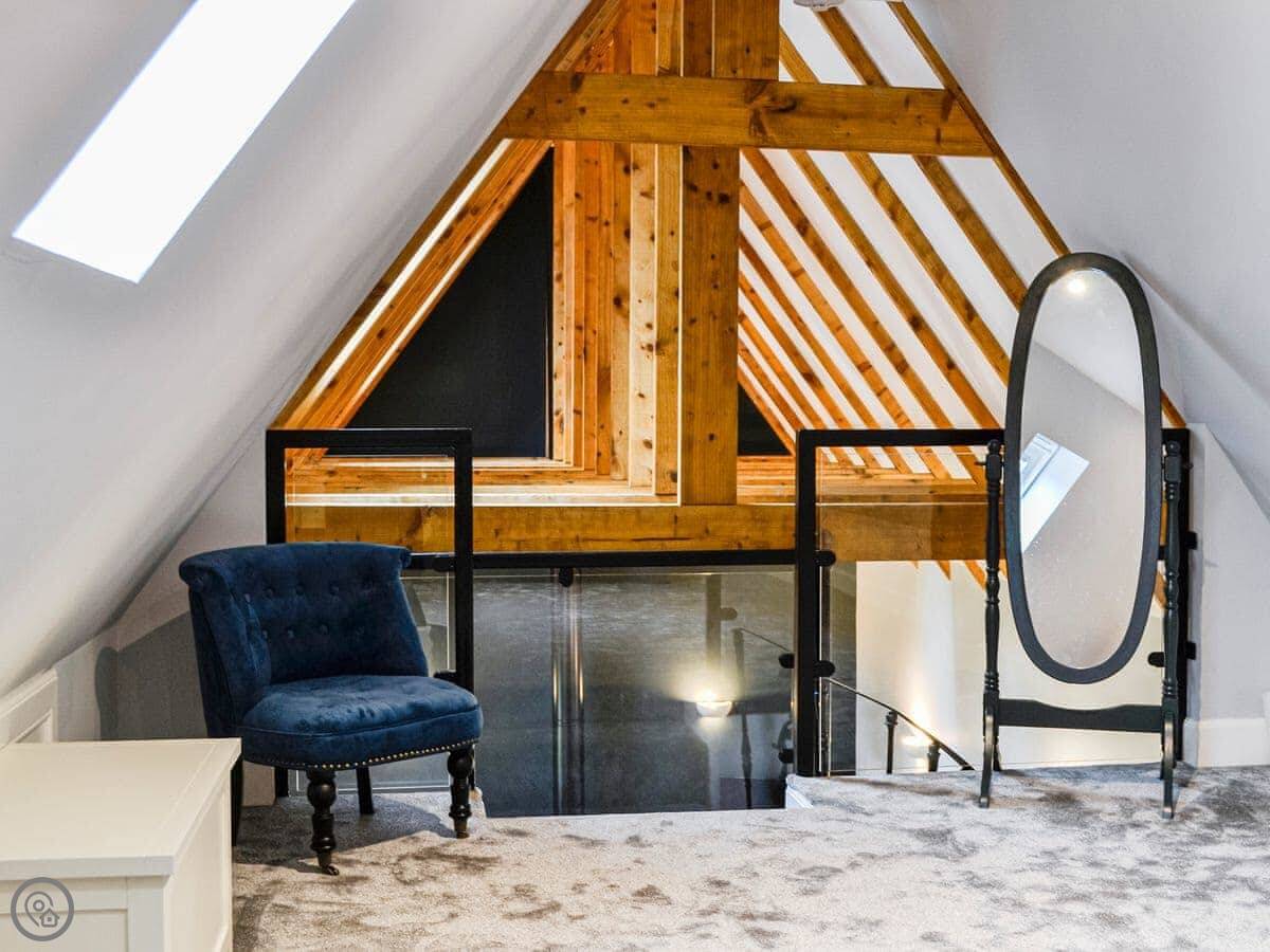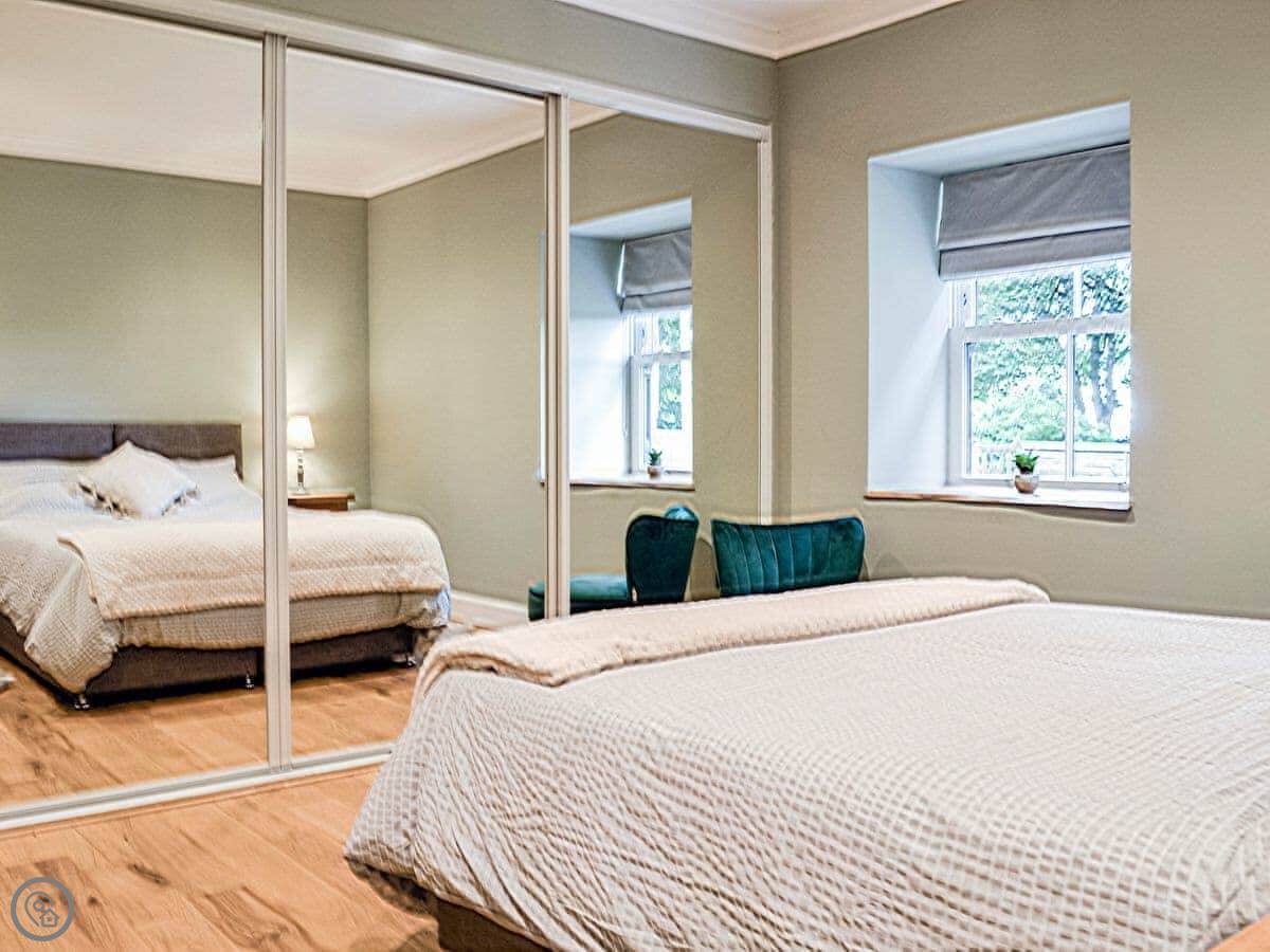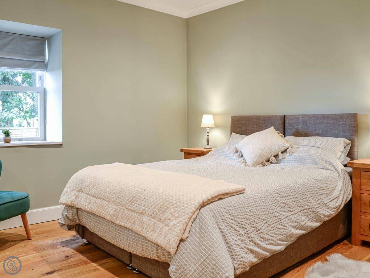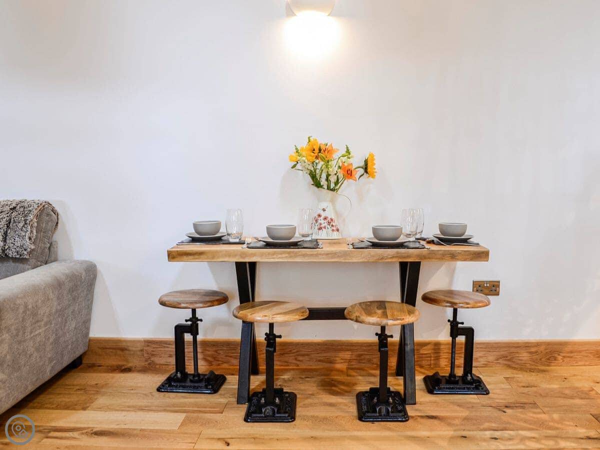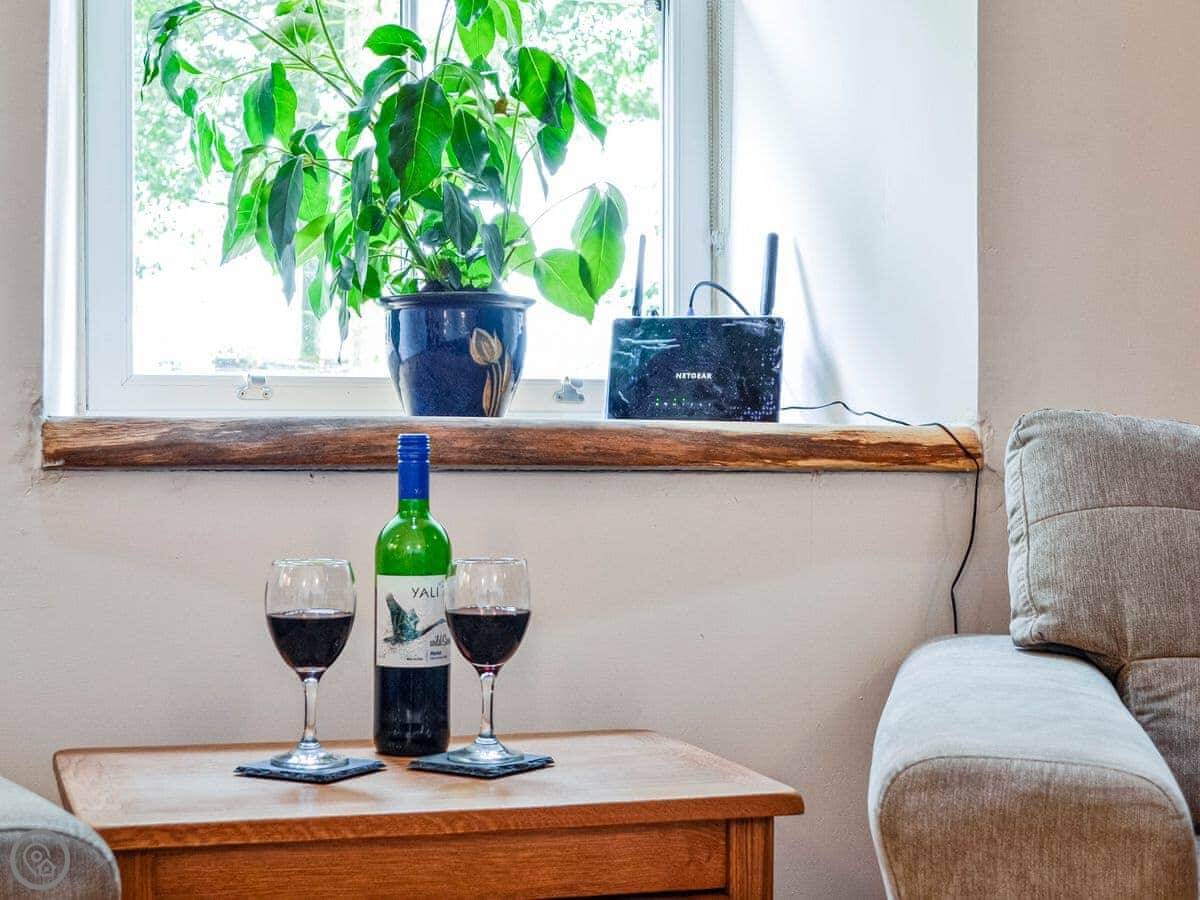 It sleeps four in two bedrooms. There's one bathroom. It's got a 4 Star rating. The place is well finished. The wood inside, like the kitchen tops, came from an oak tree that fell down in the grounds.